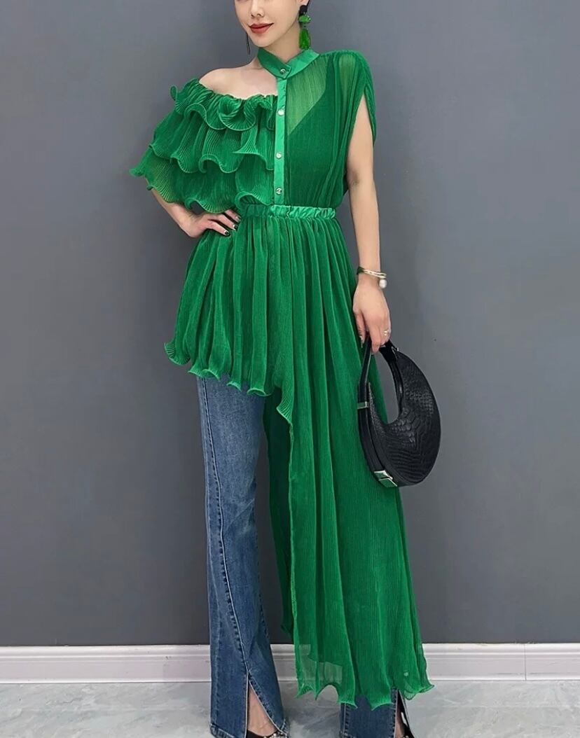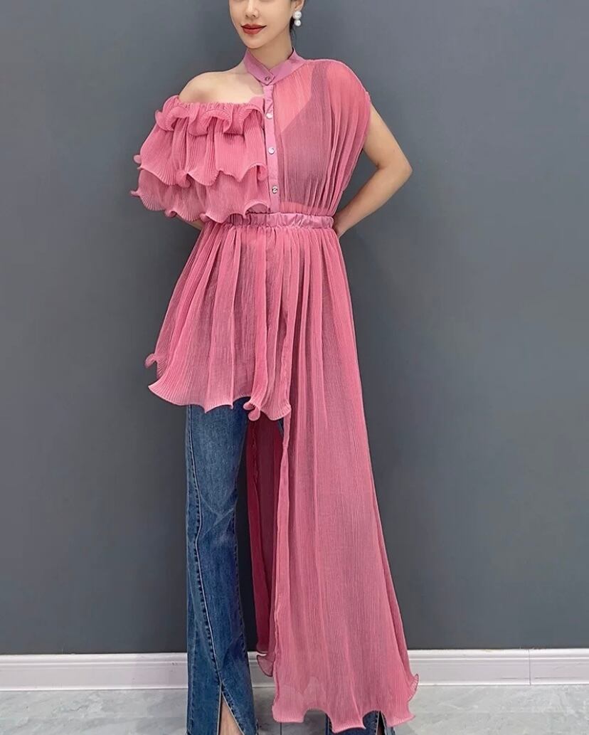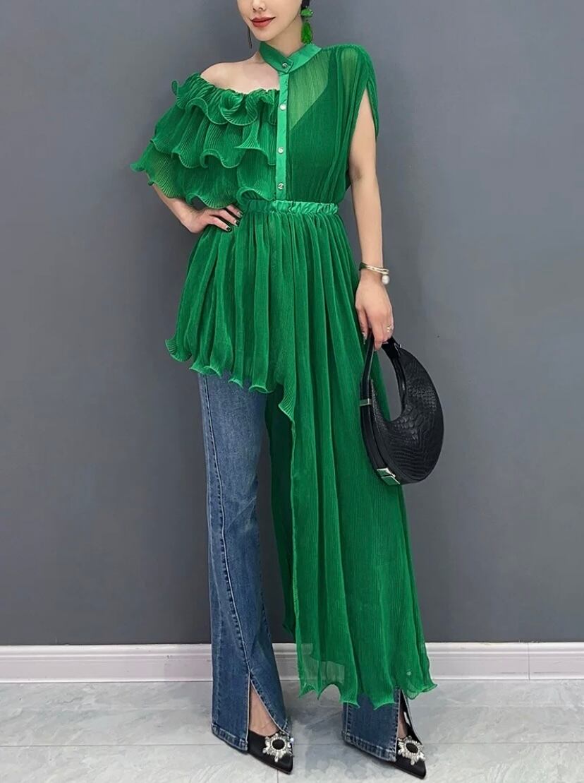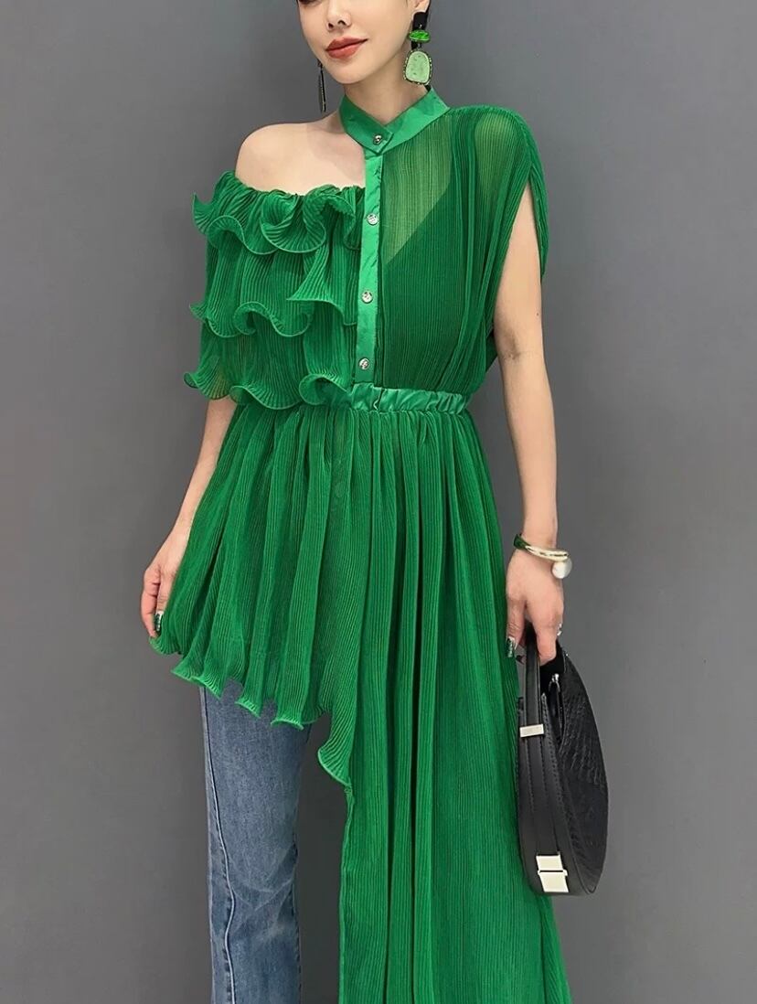 ピンク グリーン 緑 ブラウス ワンピース シースルー