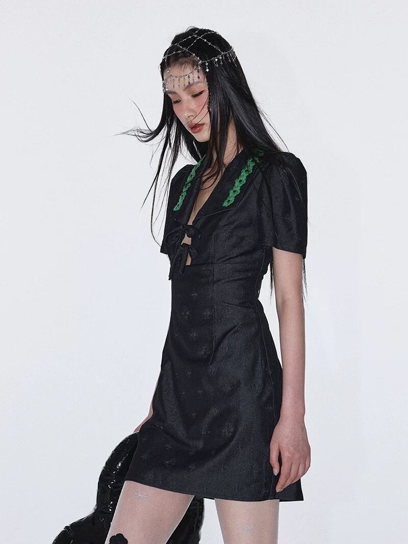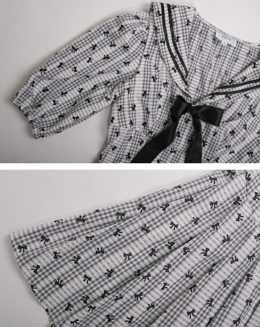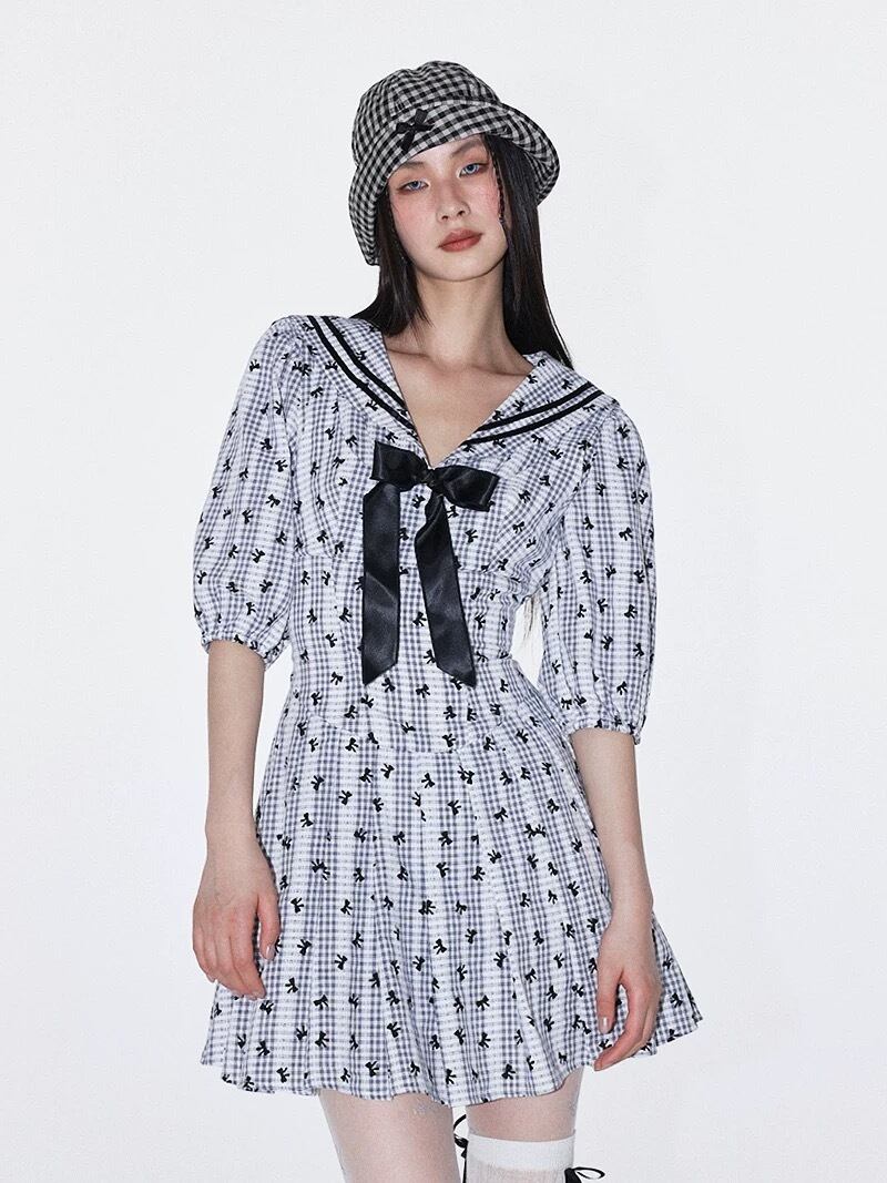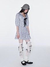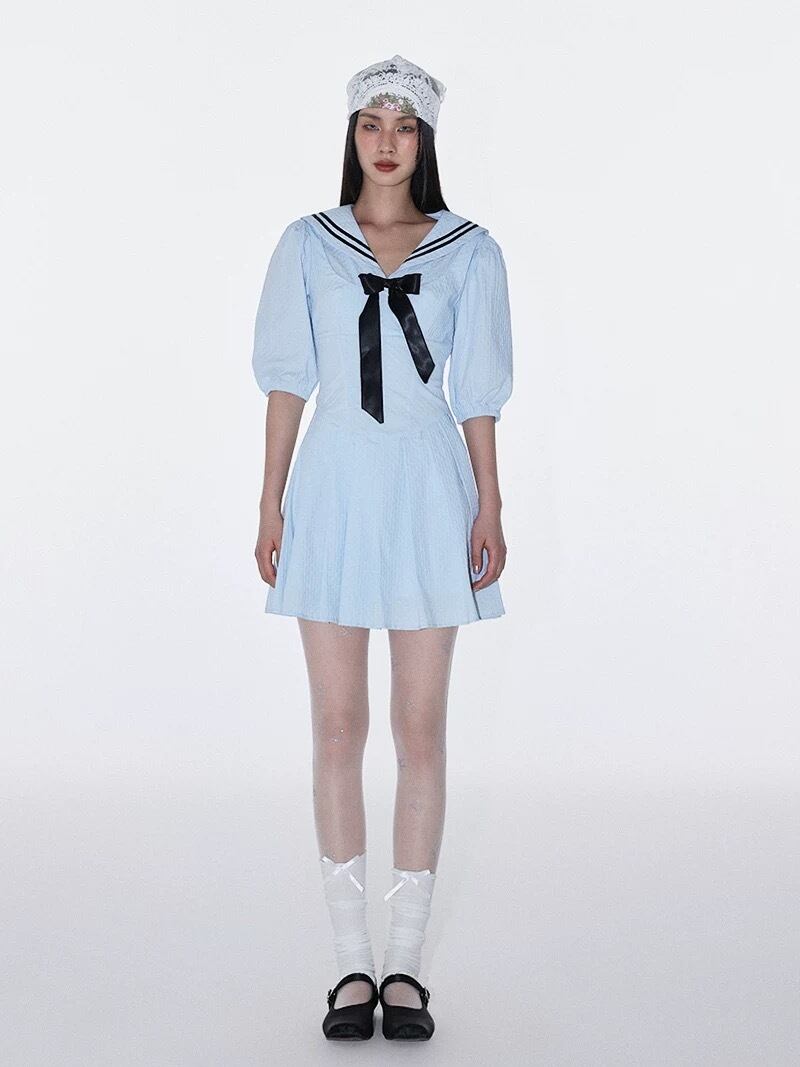 セーラー 水色 リボン 黒 ガーリー ワンピース 襟 原宿 マリン チャイナ