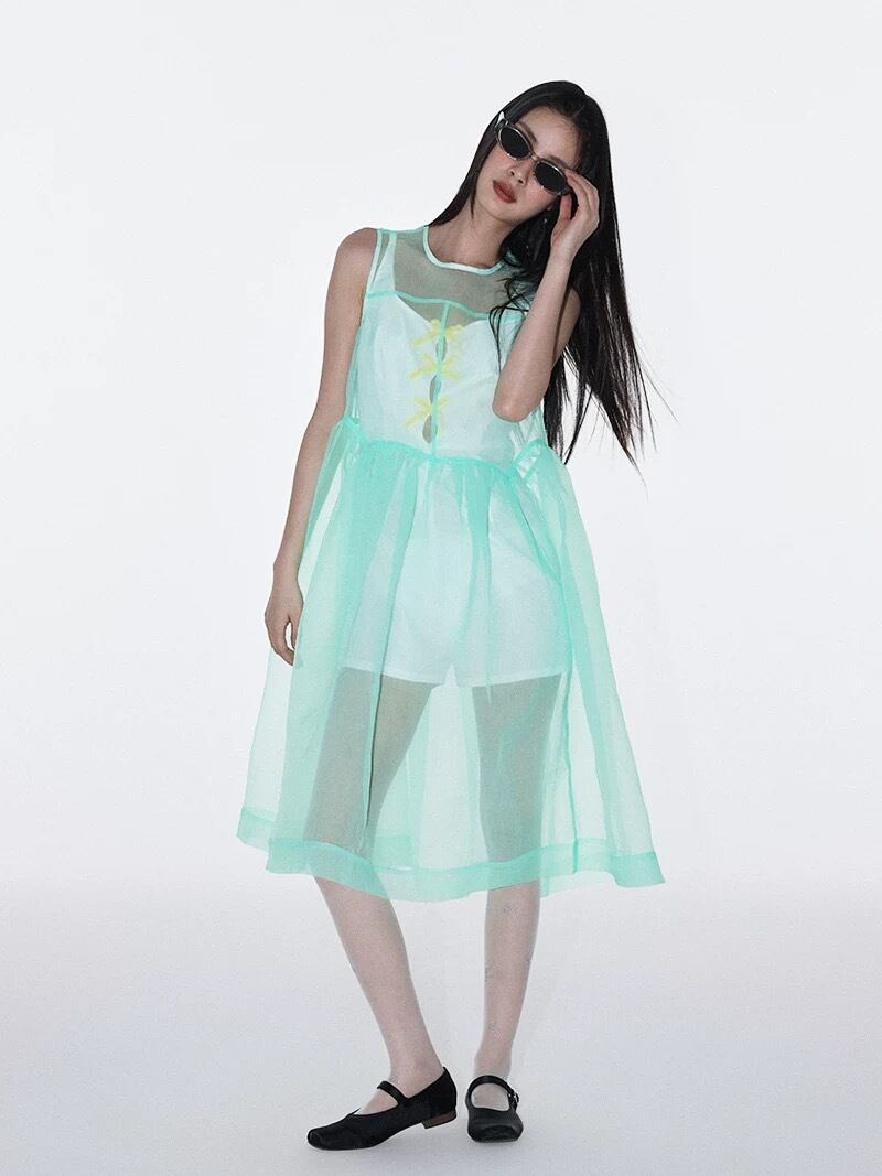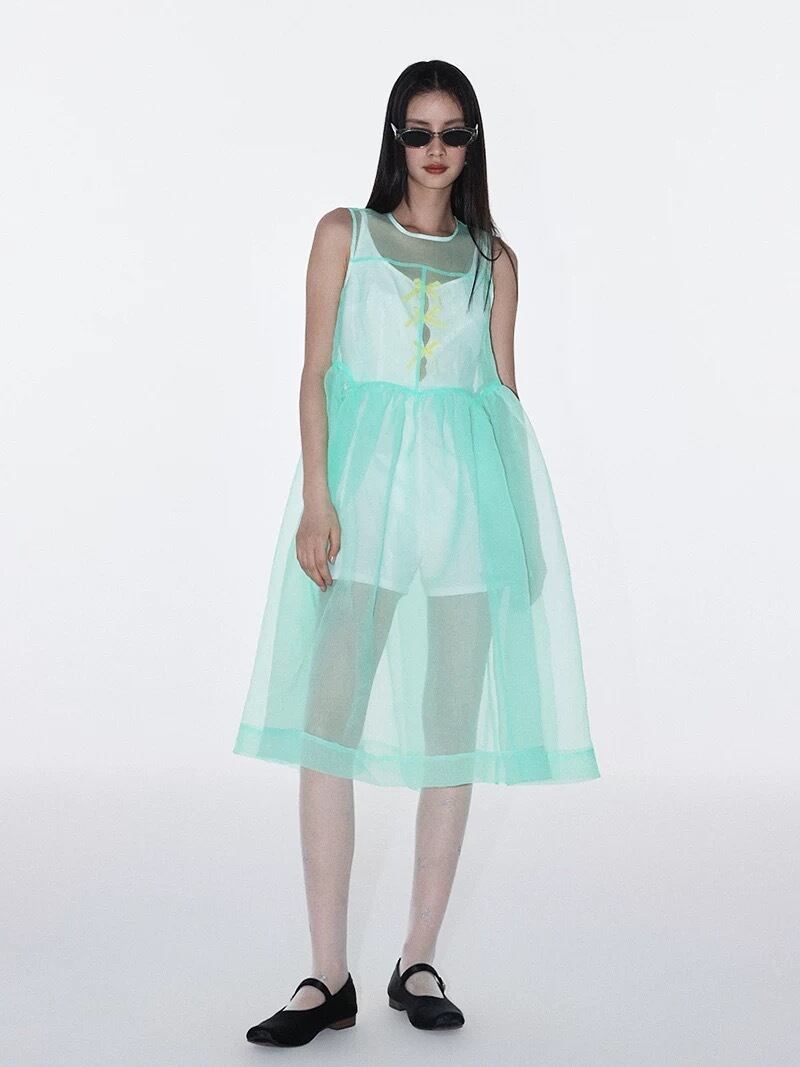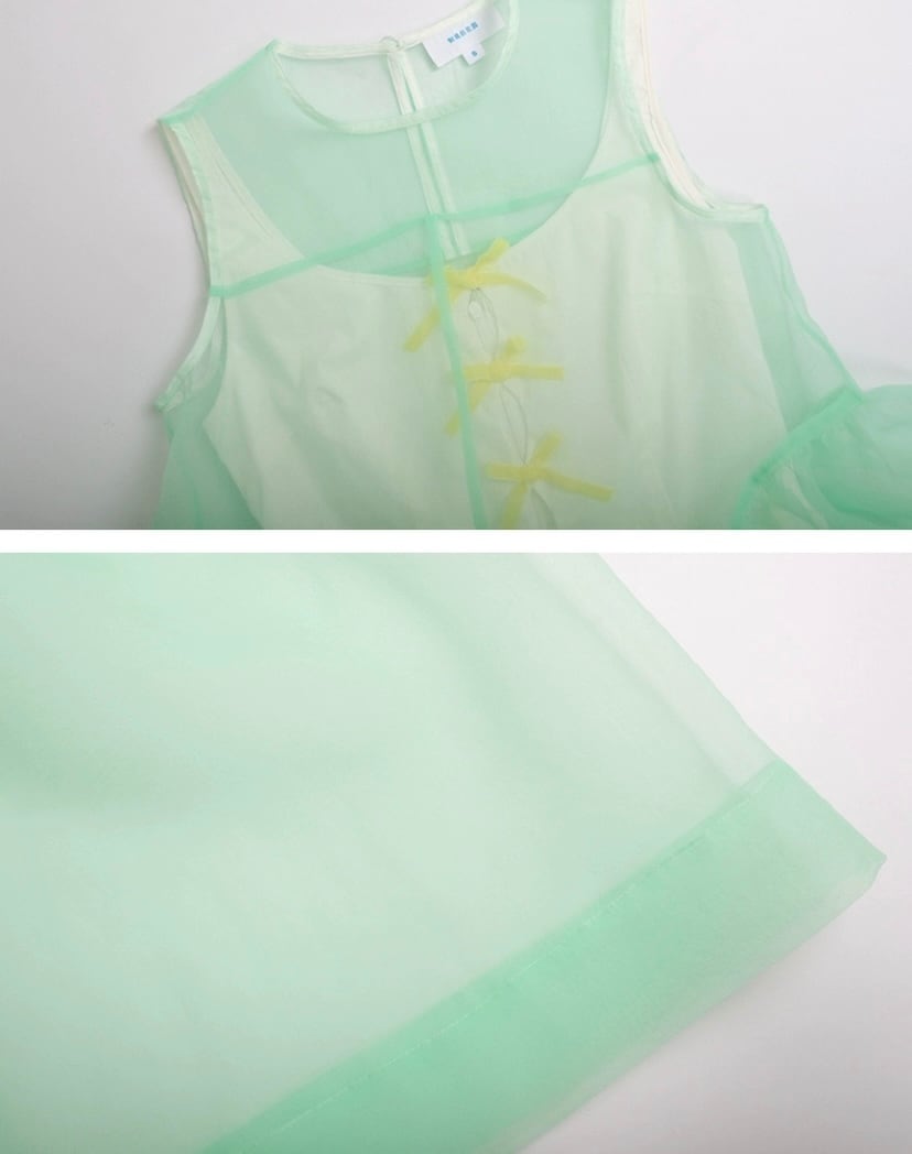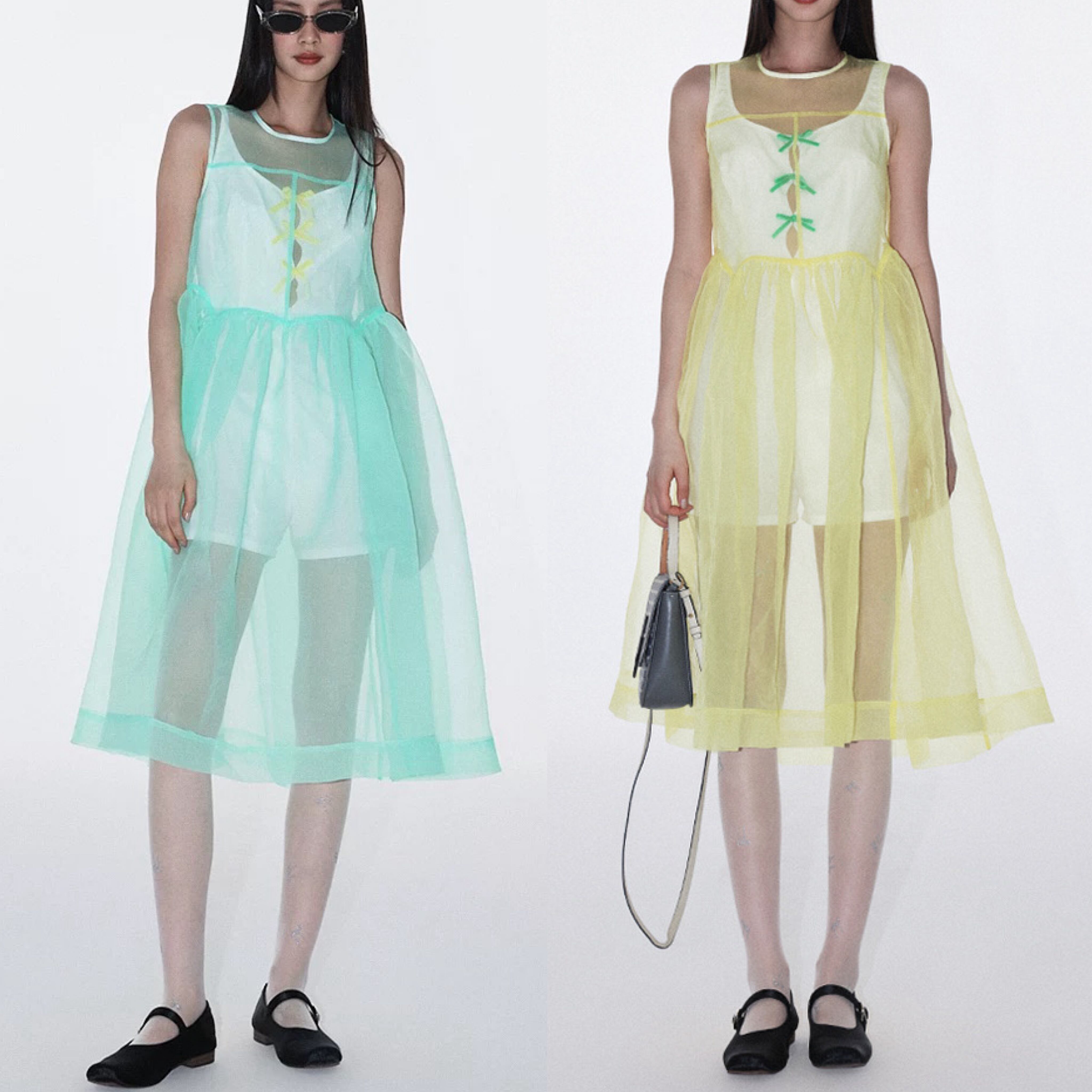 黄色 水色 緑 クリア シースルー ワンピース 可愛い 原宿 重ね着 ブラウス リボン