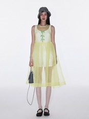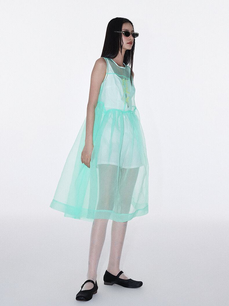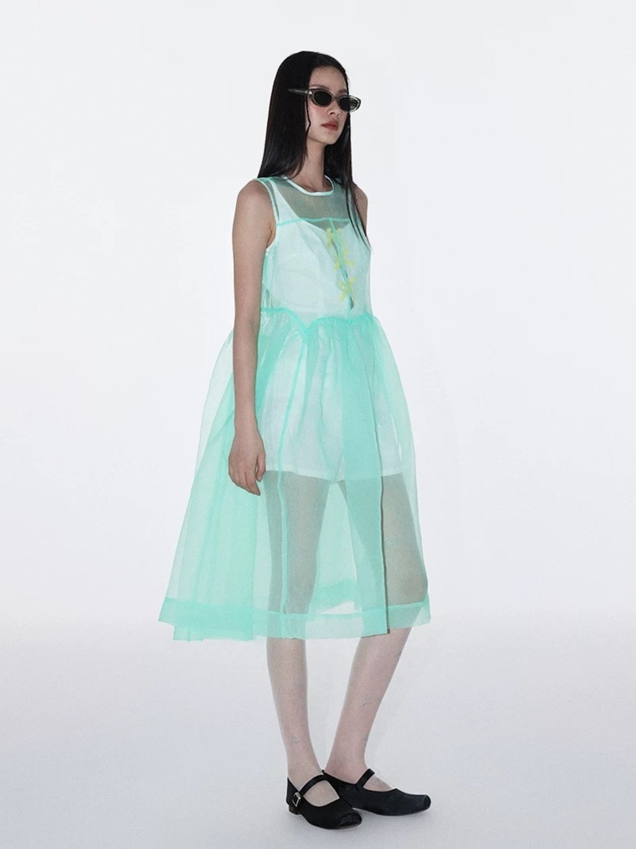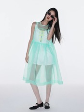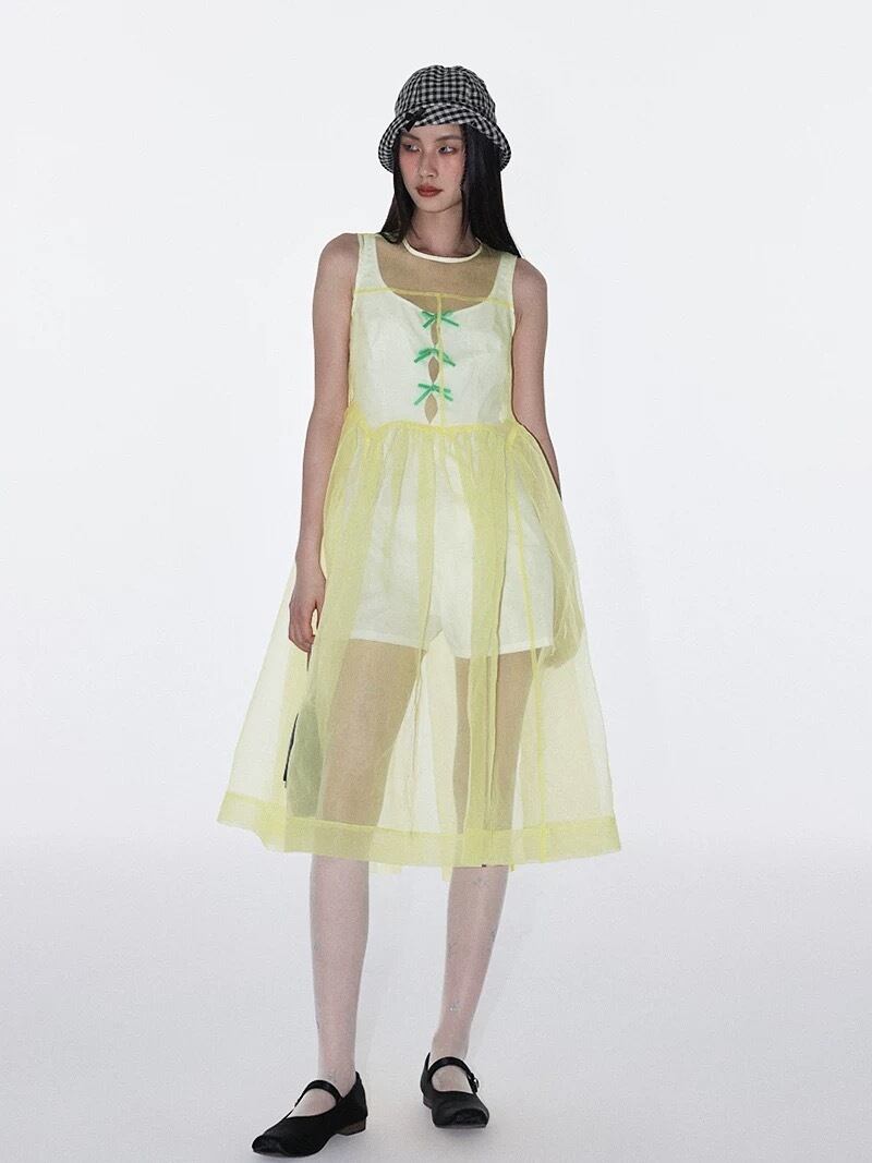 黄色 水色 緑 クリア シースルー ワンピース 可愛い 原宿 重ね着 ブラウス リボン