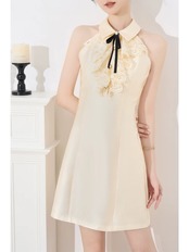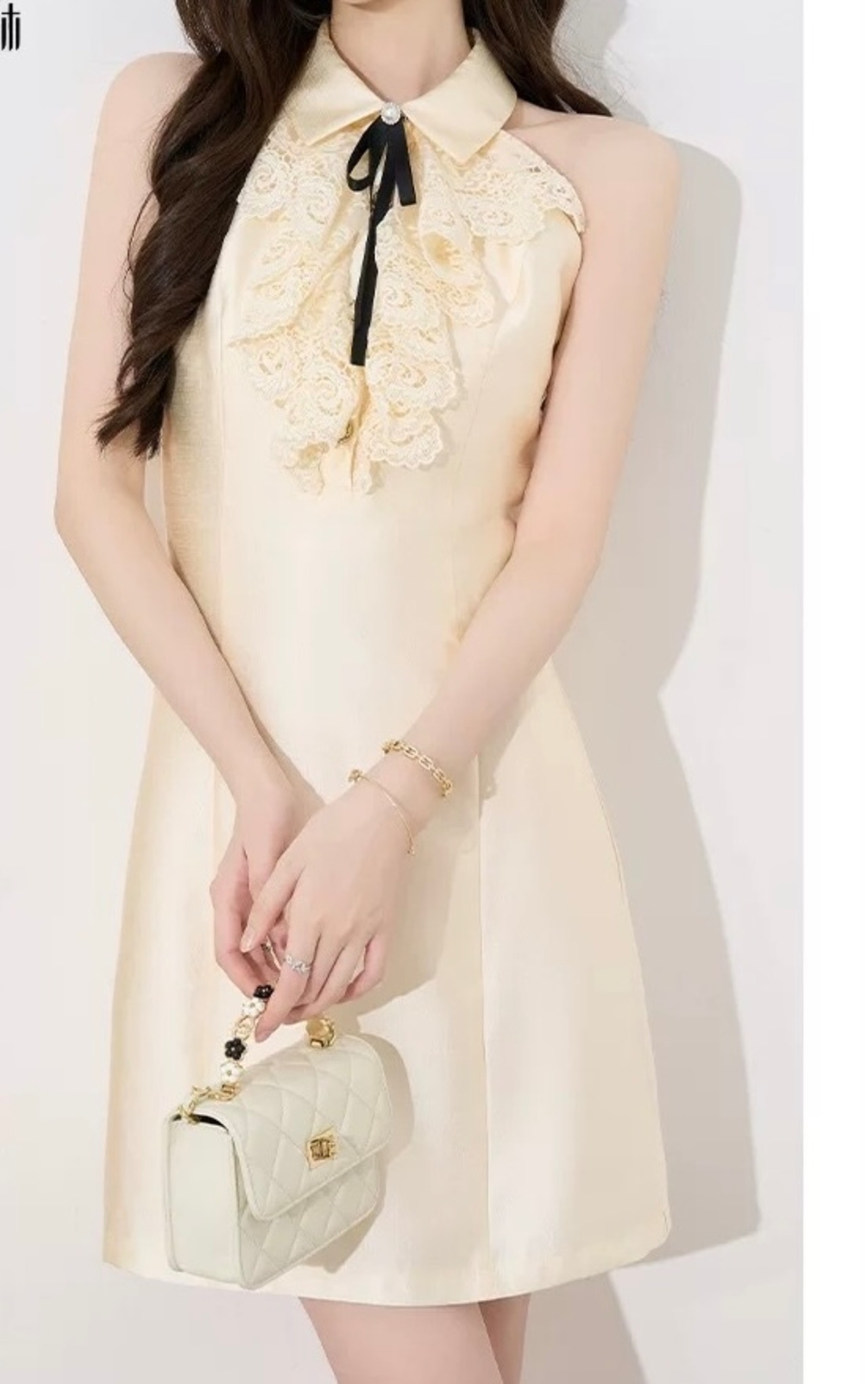 黄色 ベージュ お嬢様 リボン ブラウス ワンピース ガーリー 原宿
