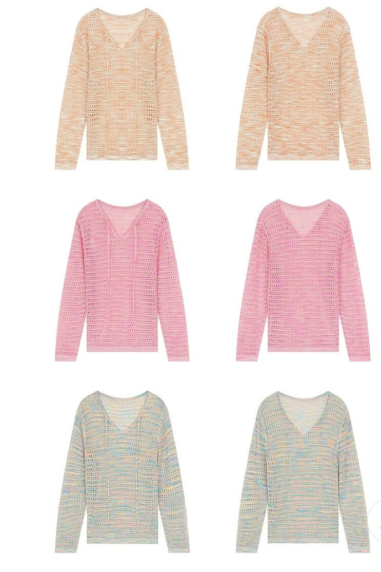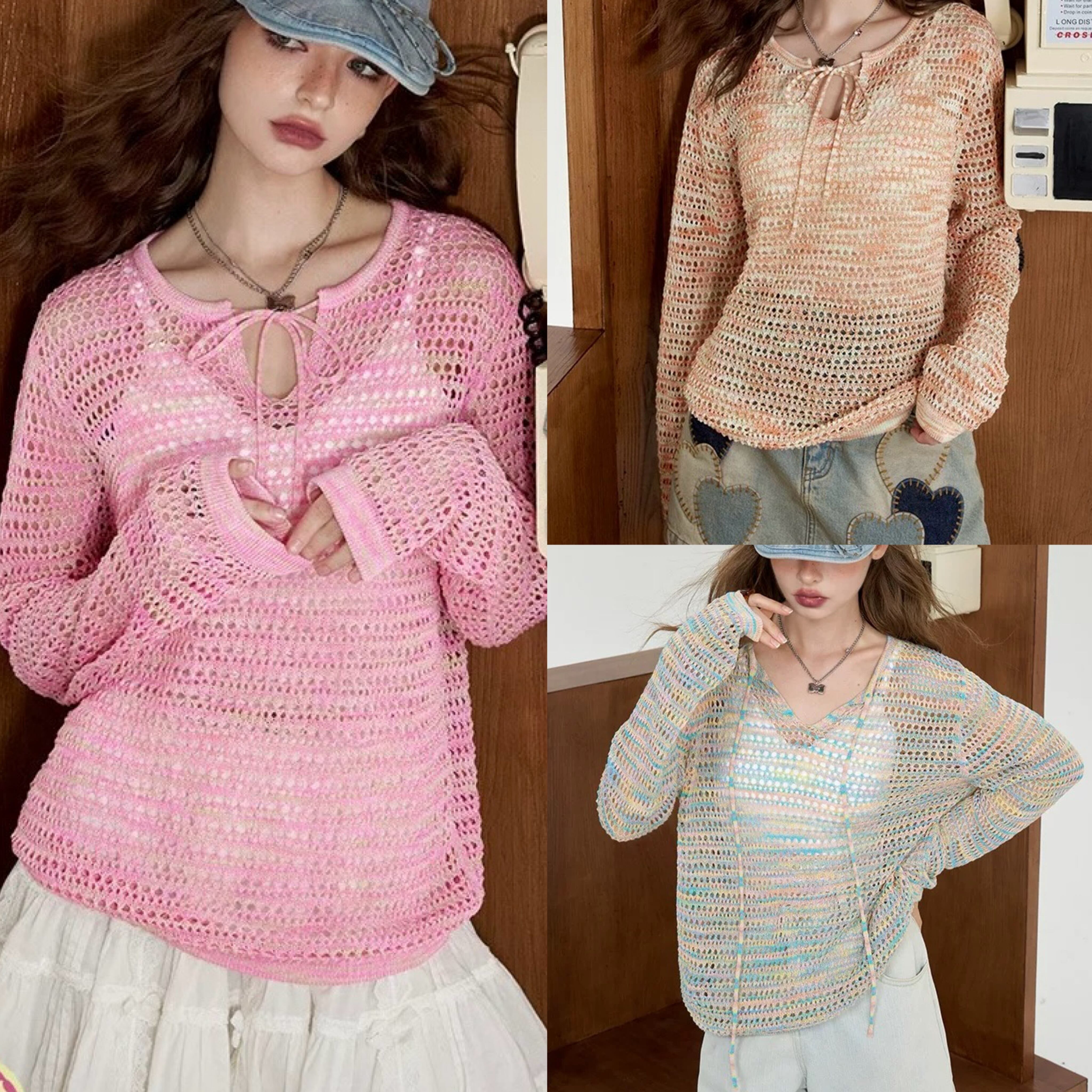 あみあみ メッシュ ブラウス カーディガン ピンク オレンジ 水色 トップス