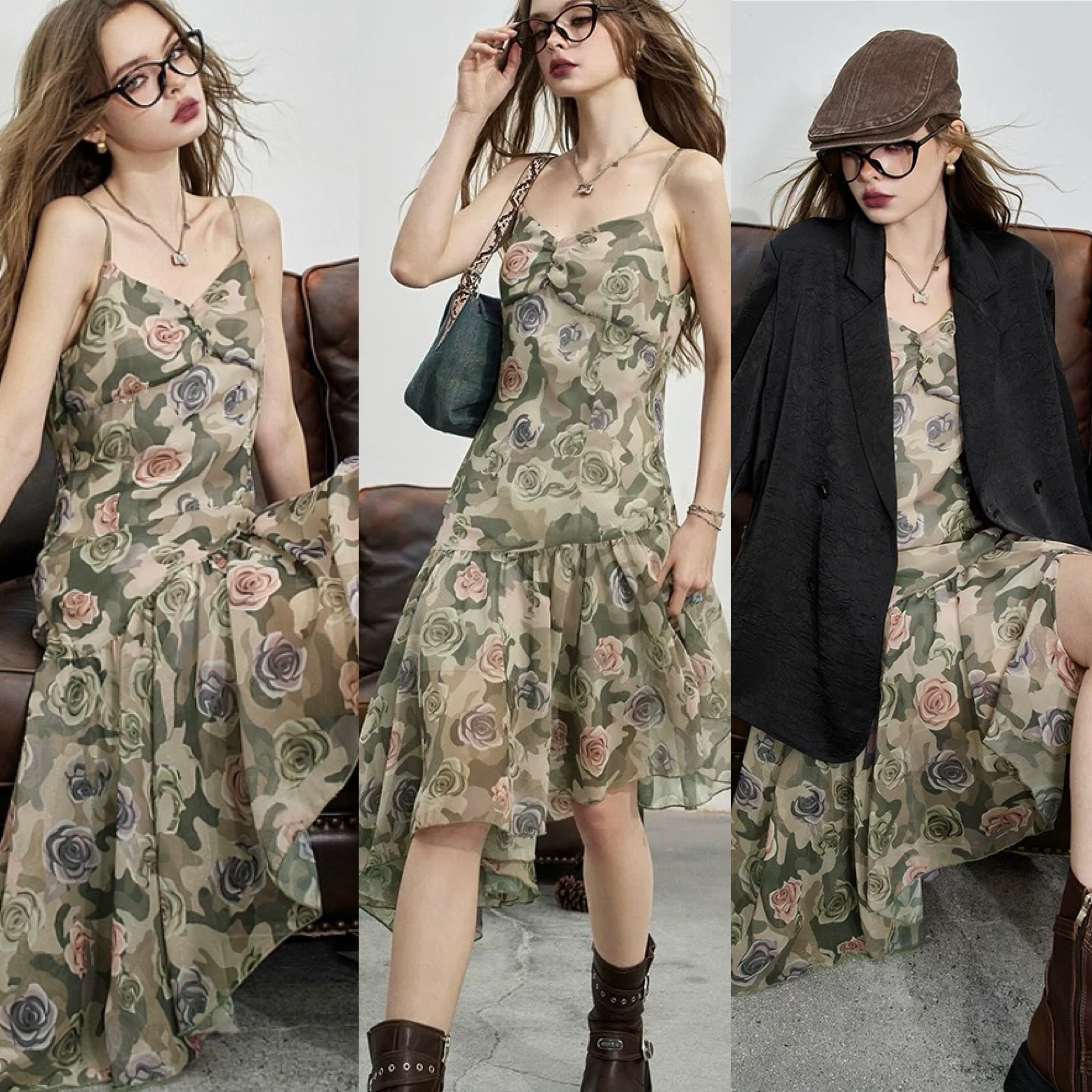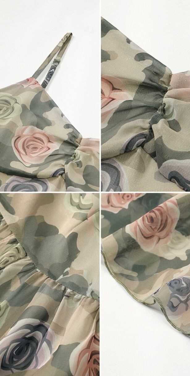 キャミソール ワンピース 薔薇 花柄 フラワー スカート 原宿 迷彩 カモフラージュ
