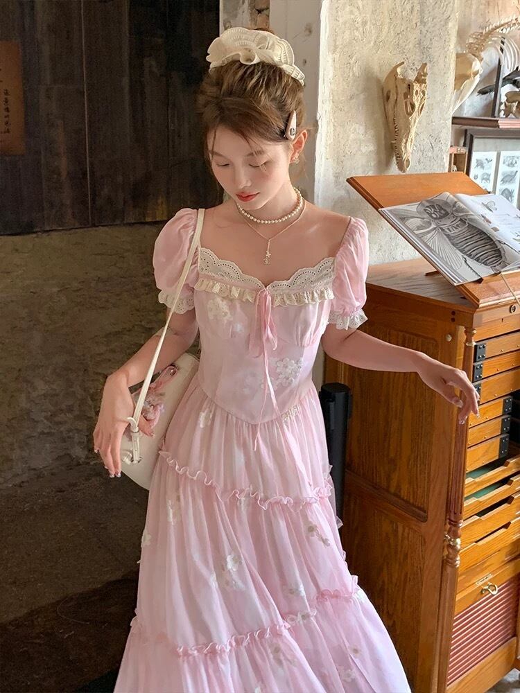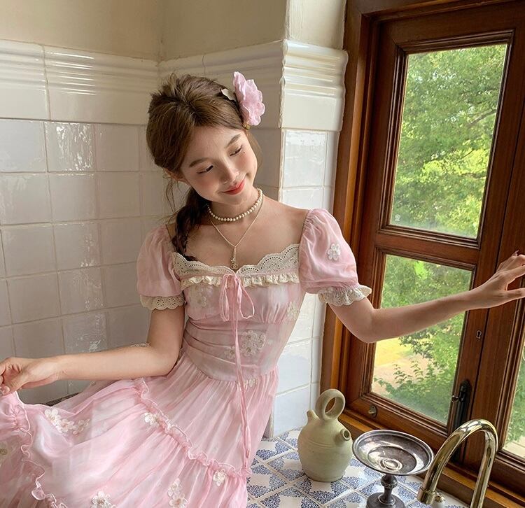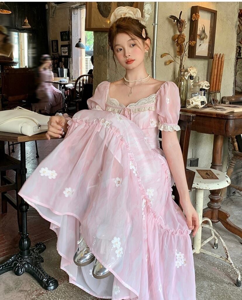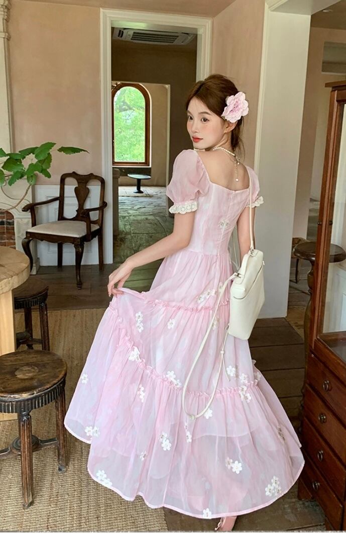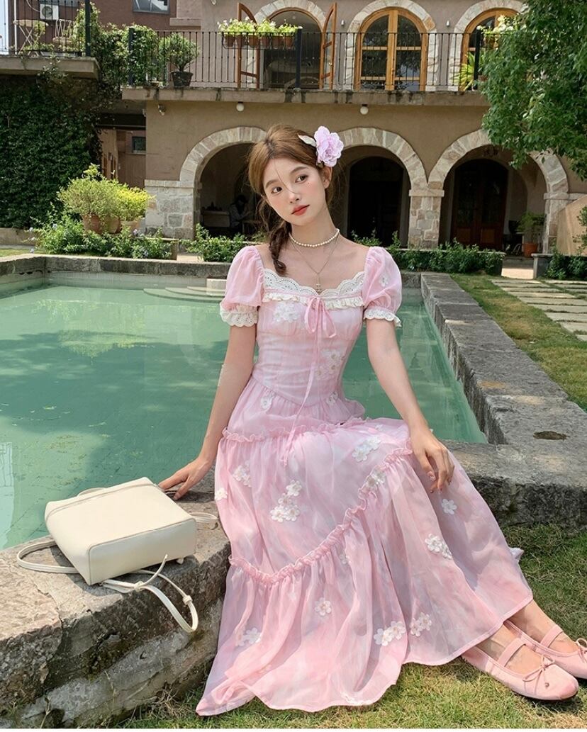 ピンク フラワー ワンピース ガーリー 可愛い お嬢様 ブラウス