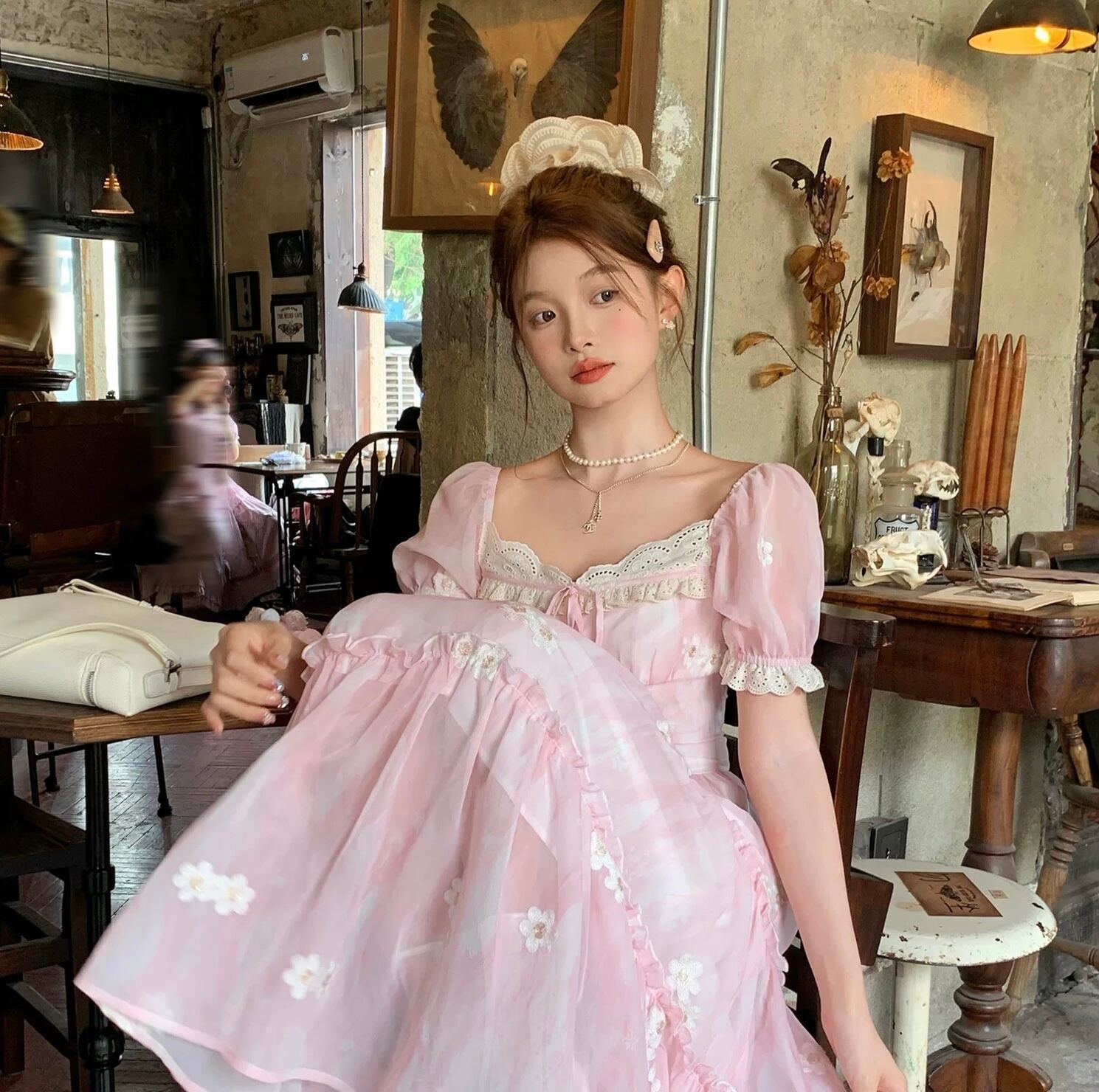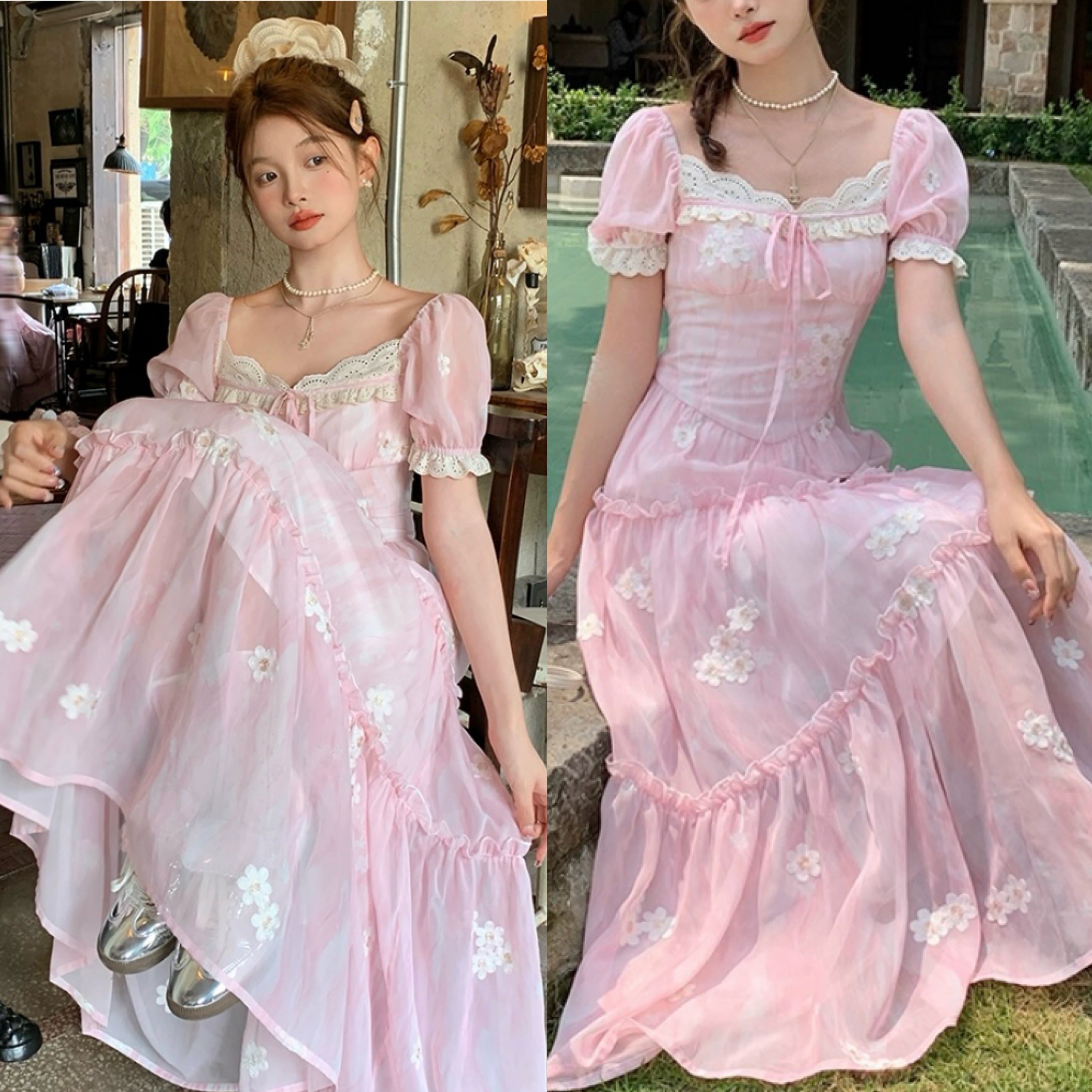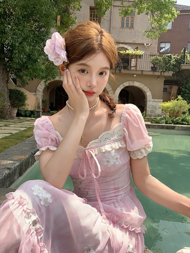 ピンク フラワー ワンピース ガーリー 可愛い お嬢様 ブラウス