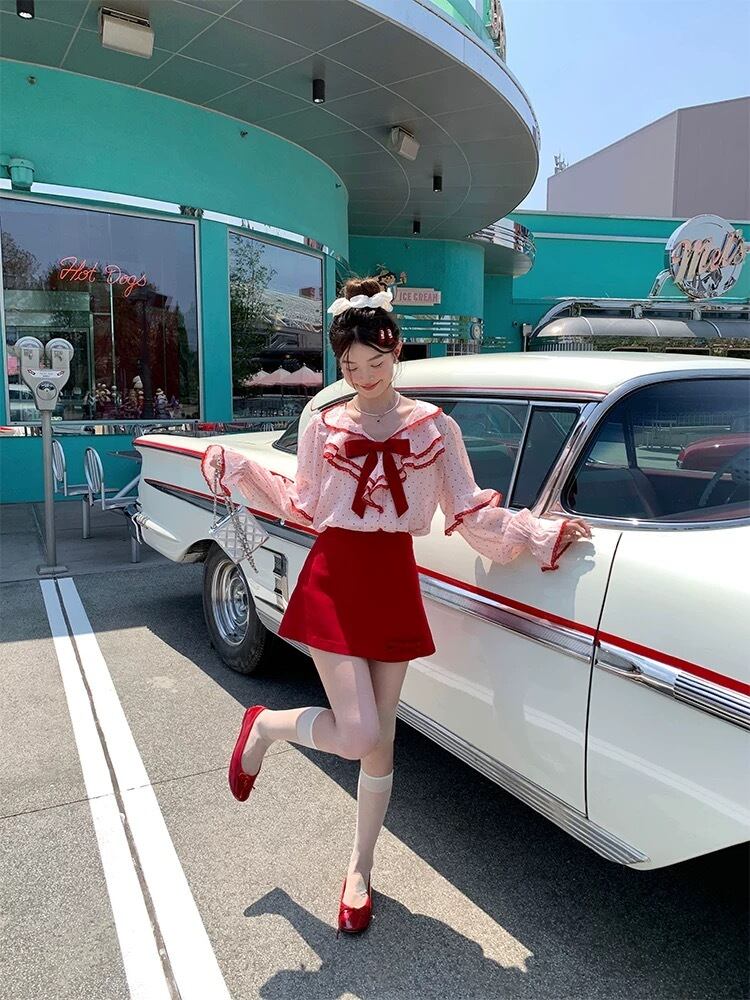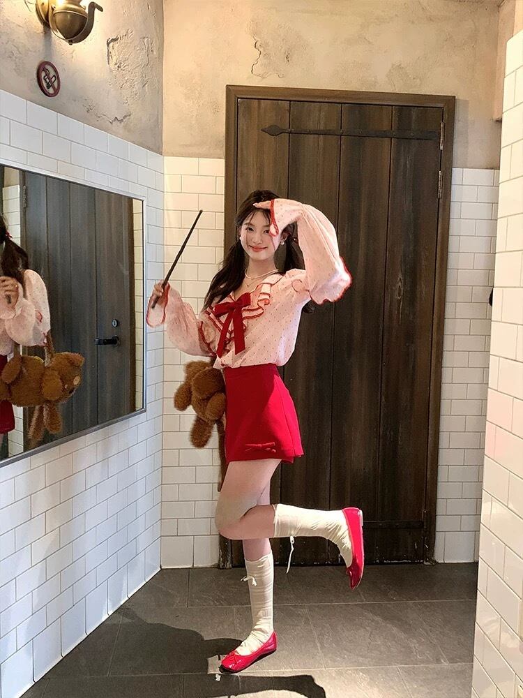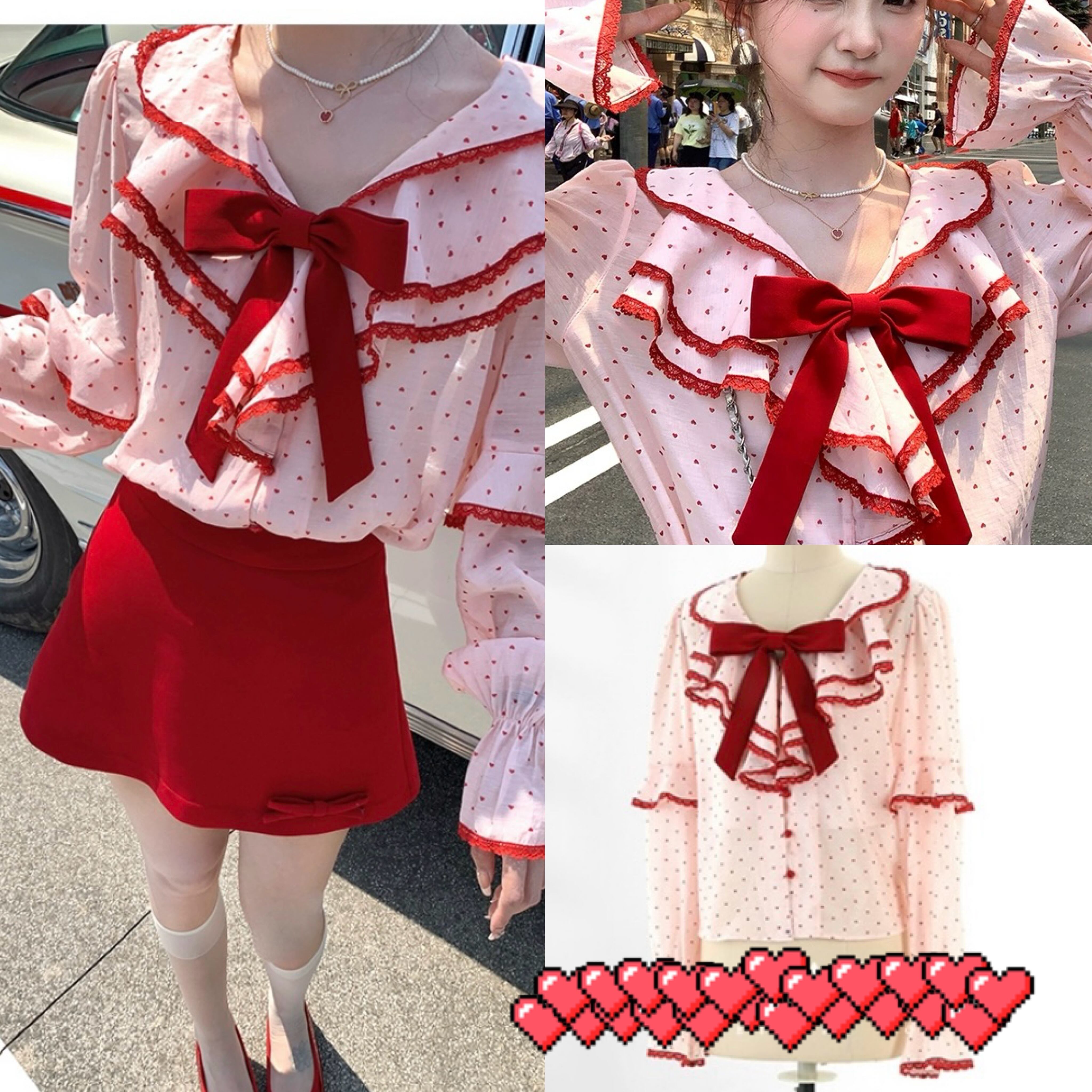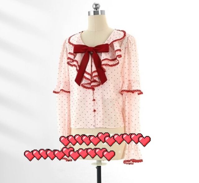 赤 リボン ピンク ハート 水玉 ブラウス シャツ ガーリー トップス