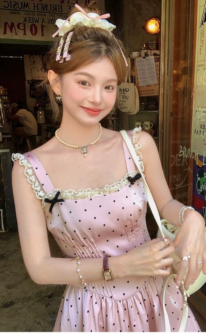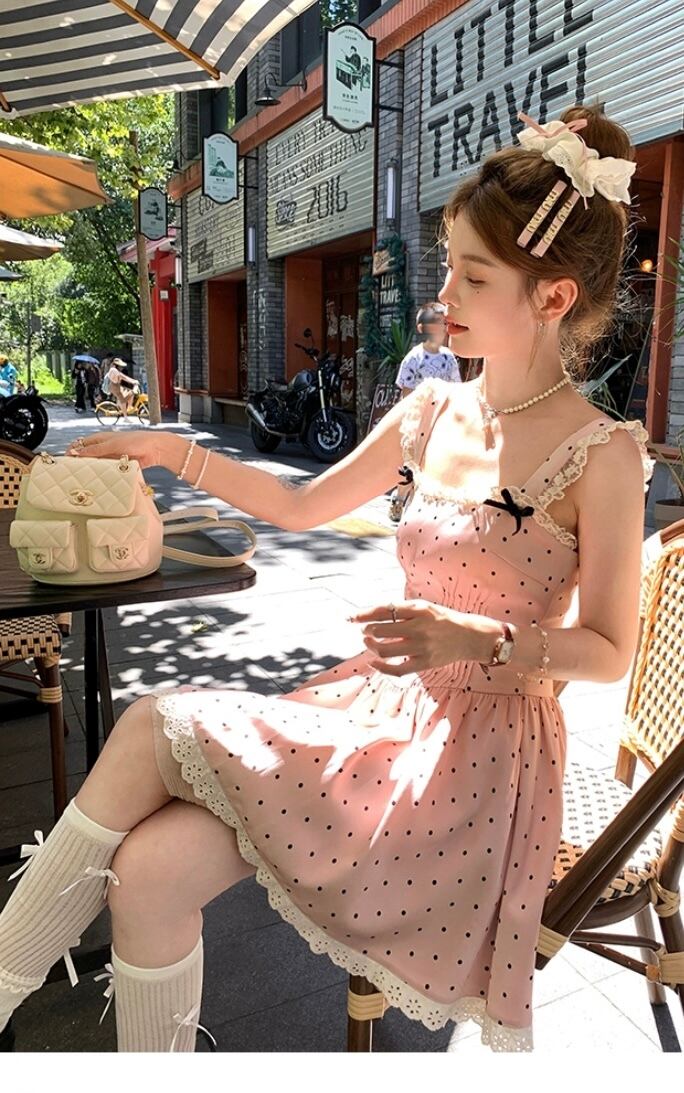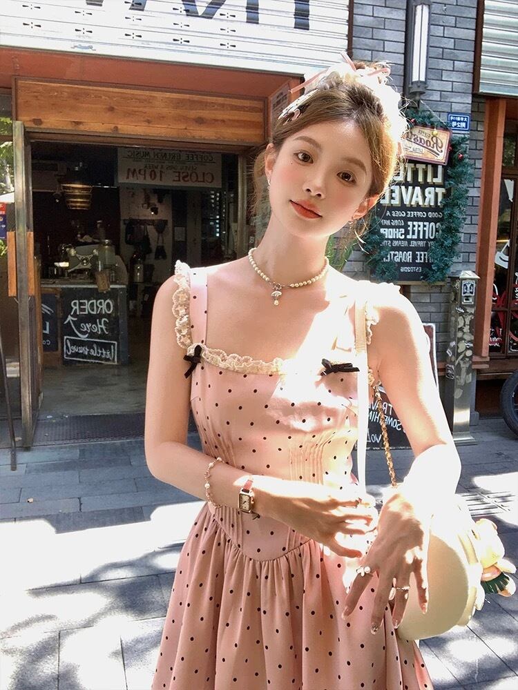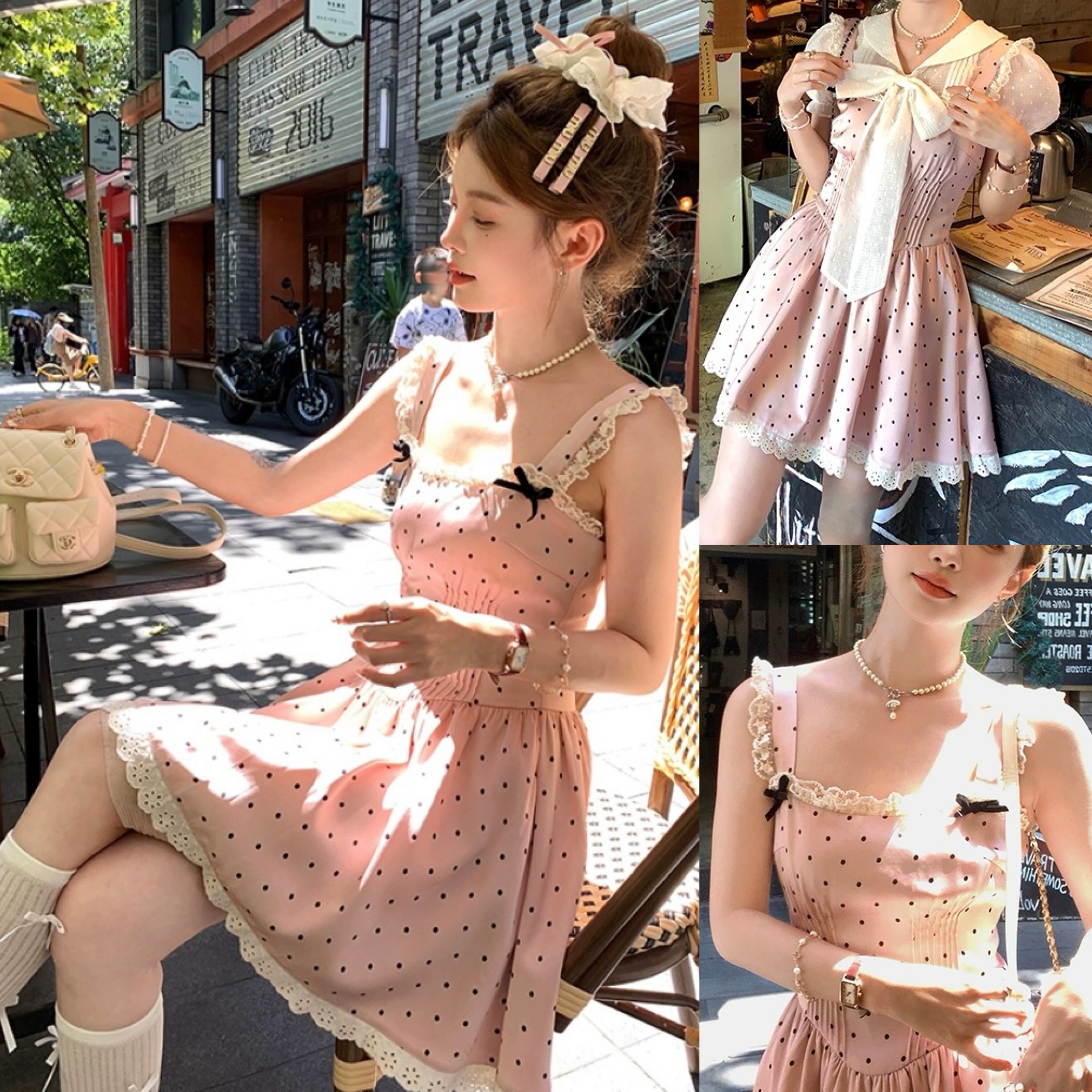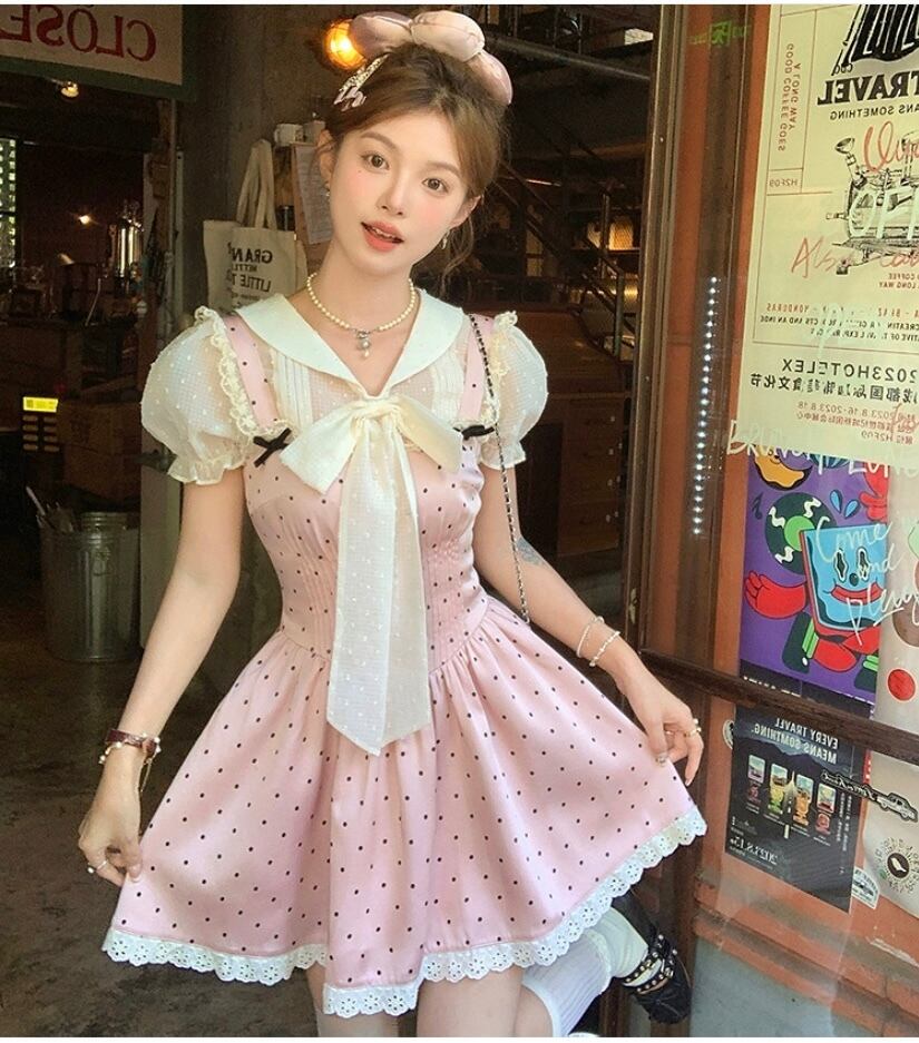 【ワンピース】ピンク 水玉 ドット ガーリー 可愛い 原宿 お嬢様