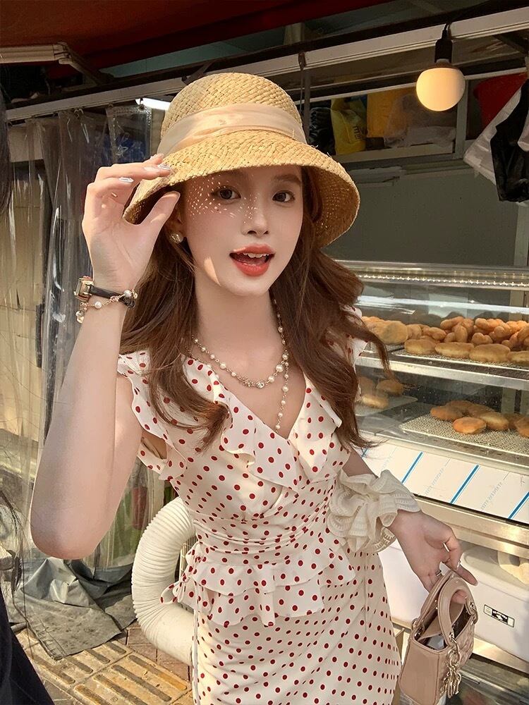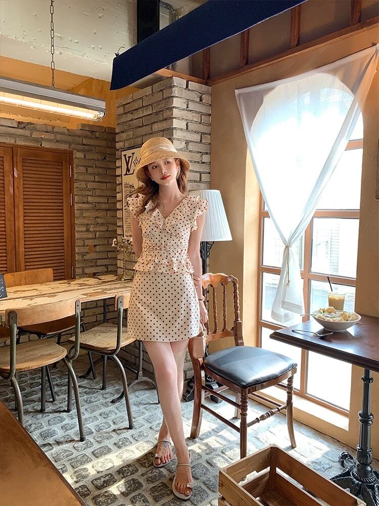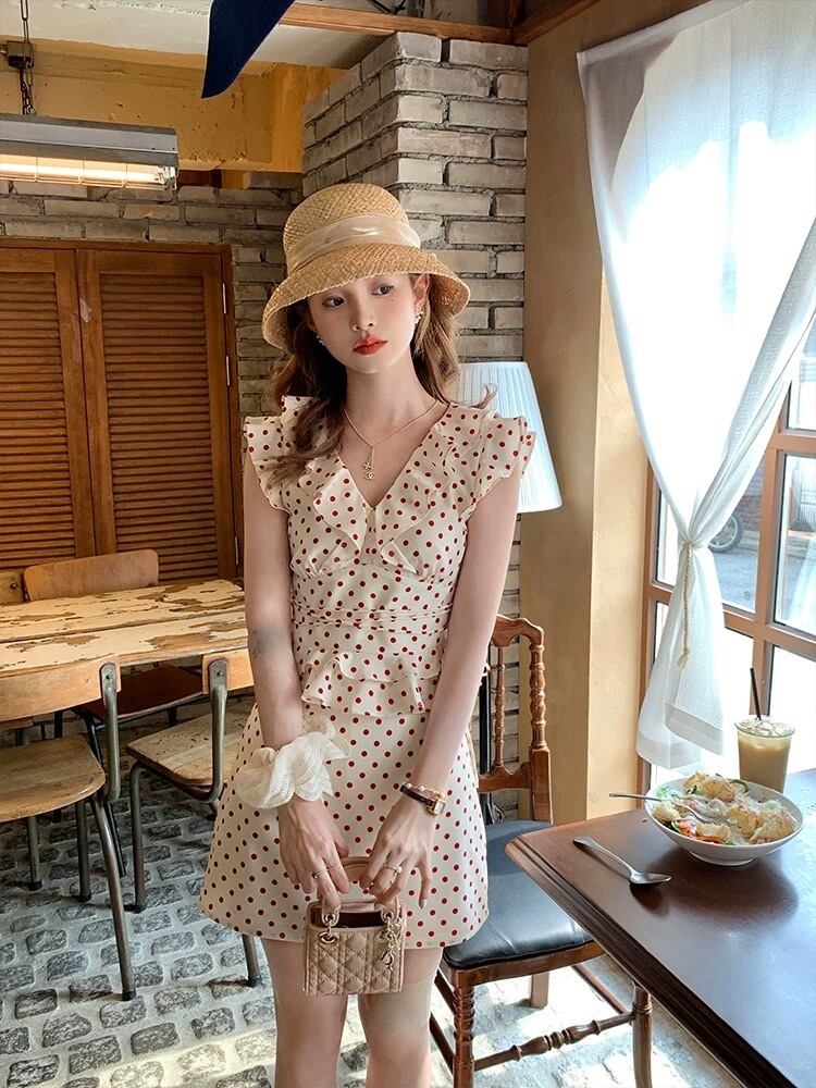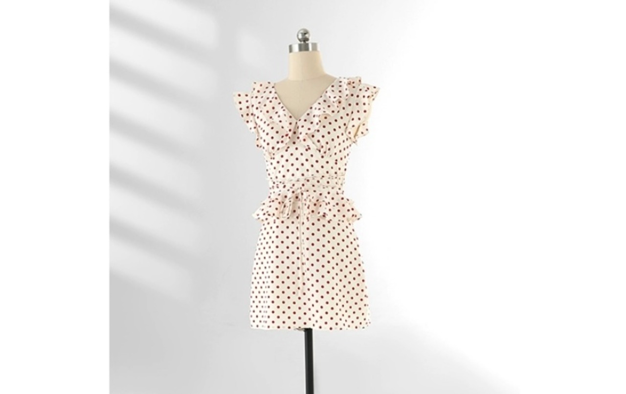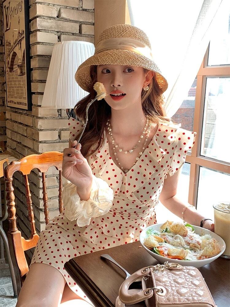 水玉 赤 白 フリル ガーリー 可愛い ブラウス お嬢様 可愛い