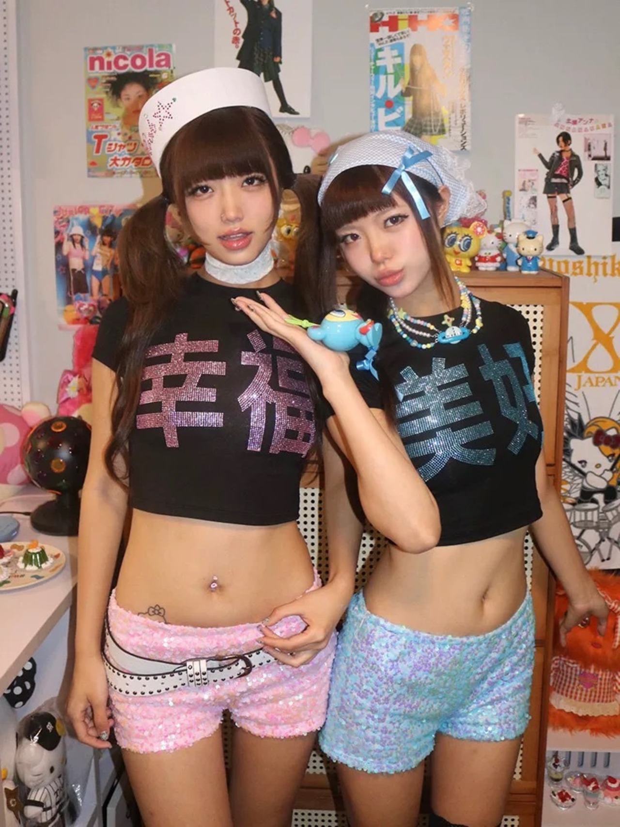 【ボトムス】キラキラ 水色 ピンク スパンコール ショートパンツ 原宿 コスプレ 秋葉原
