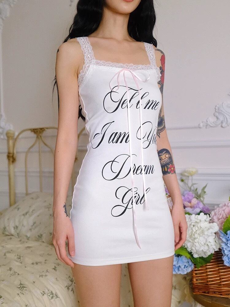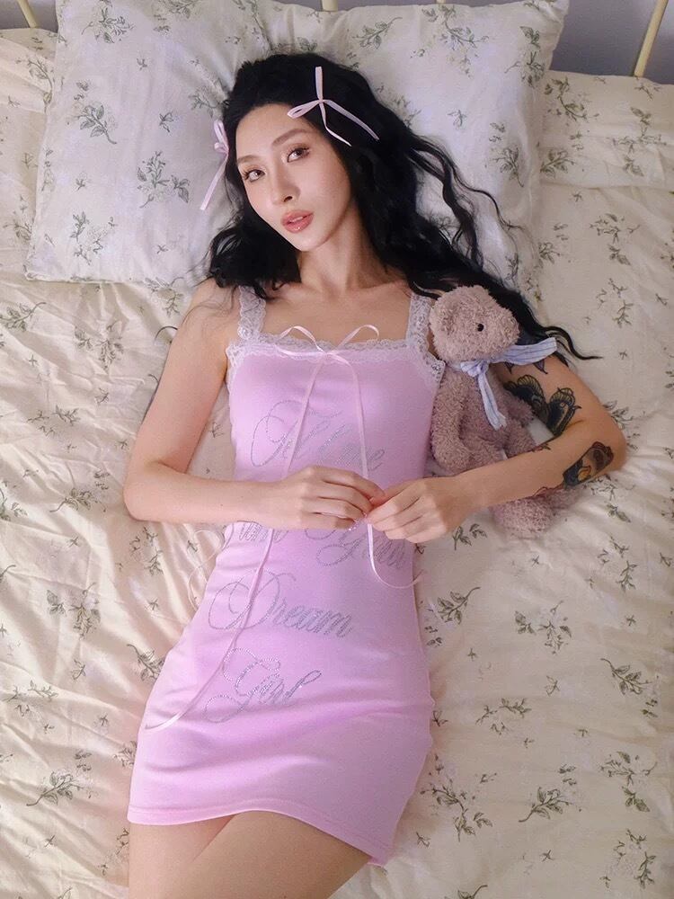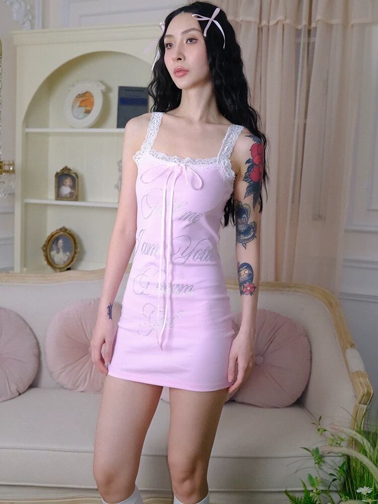 キャミソール ピンク 白 可愛い タンクトップ ワンピース リボン 原宿