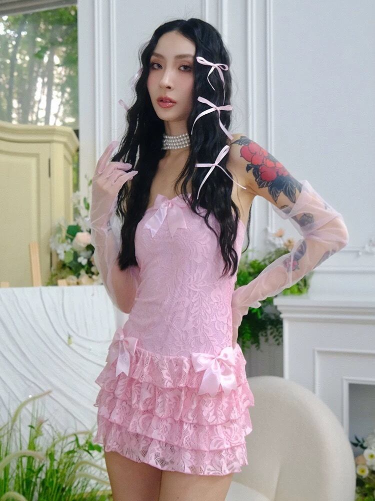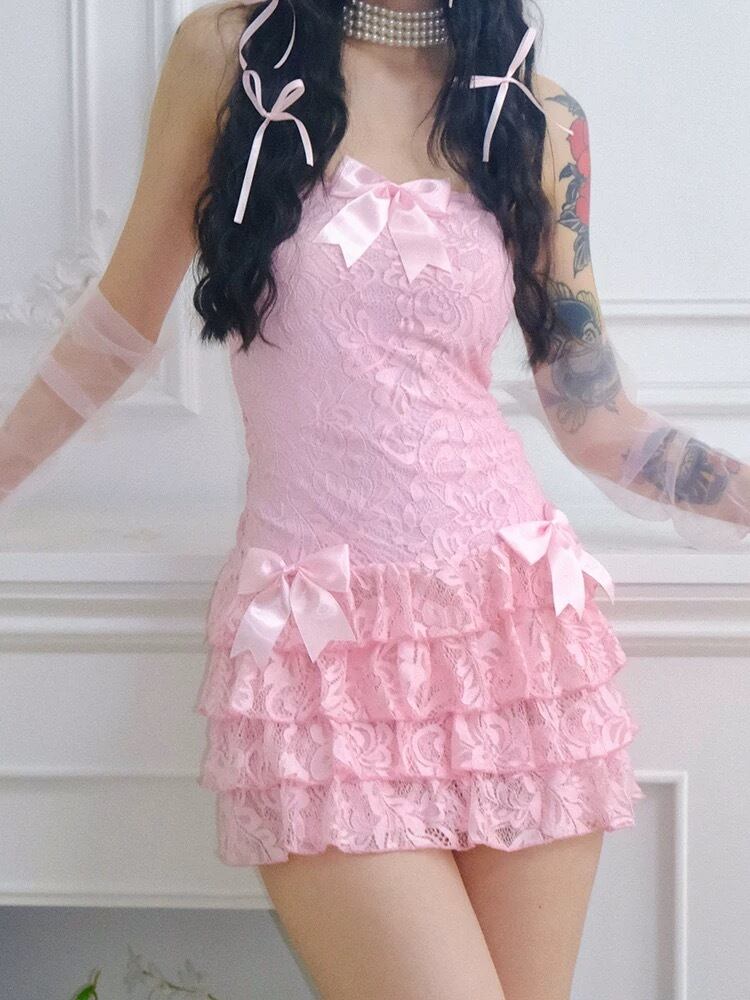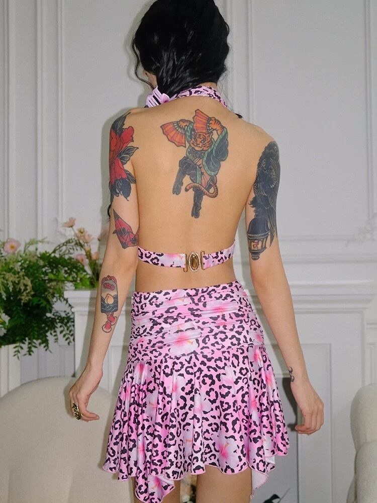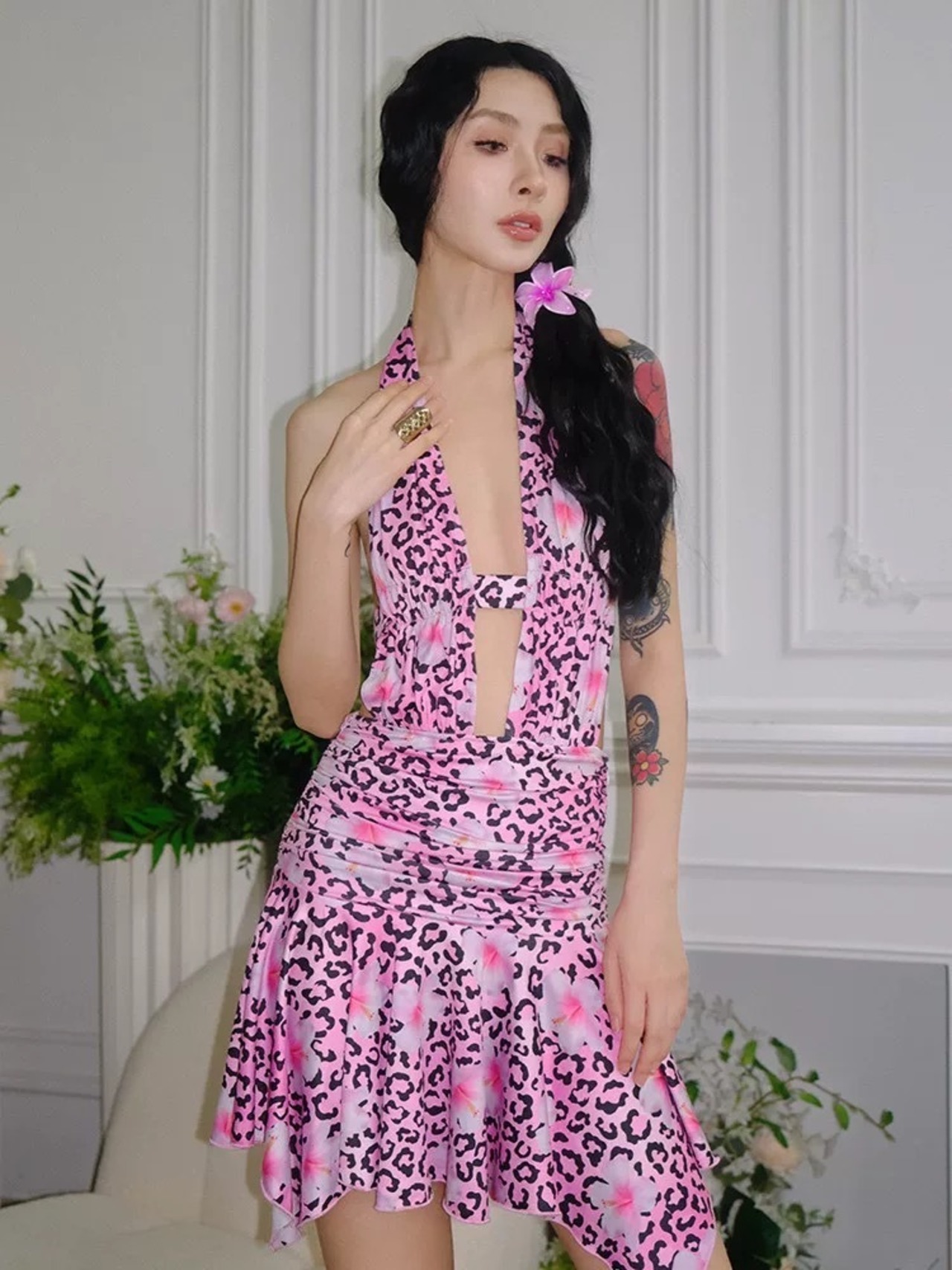 ピンク キャミソール ガーリー リボン セクシー ダンス 衣装 ハイビスカス 原宿 衣装 レオパード ヒョウ柄
