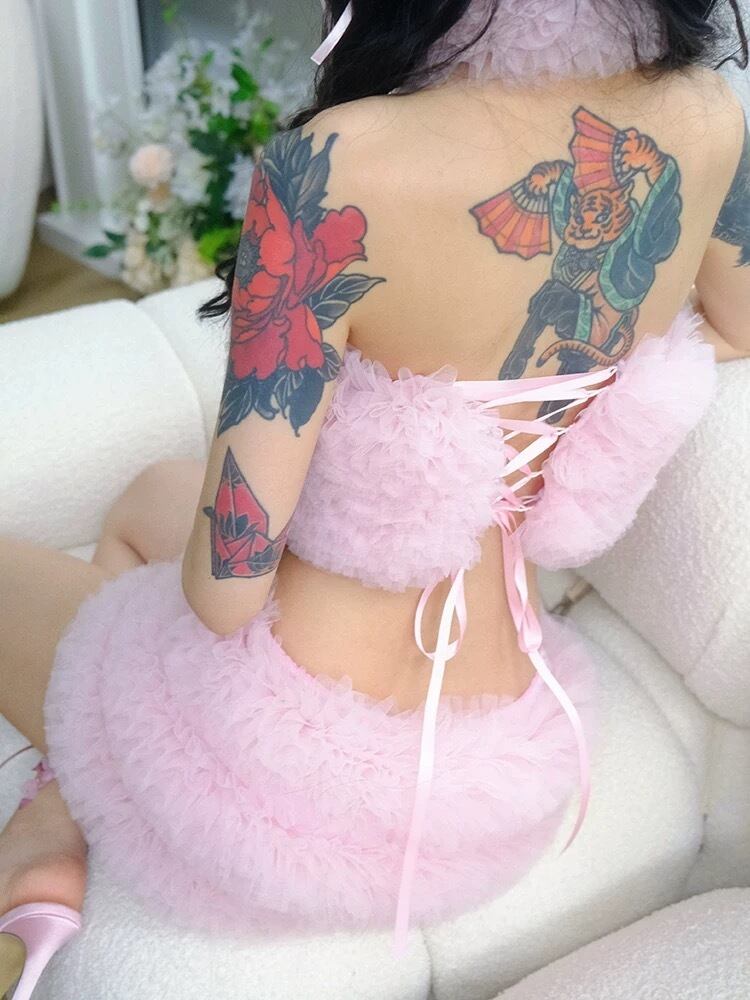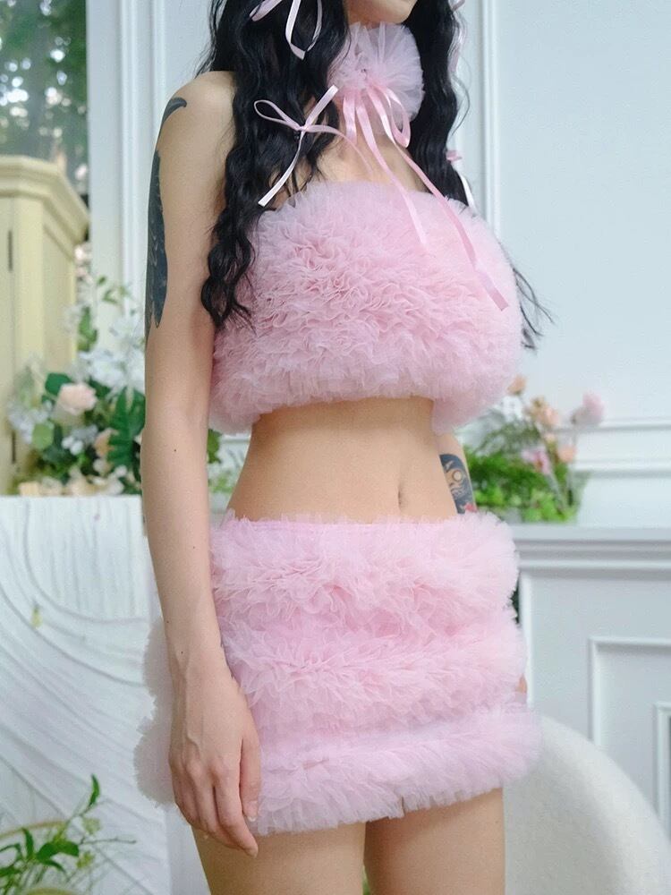 【3セット】ピンク セットアップ リボン ダンス コルセット スカート ブラウス キャミソール ドレス コスプレ 衣装 パーティー
