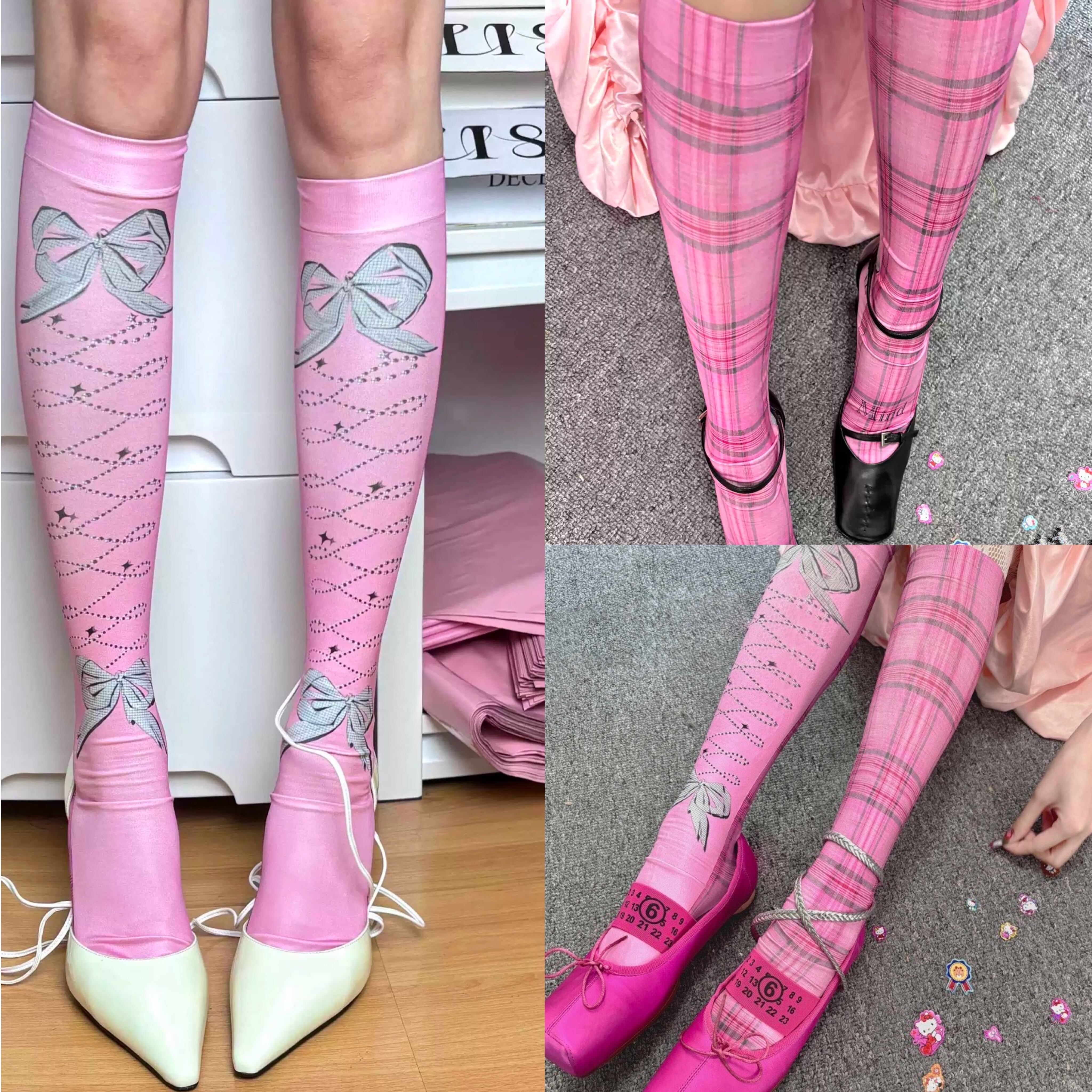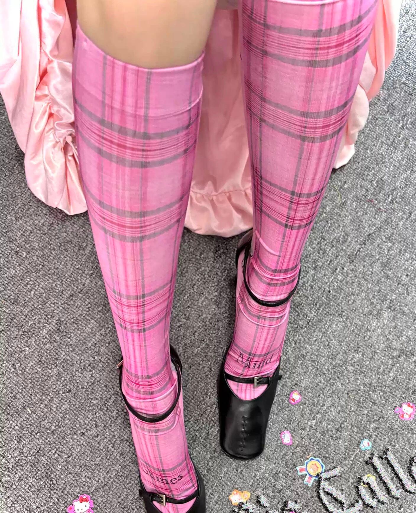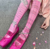 タイツ 靴下 ピンク リボン チェック 小物 レッグ