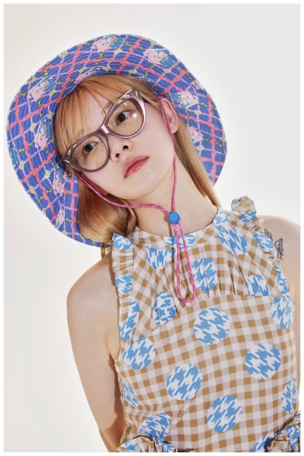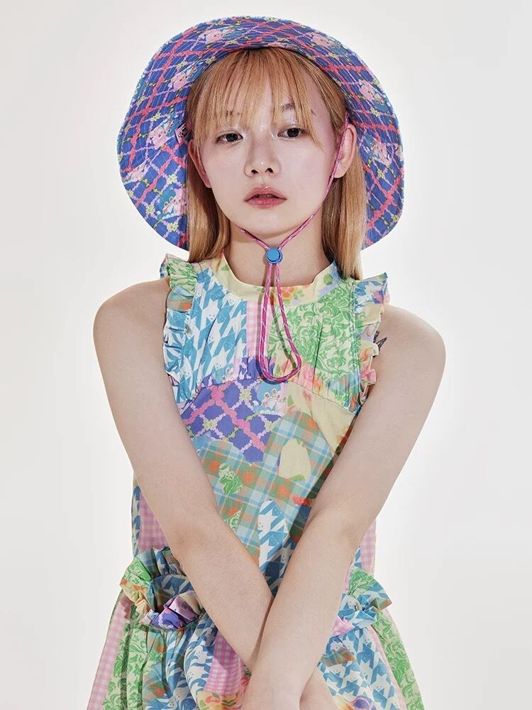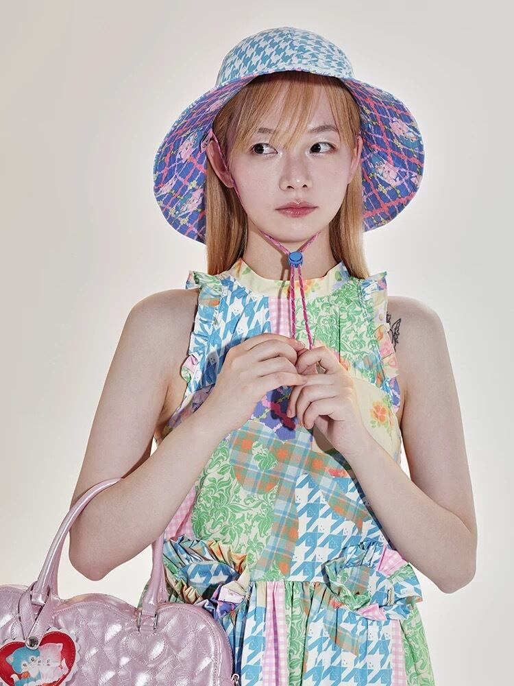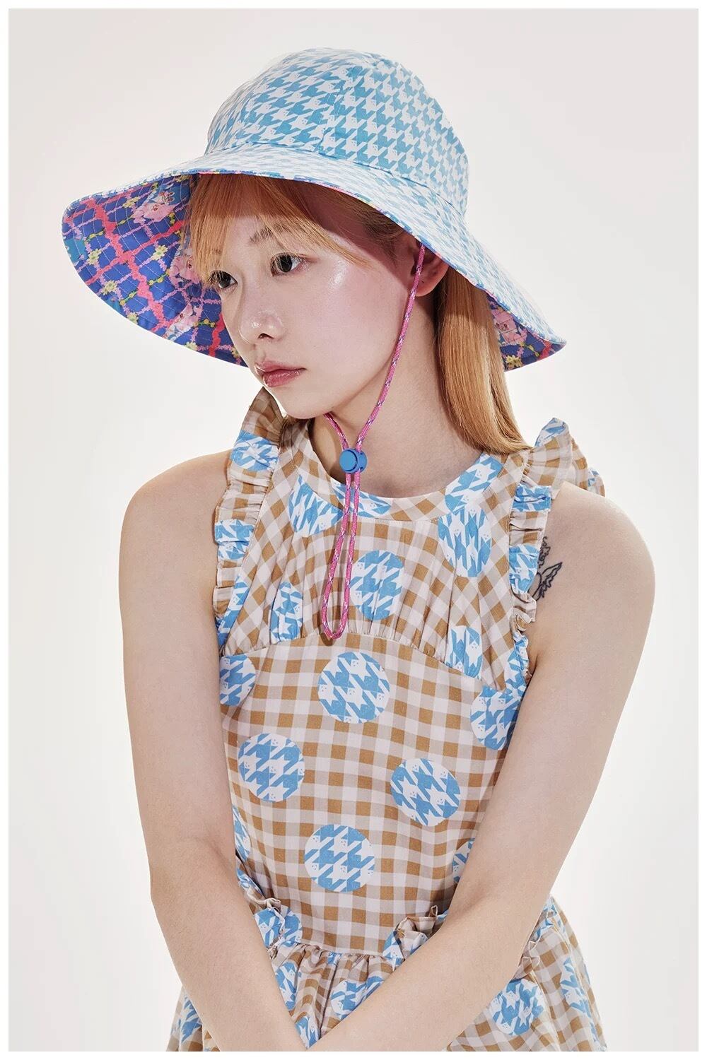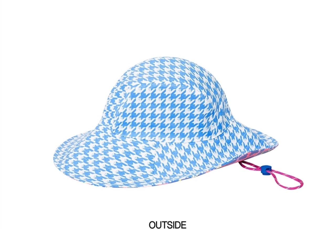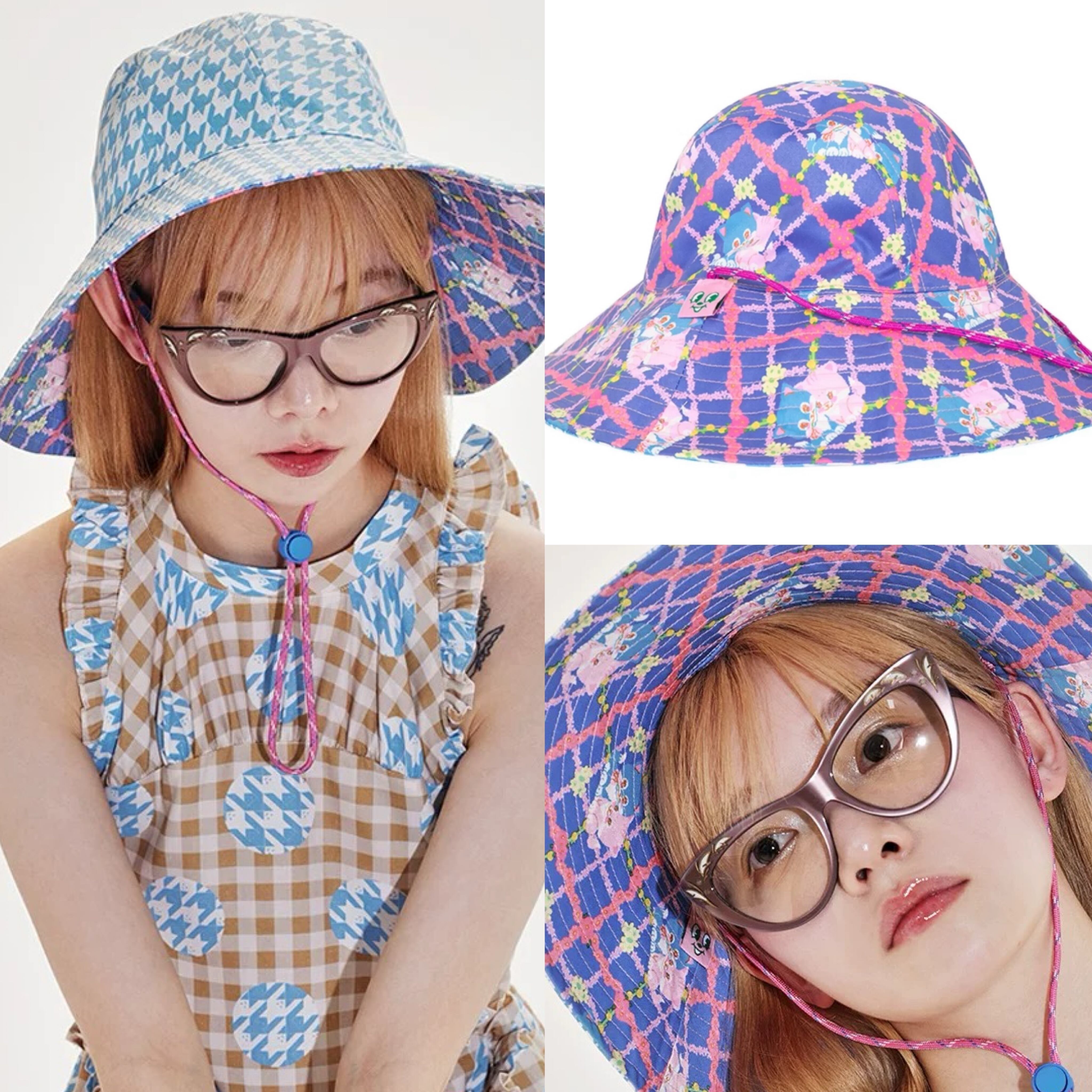 【リバーシブル】水色 チェック 格子柄 ひよけ バケハ 紫 可愛い ガーリー