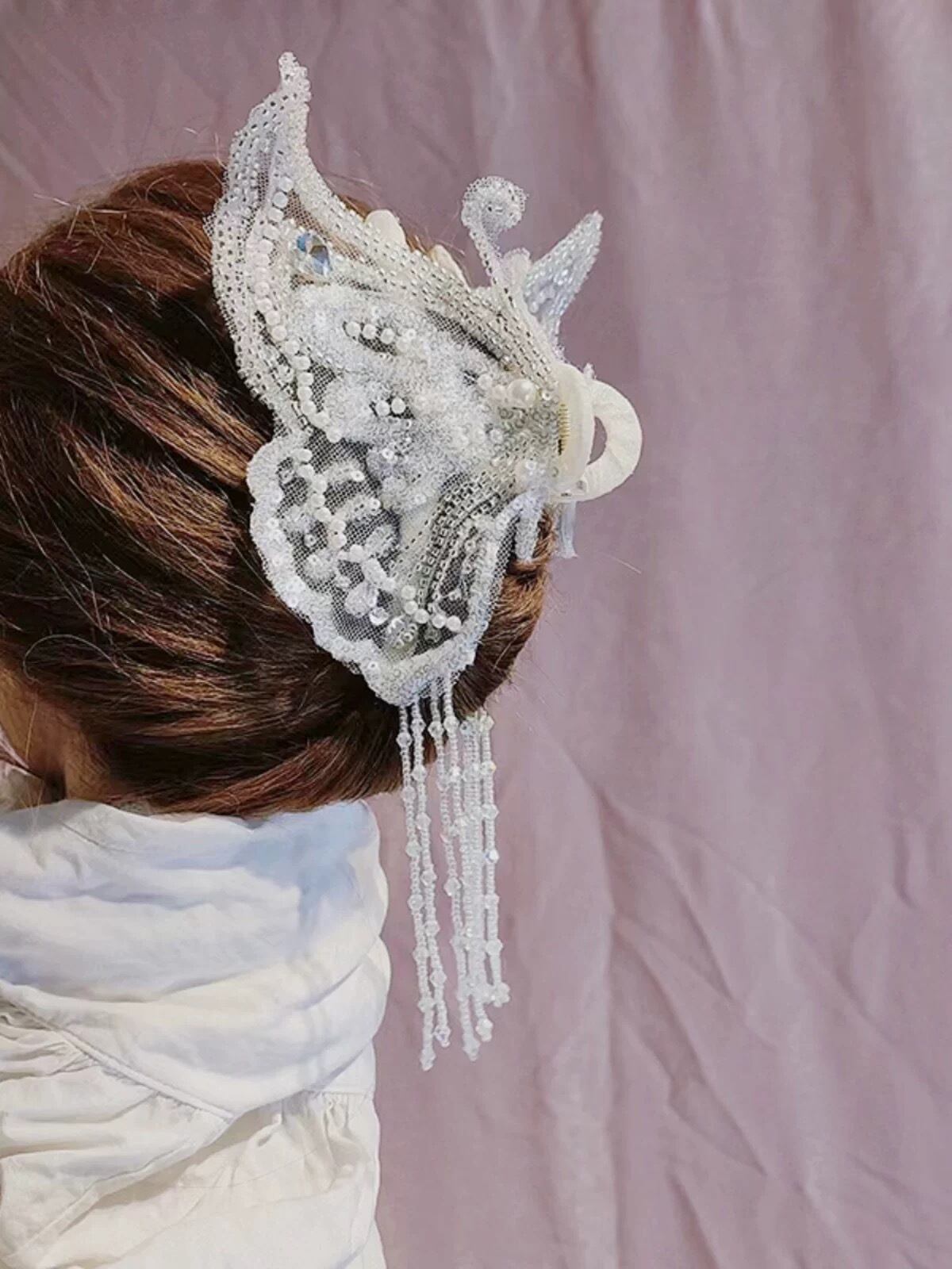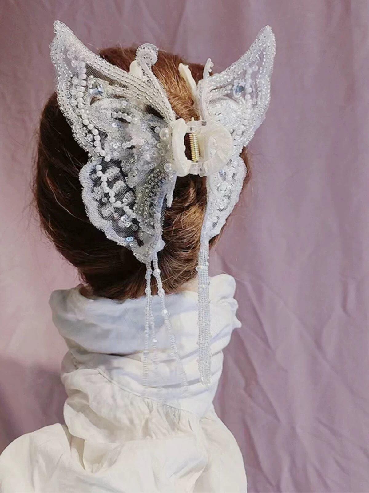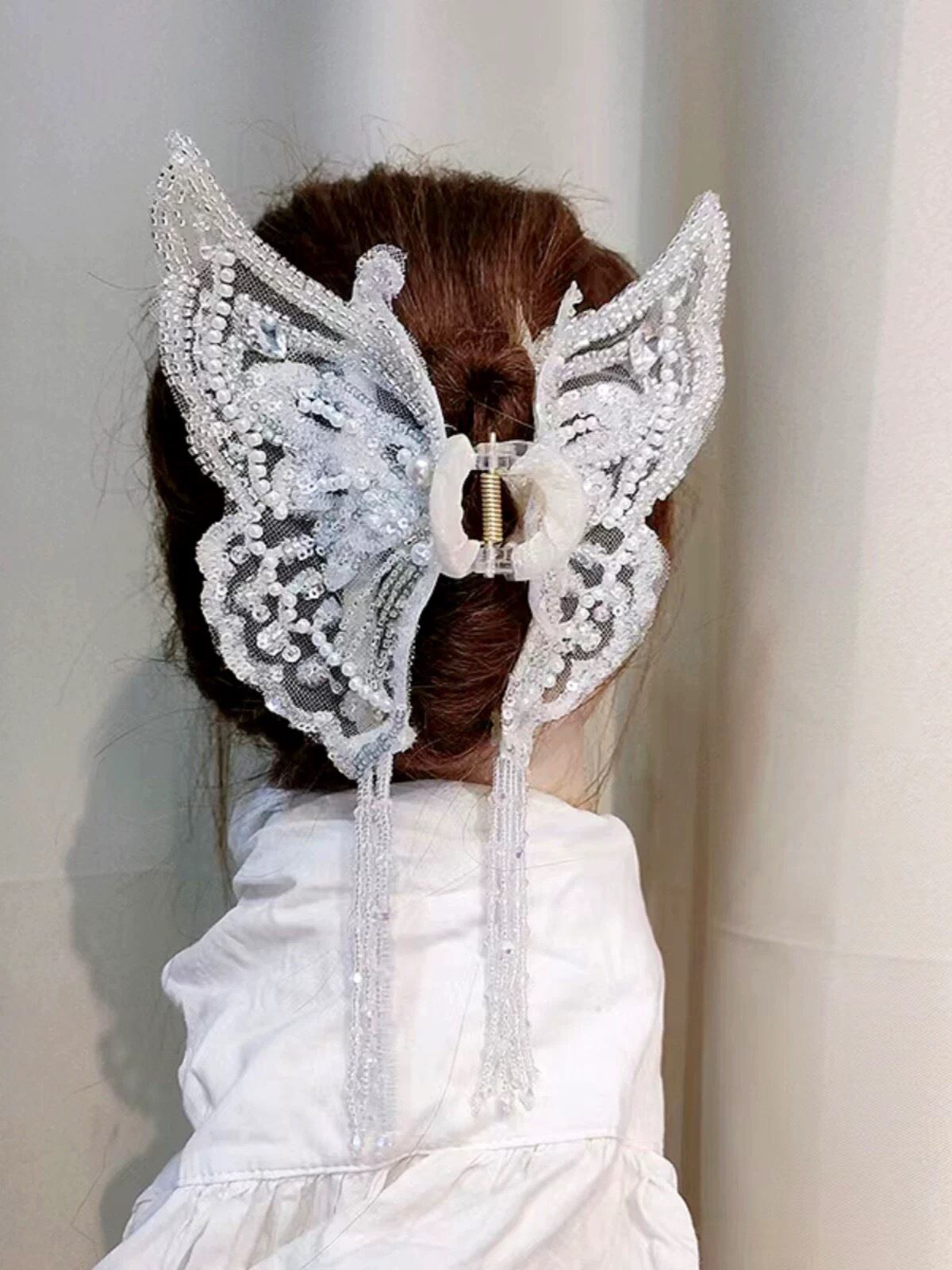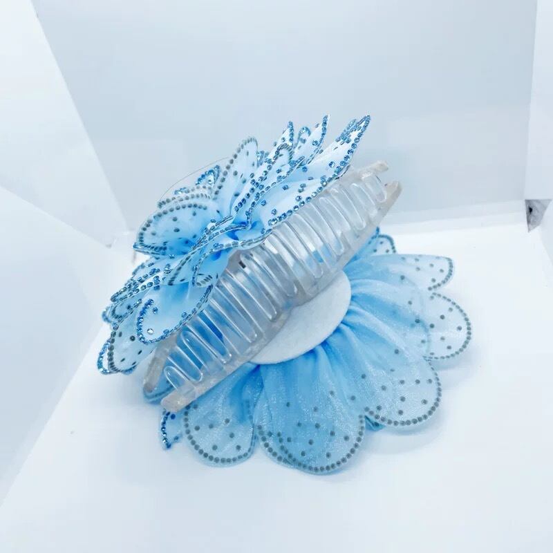ヘアクリップ バンズ ヘアアクセサリー 花柄 バタフライ 蝶々 フラワー カメリア 紫 ピンク 水色