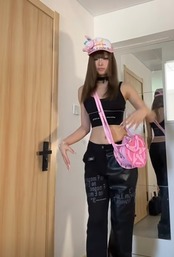 【2way】ハート 黒 ピンク バッグ 鞄 ショルダー サイバー 原宿 可愛い