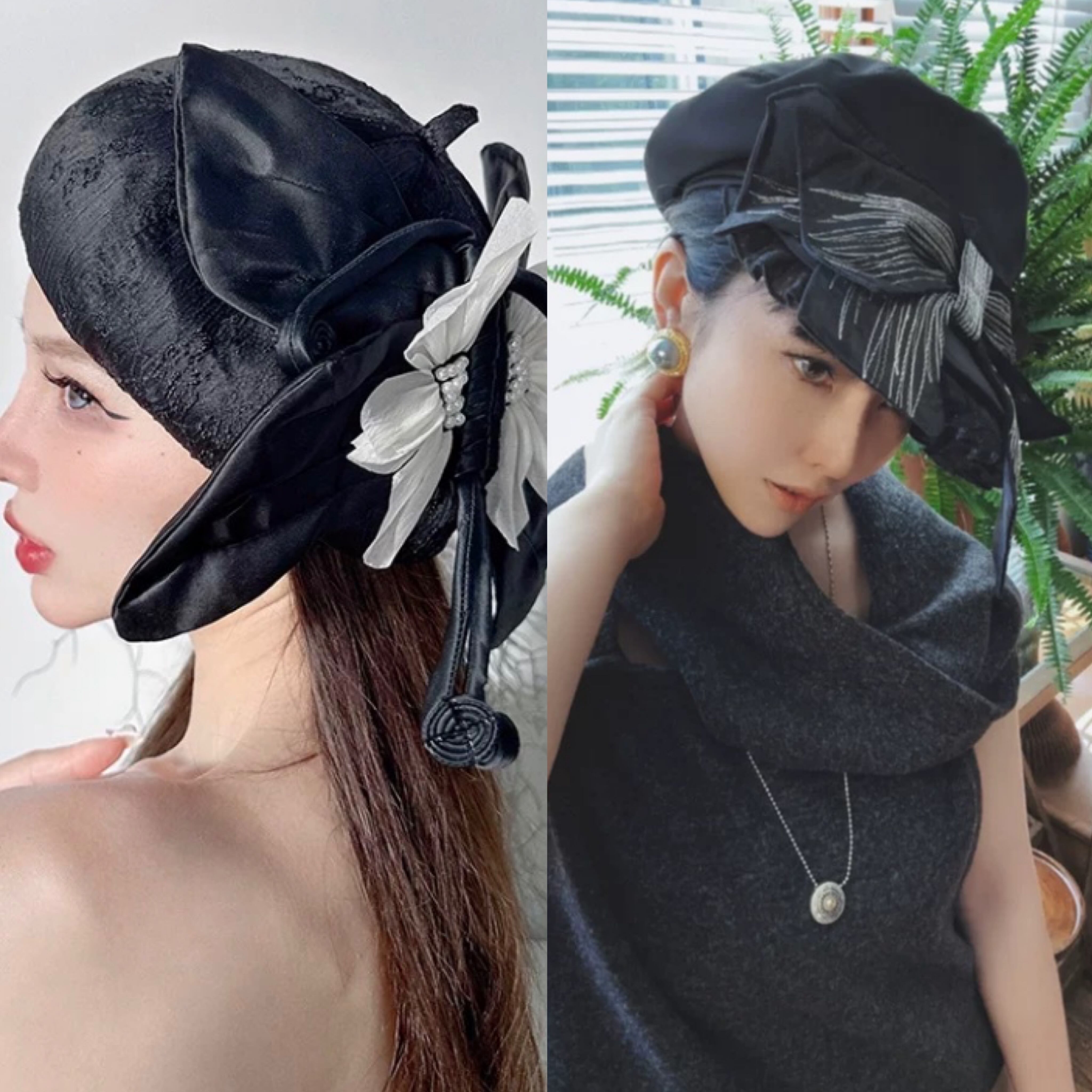 【特設ページ】黒 帽子 リボン 小物 ブラック