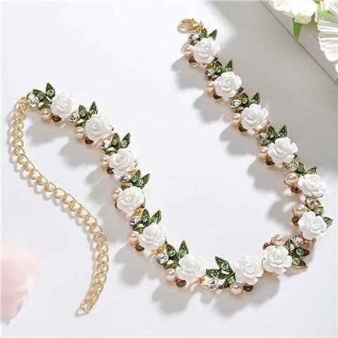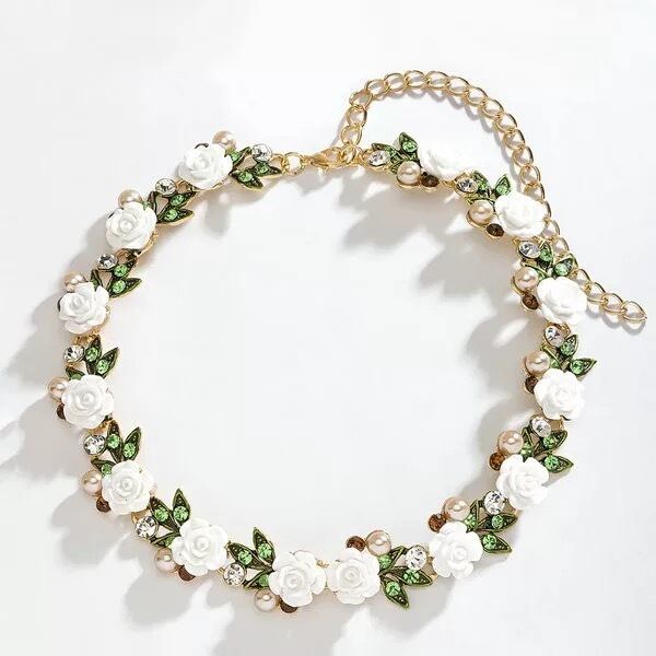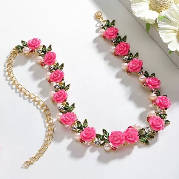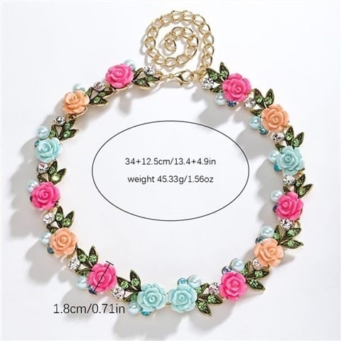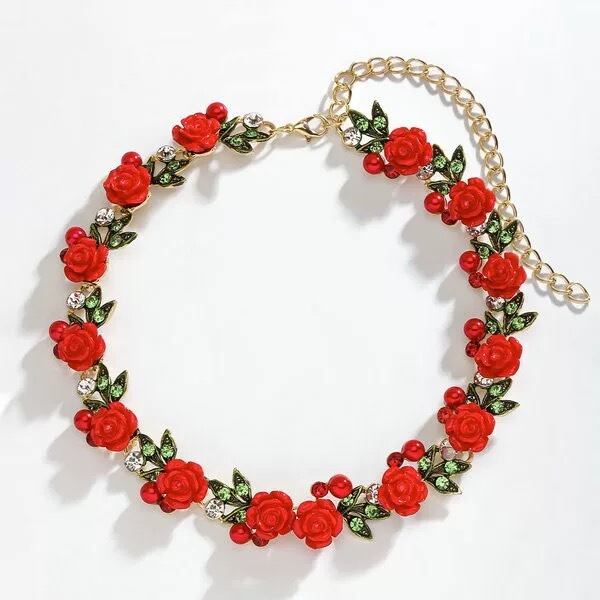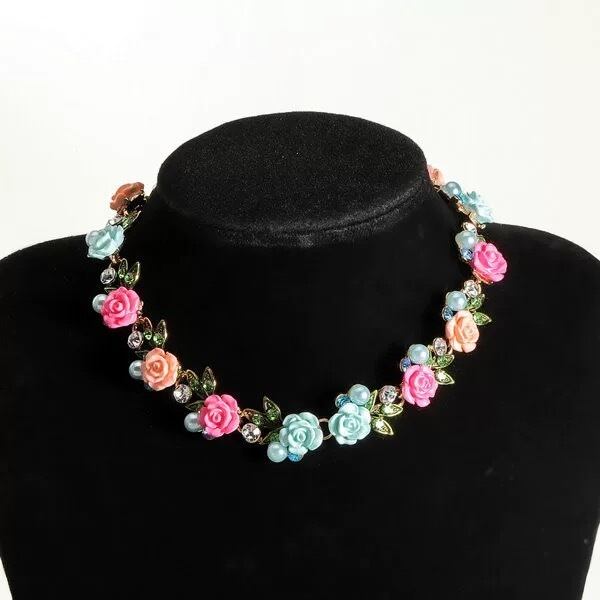 フラワー 花 バラ 可愛い ガーリー 姫 カラフル 水色 ピンク 水色 白 赤 クラシック ネックレス