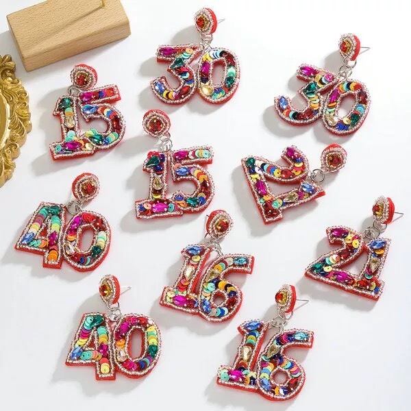 数字 ビーズ ナンバー 20 15 16 21 30 ゆらゆら 40 ピアス カラフル
