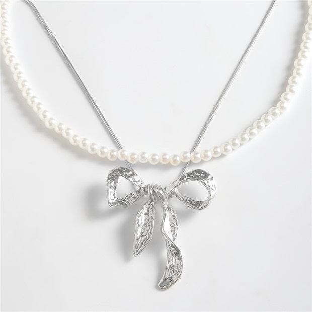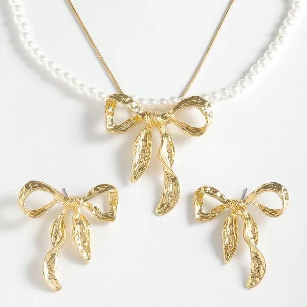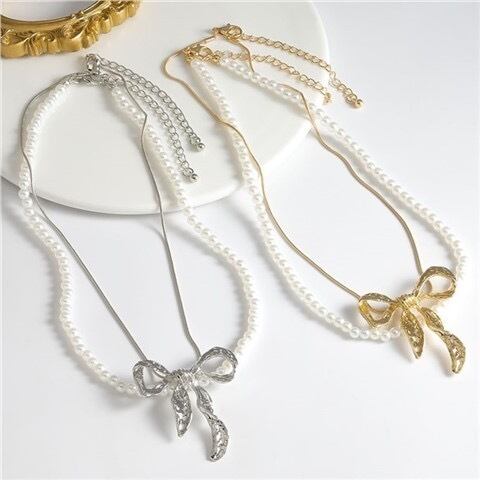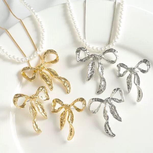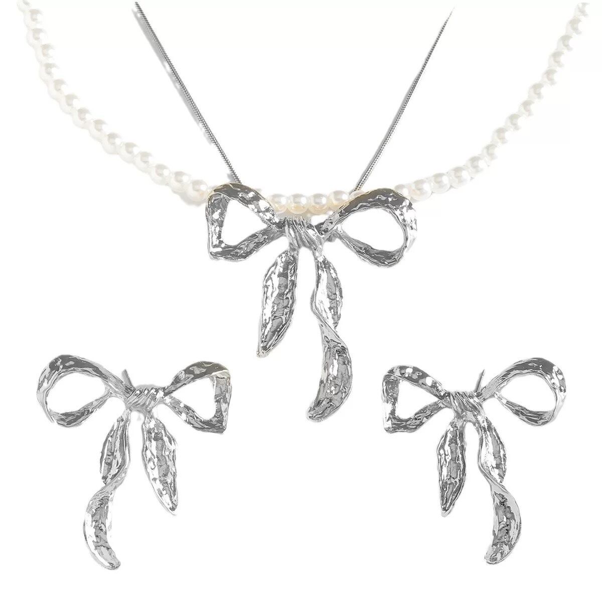 【セット】銀色 金色 ピアス ネックレス パール アクセサリー リボン
