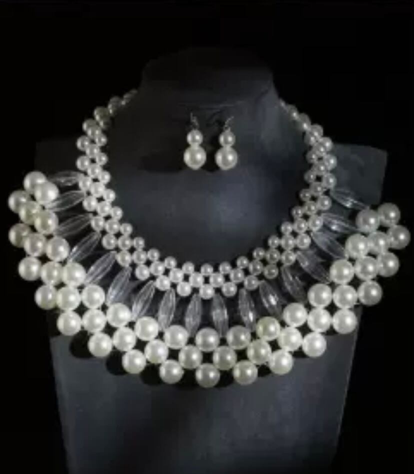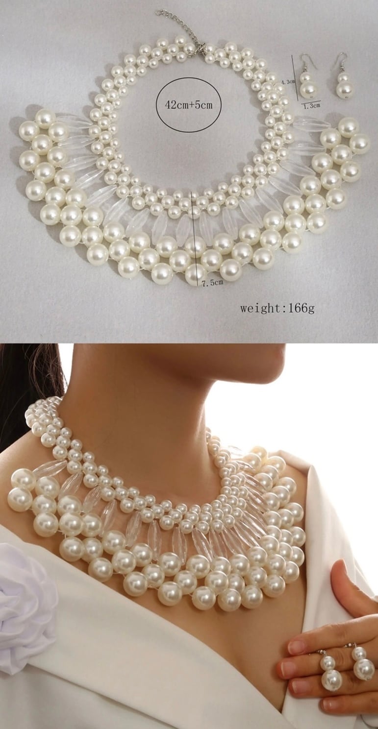 【セット】ネックレス ピアス ゴージャス ドレス 白 パール ビーズ