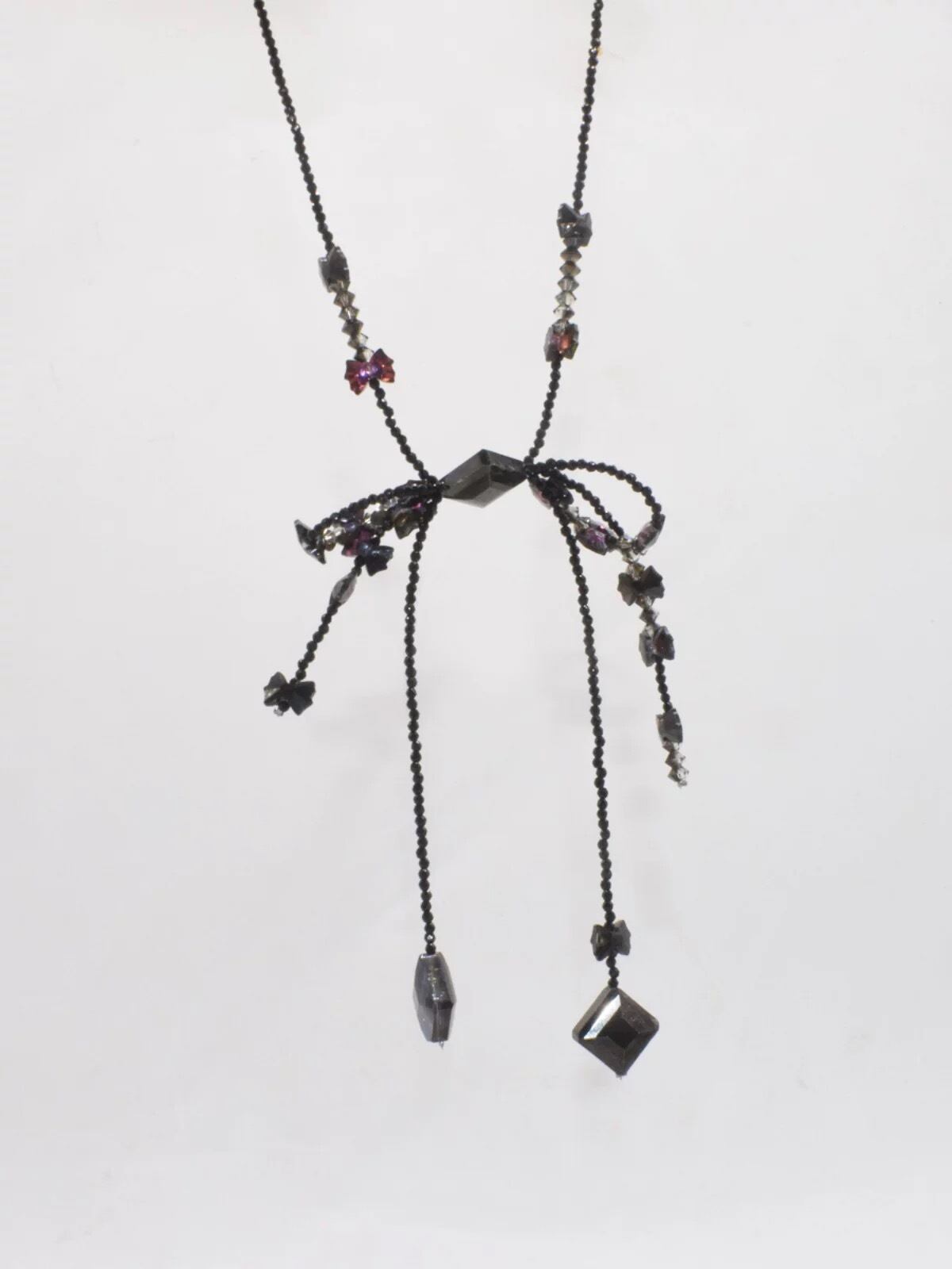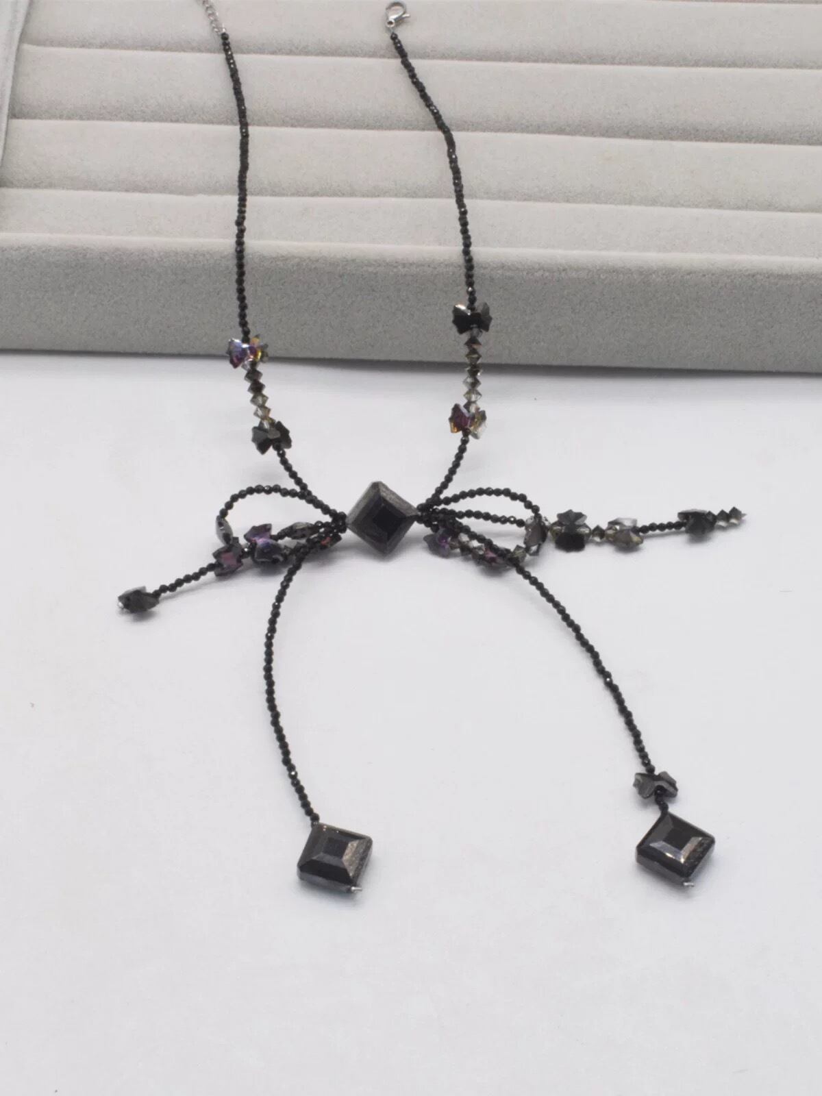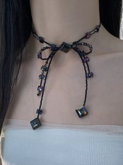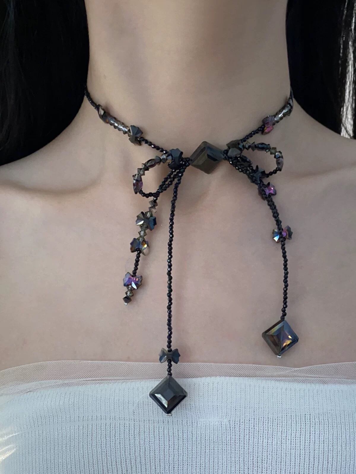 黒 ビーズ チョーカー リボン ネックレス ガーリー