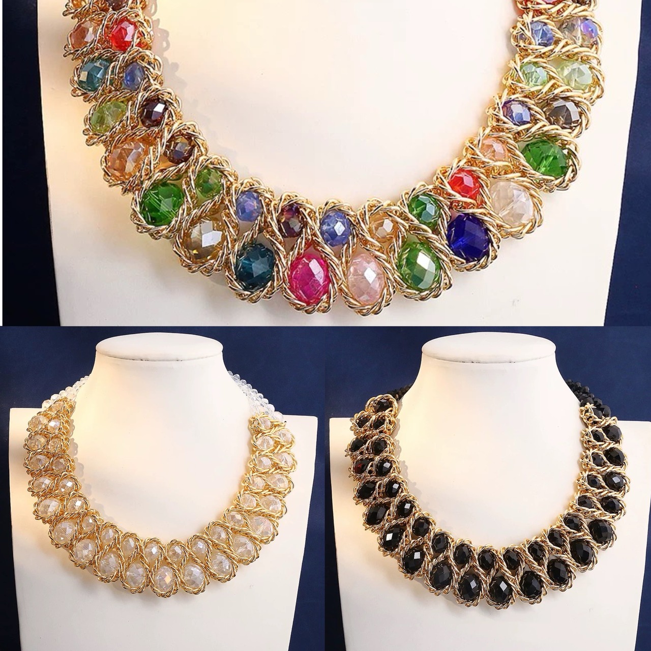 黒 カラフル 白 ゴールド ビジュー ネックレス ゴージャス