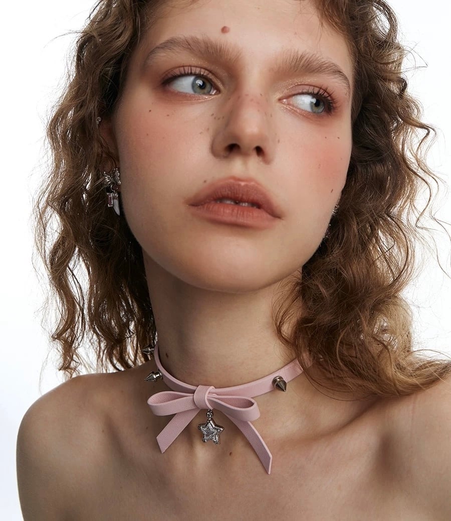 チョーカー リボン 黒 白 ピンク 可愛い ネックレス