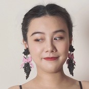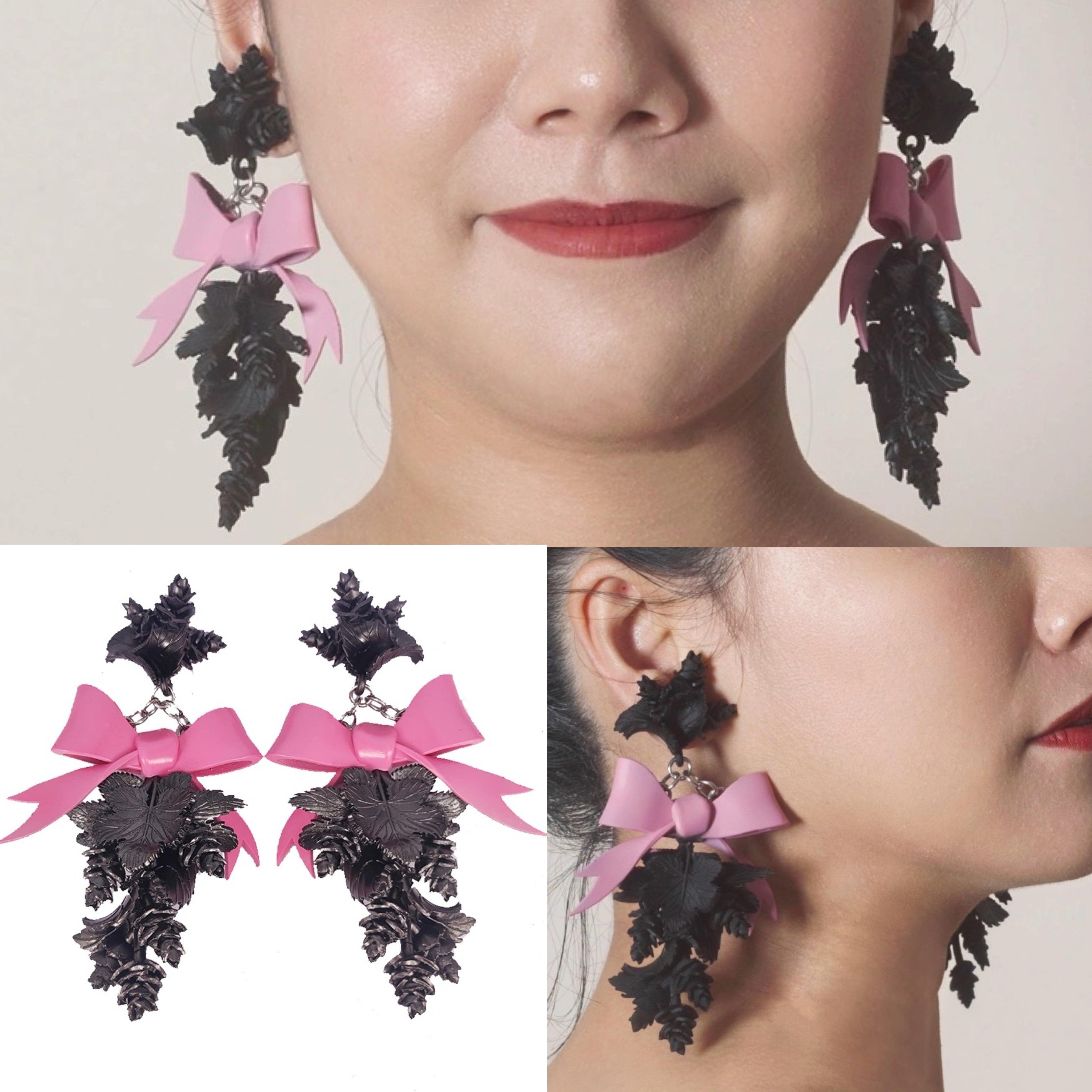 黒 ゆらゆら ピンク リボン ピアス 可愛い ガーリー アクセサリー