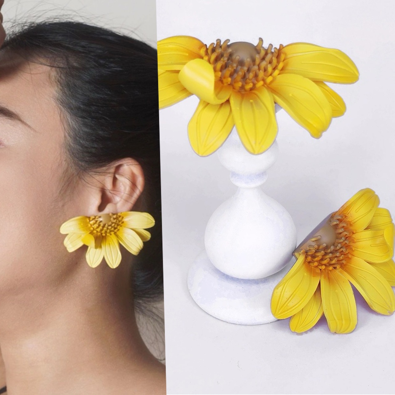 ひまわり オレンジ 花 フラワー 黄色 アクセ アクセサリー ピアス