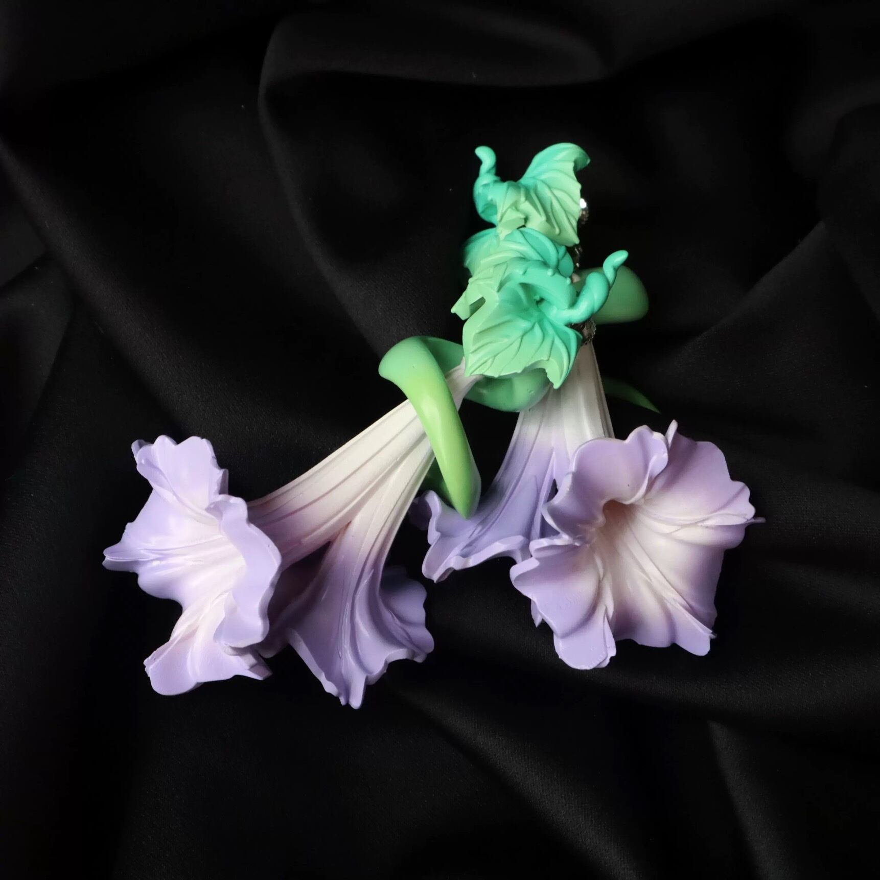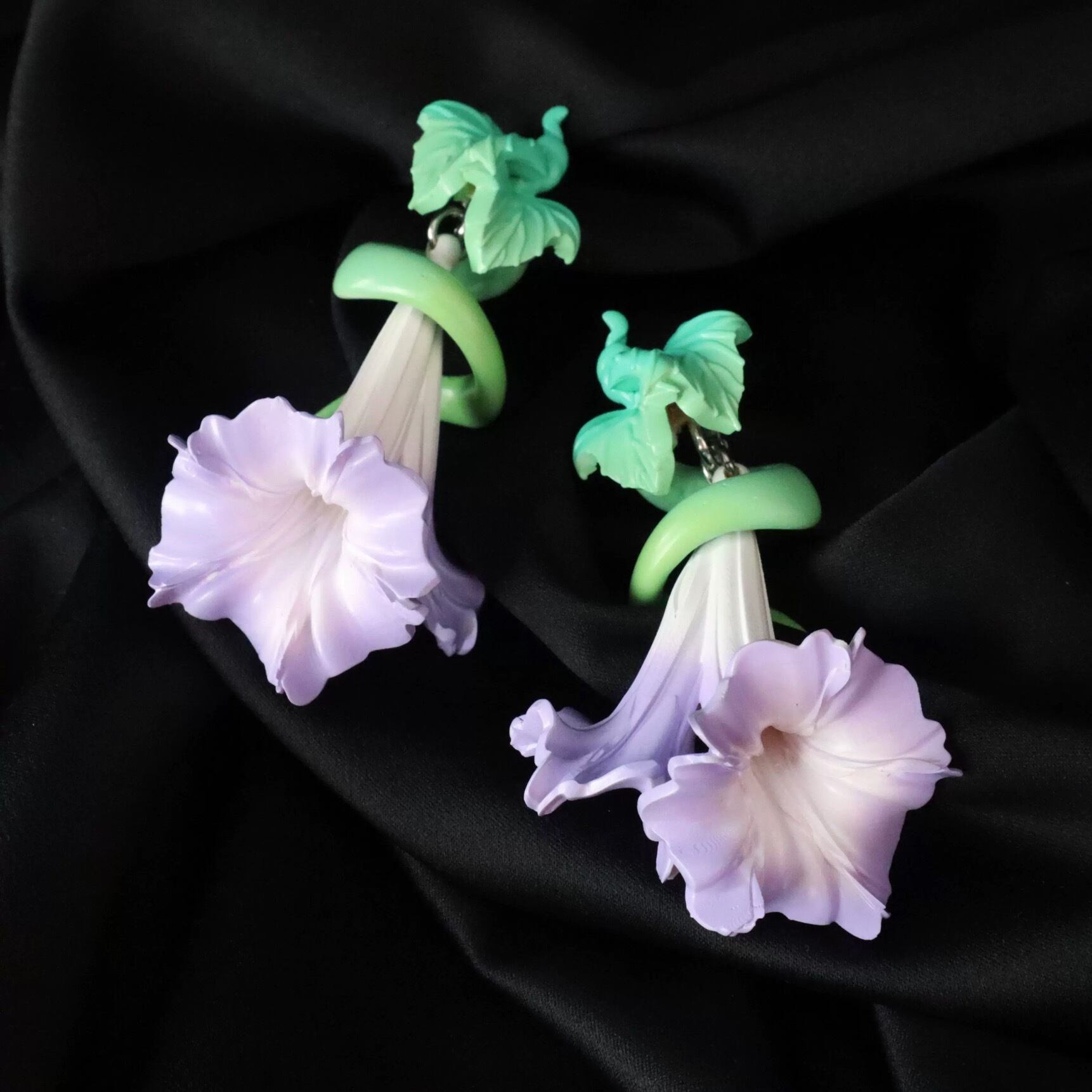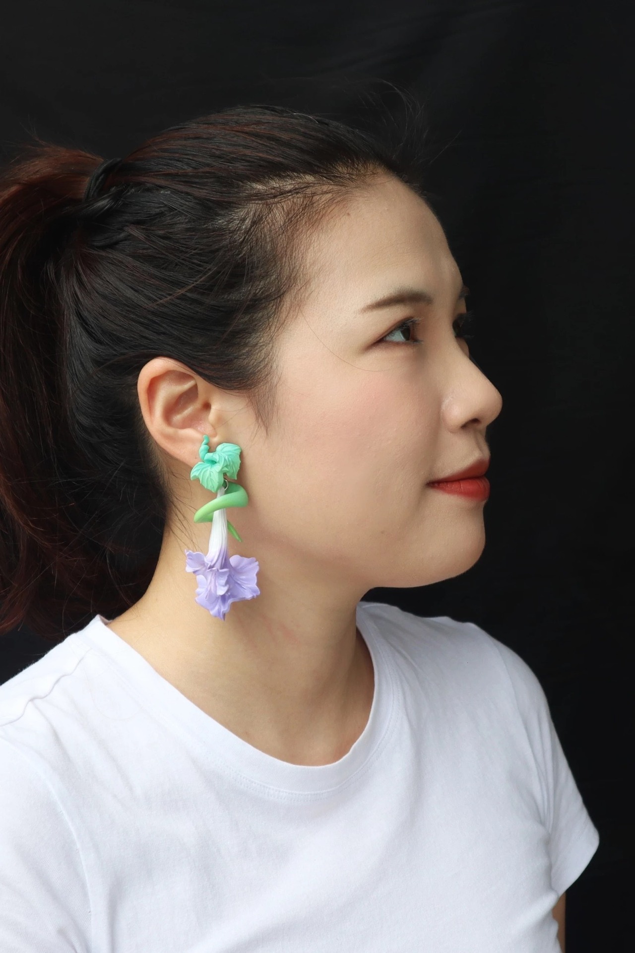 紫 花 フラワー 緑 ピアス アクセサリー ゆらゆら