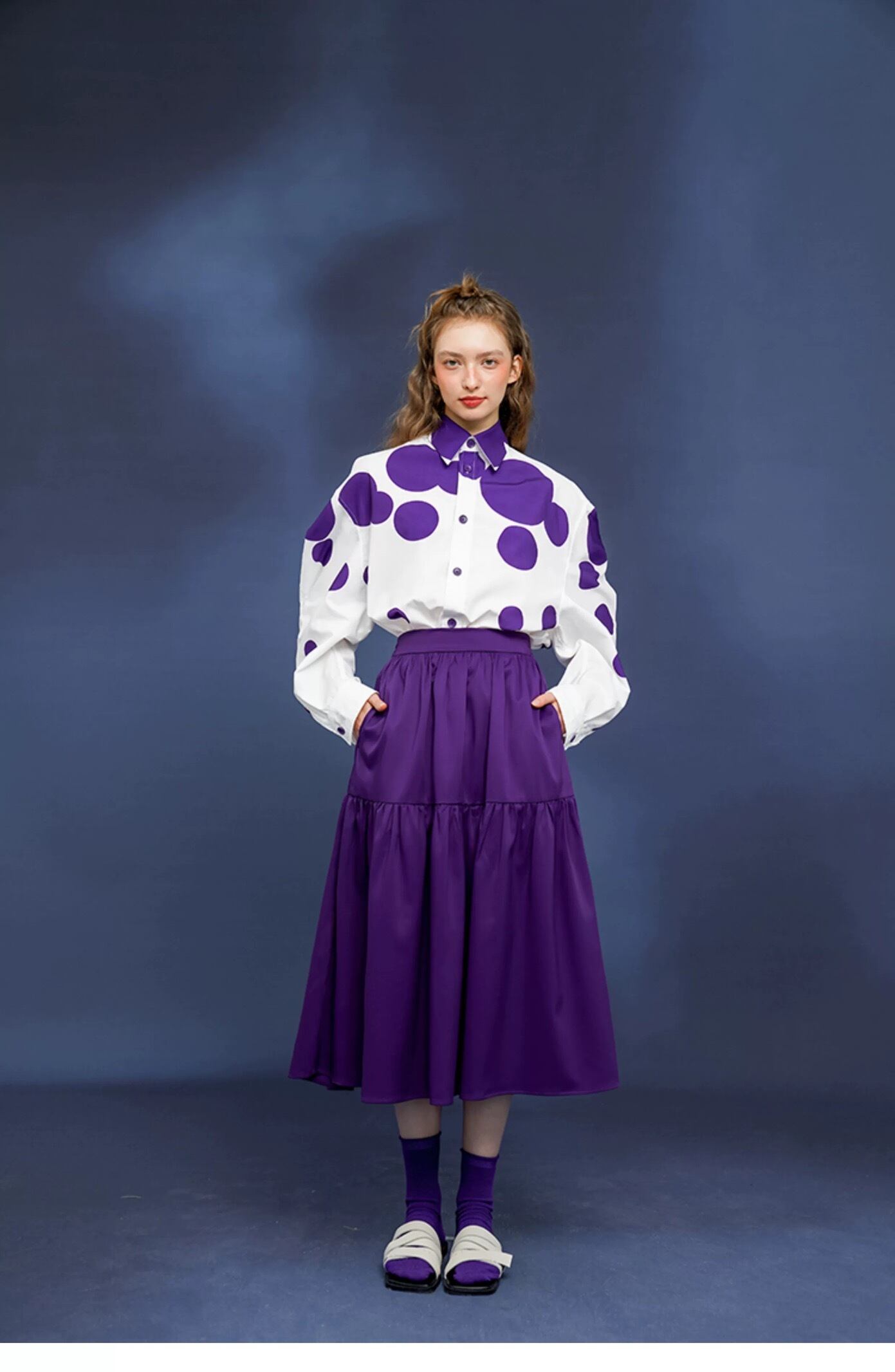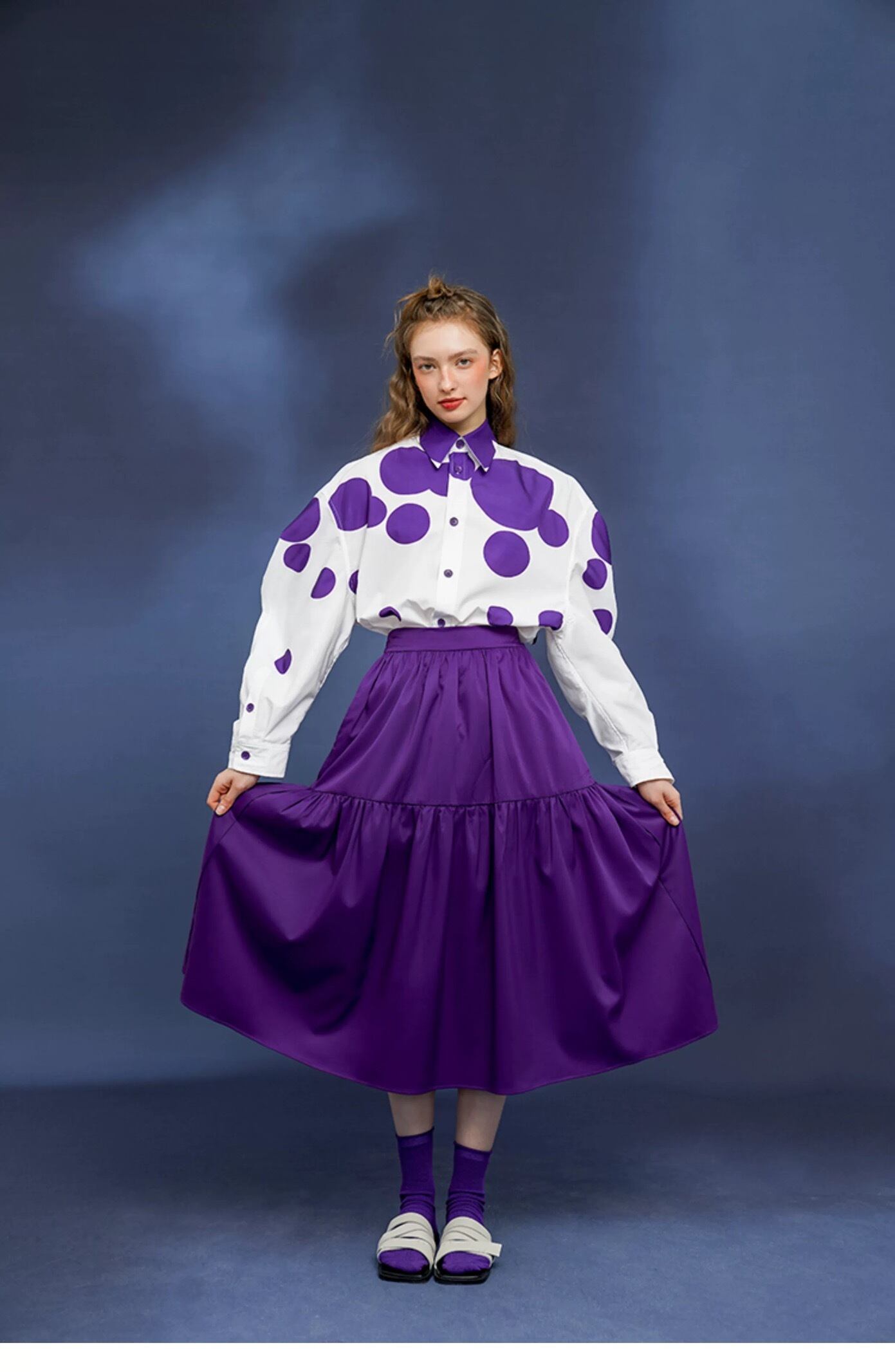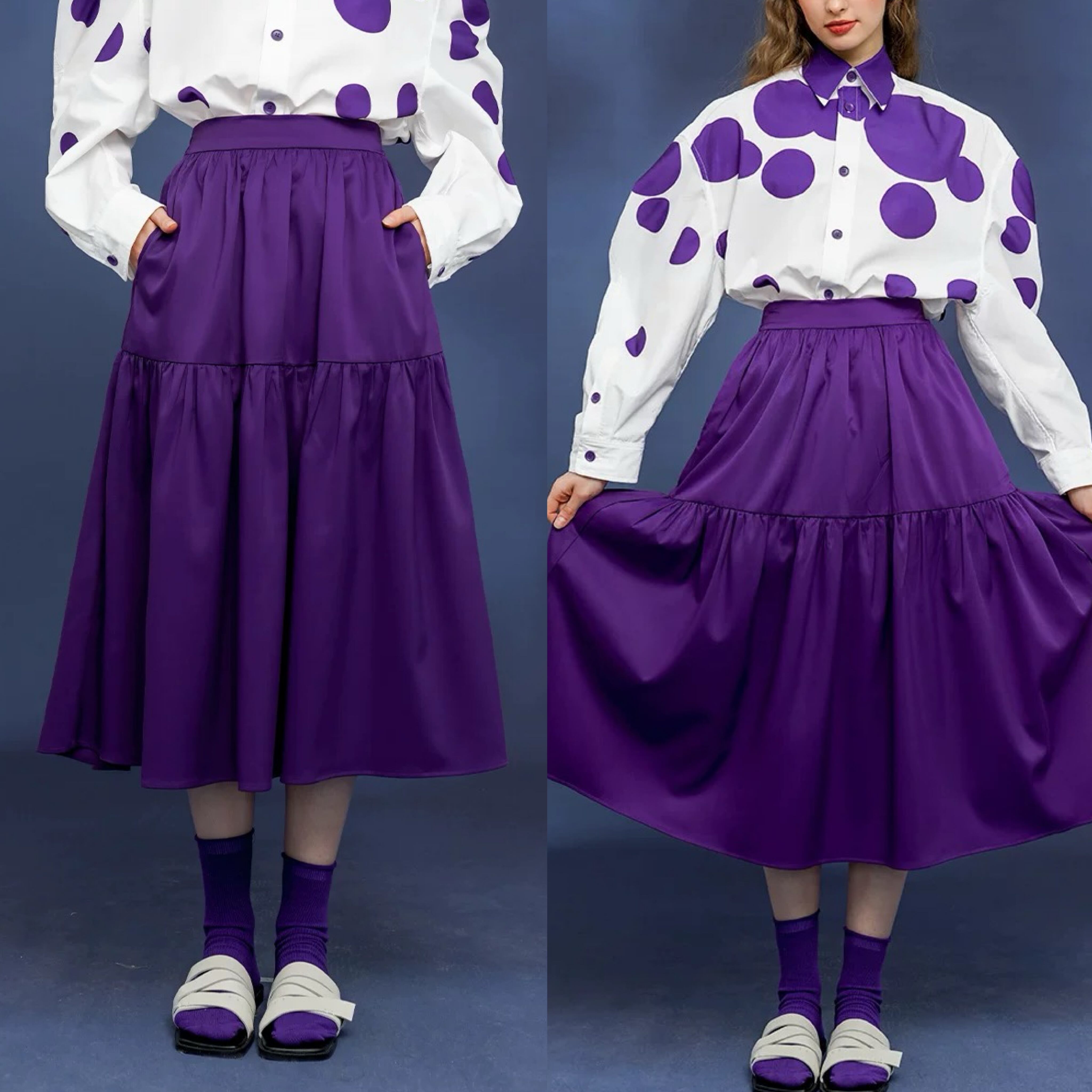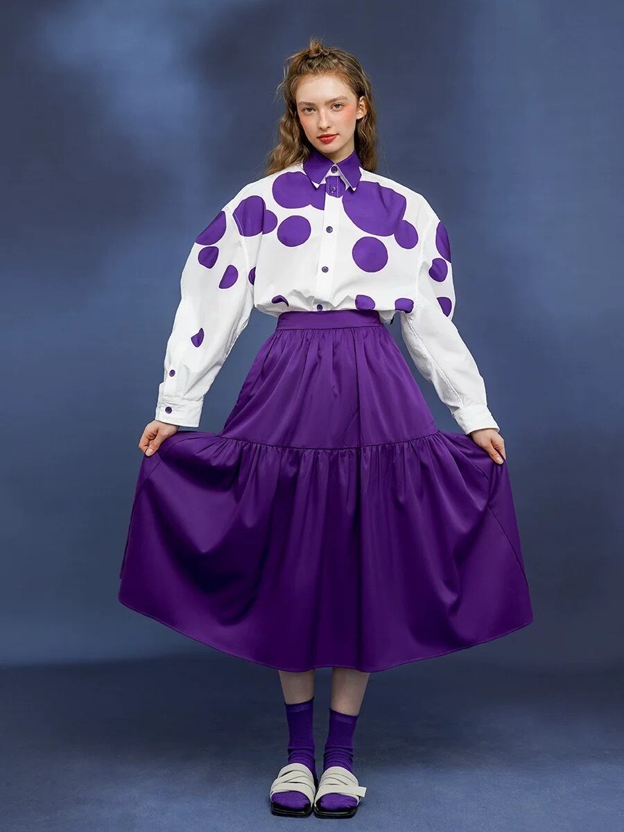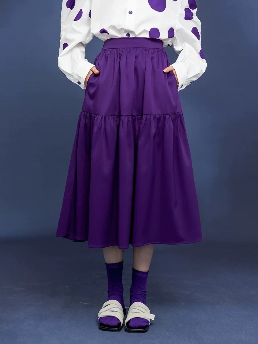 紫 フレア スカート カジュアル シンプル ぶどう パープル