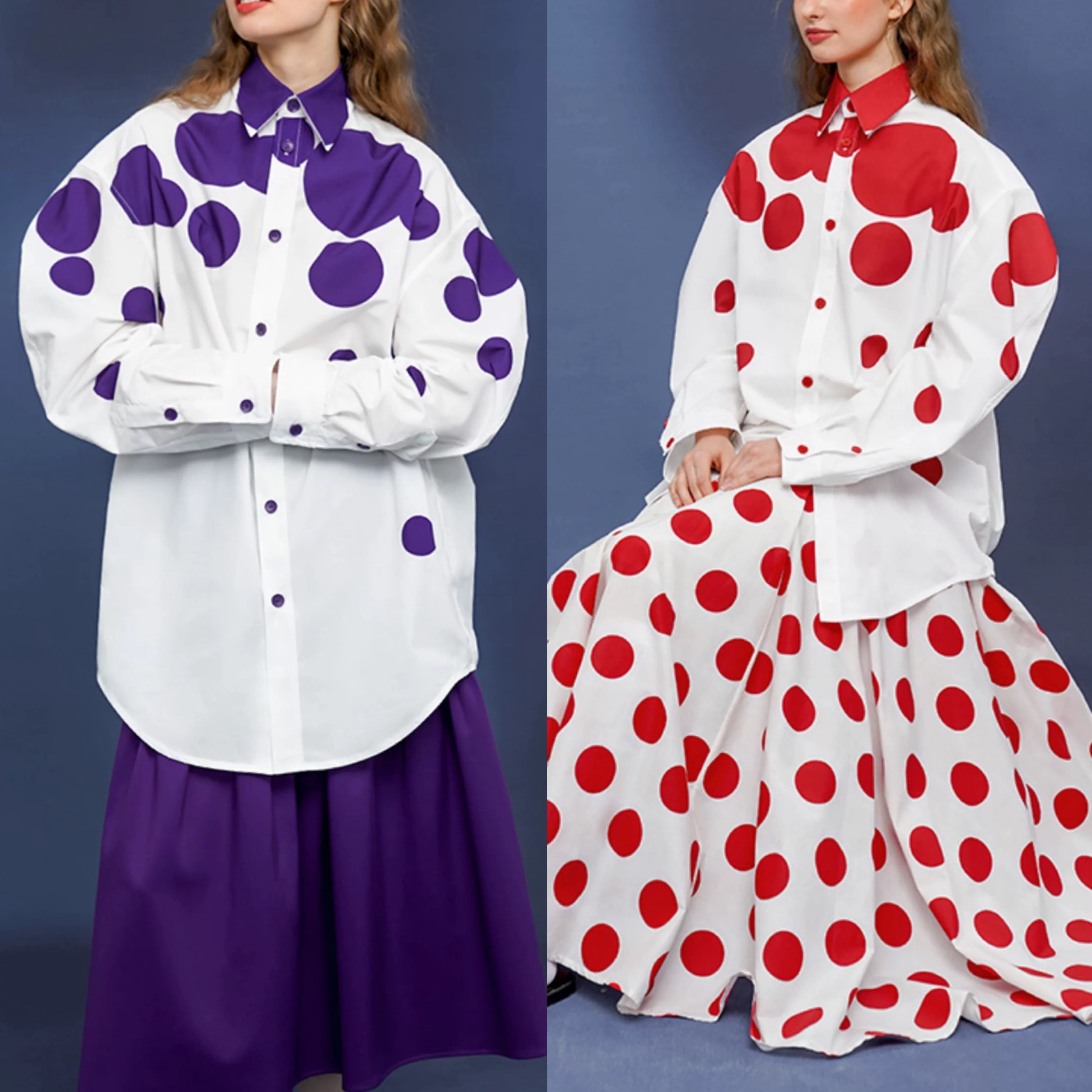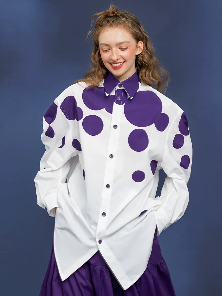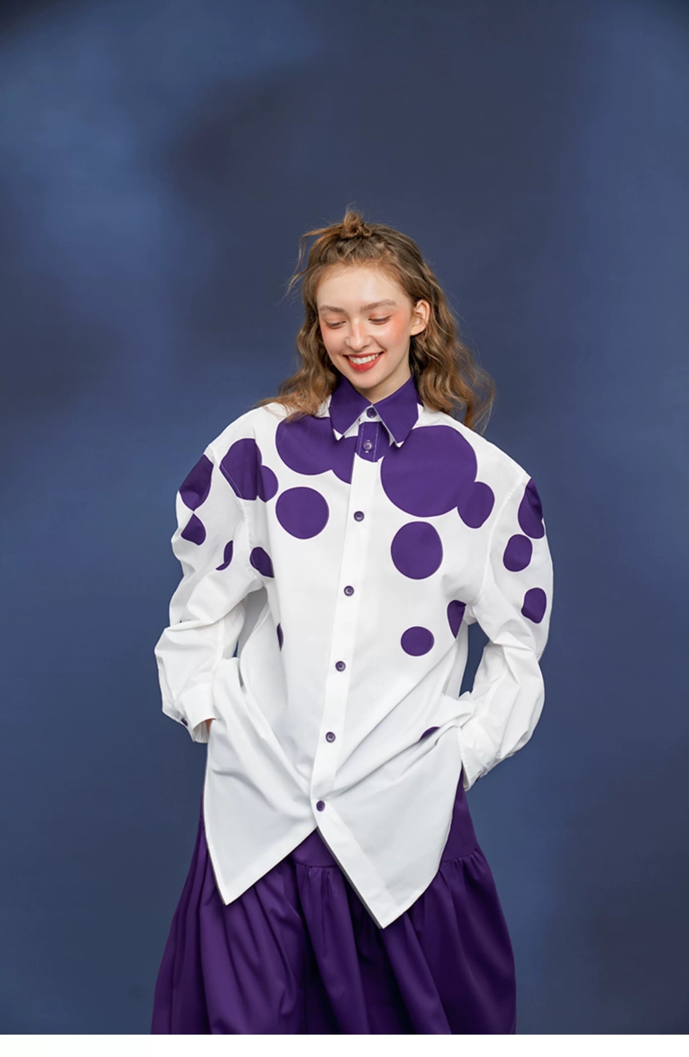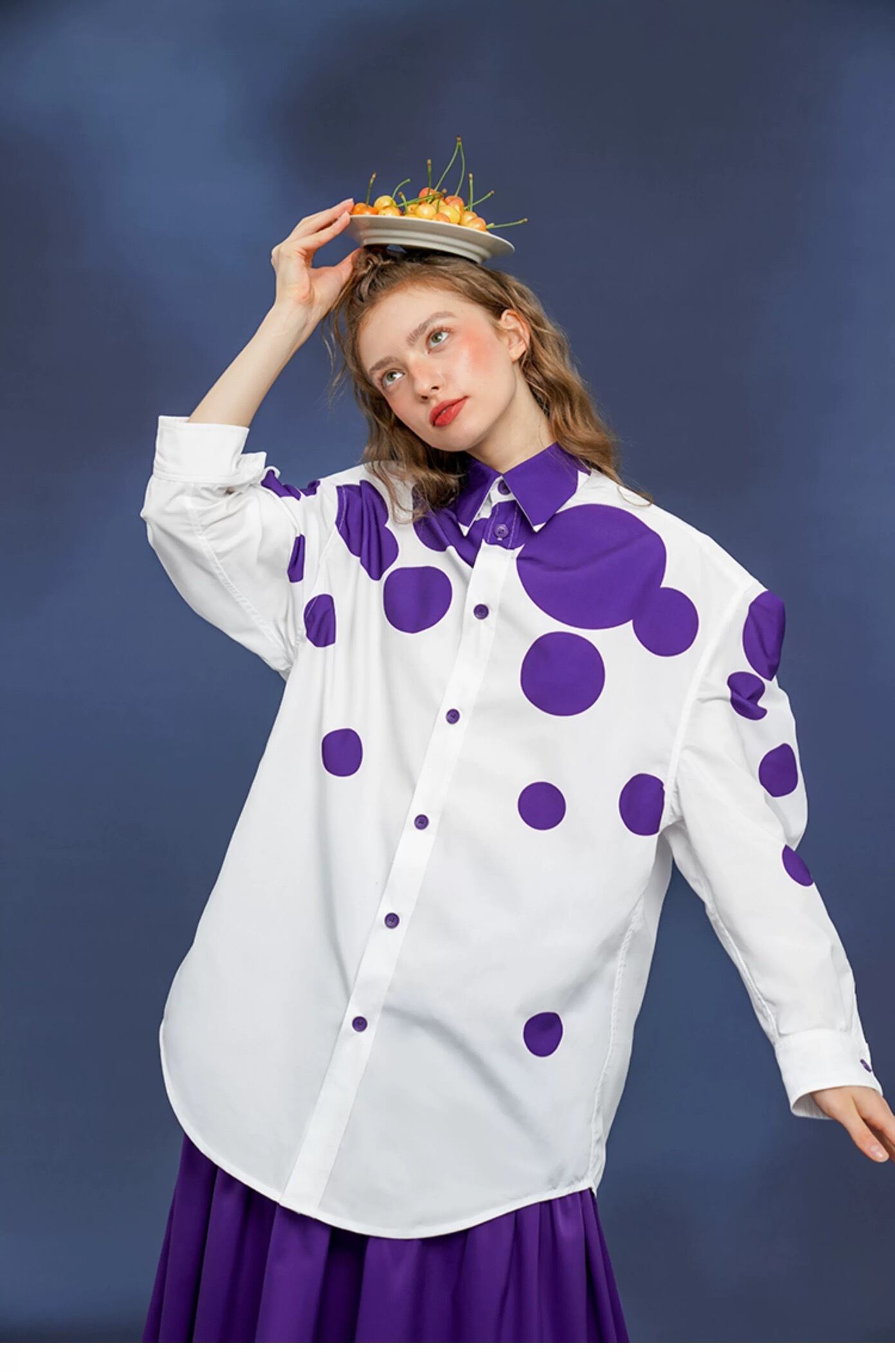 紫 赤 水玉 ドット ブラウス シャツ トップス ガーリー 白 ゆったり