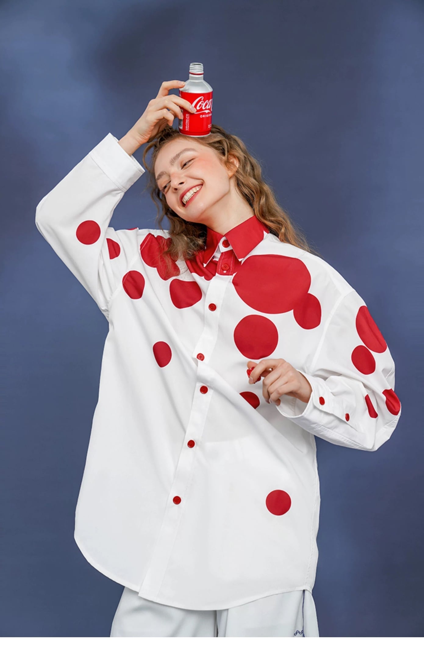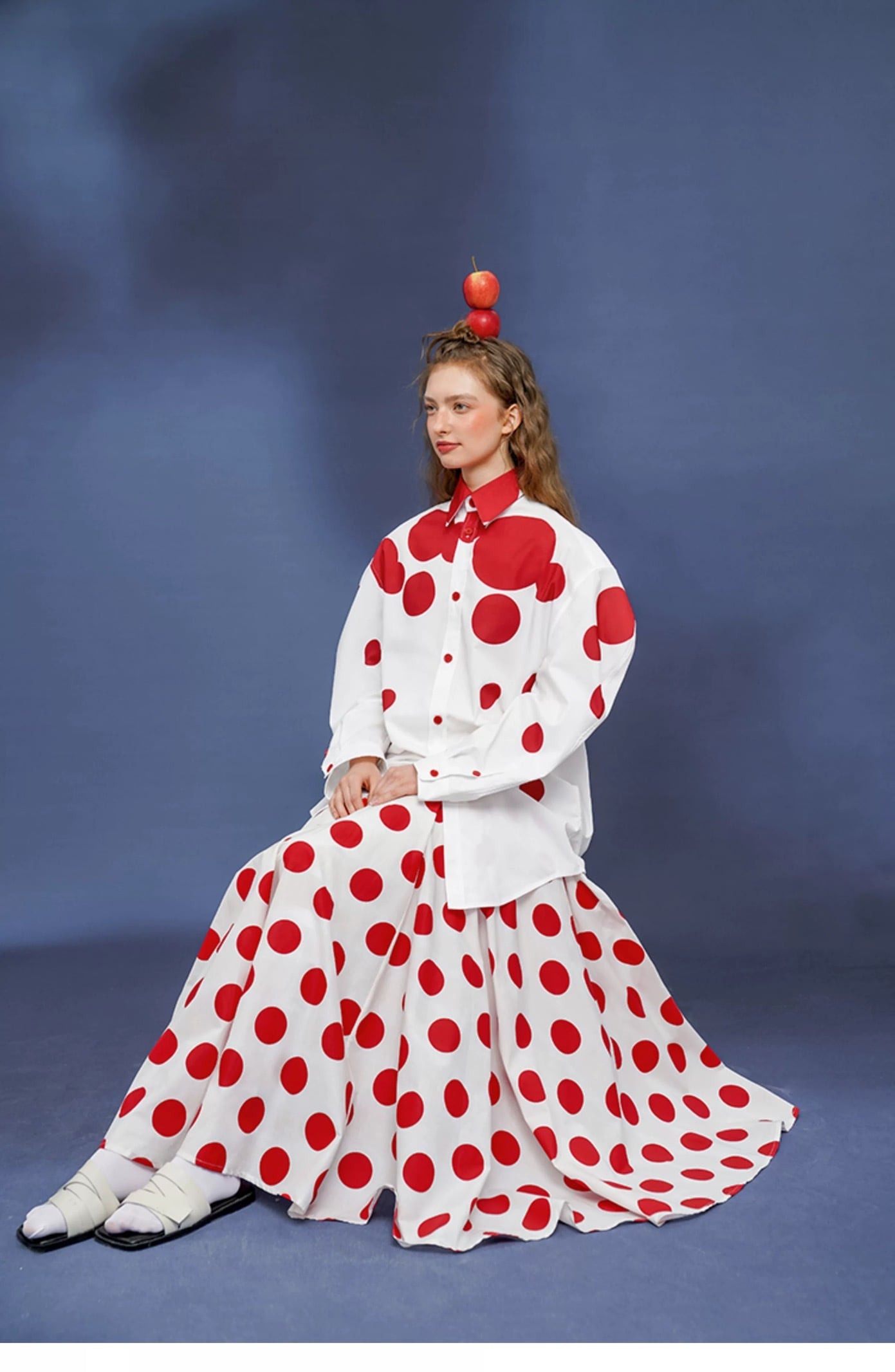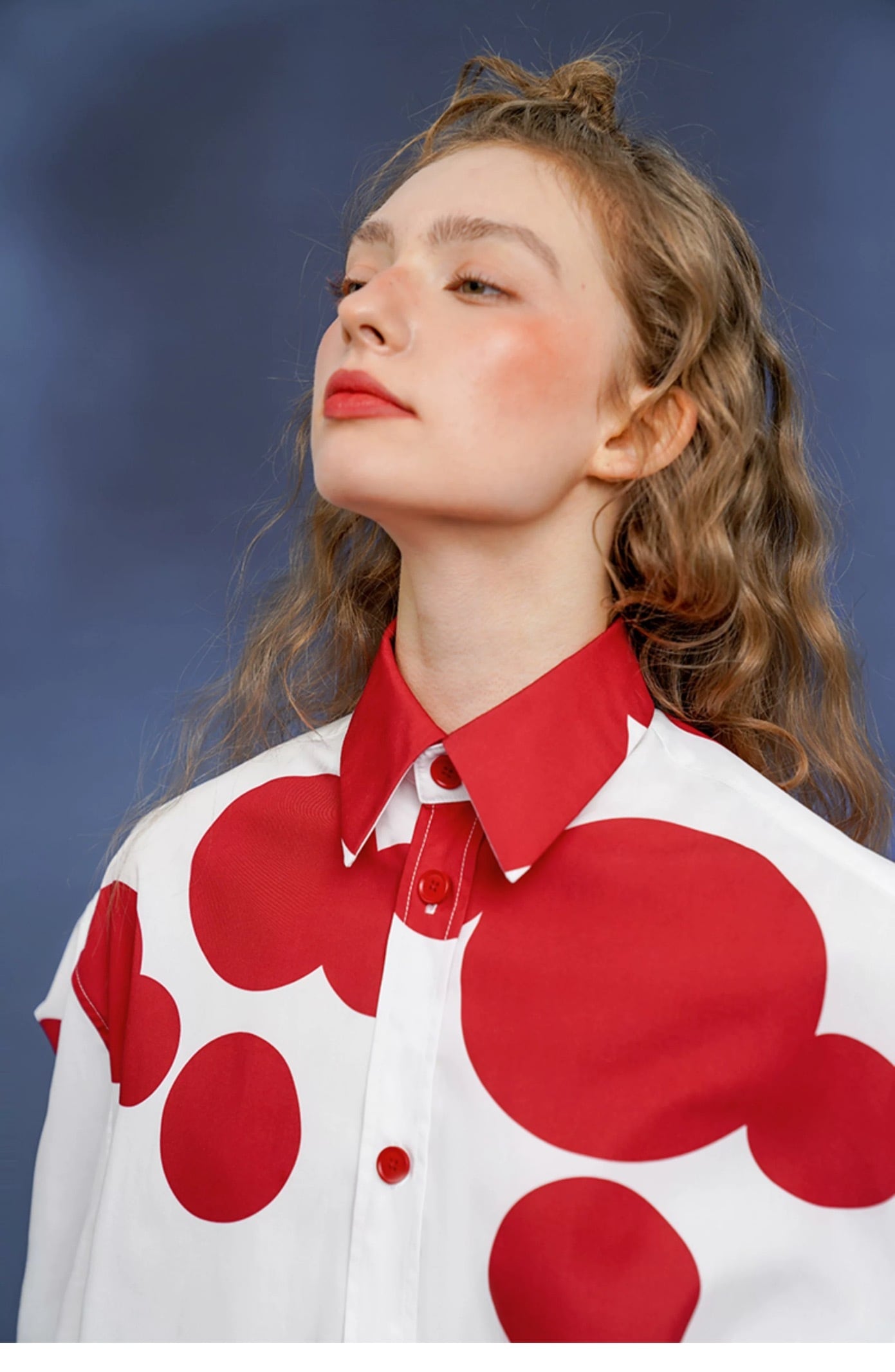 紫 赤 水玉 ドット ブラウス シャツ トップス ガーリー 白 ゆったり