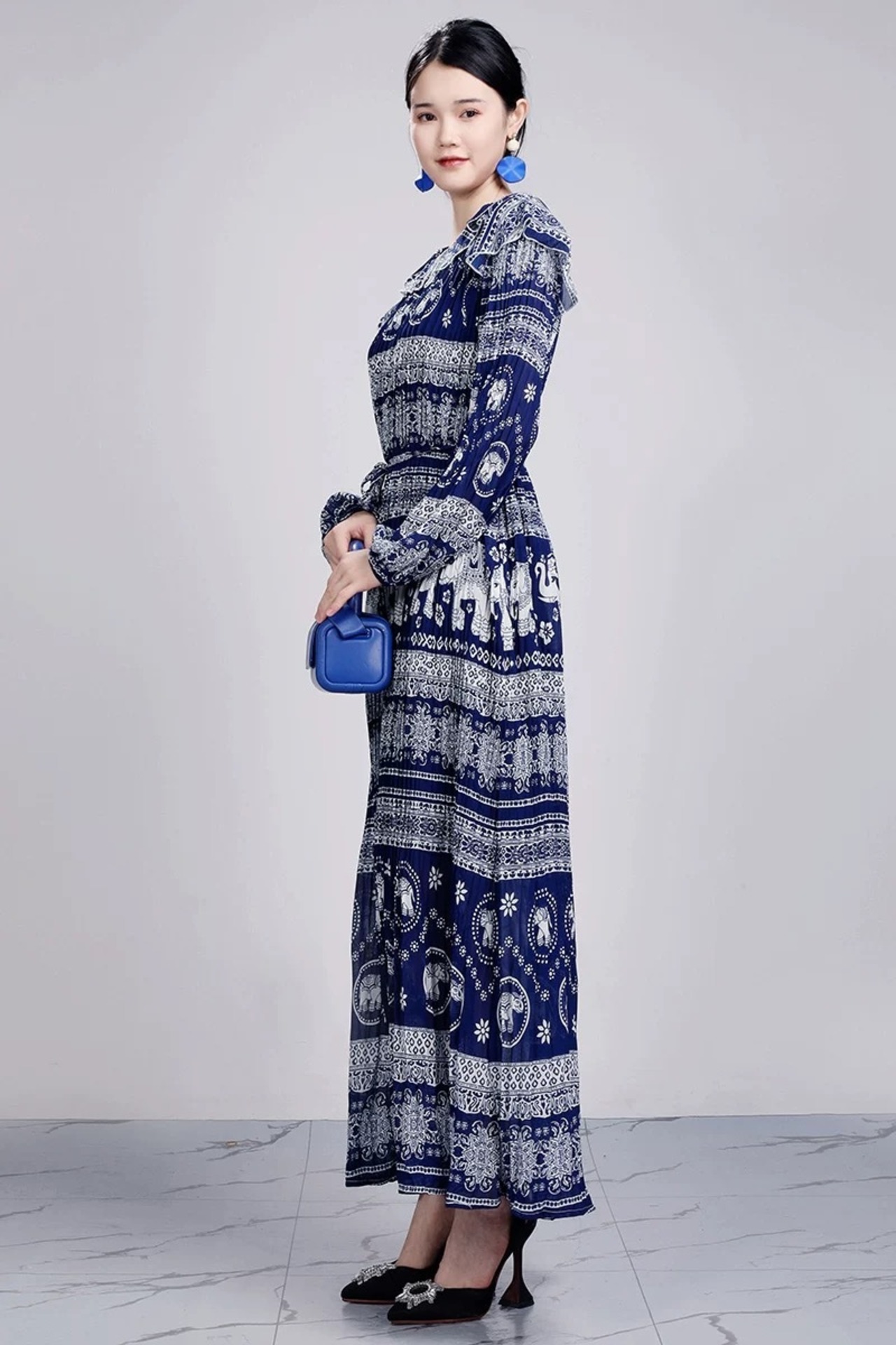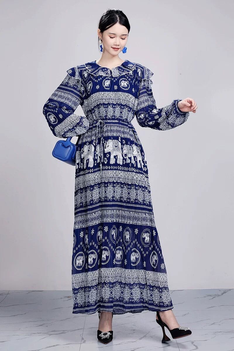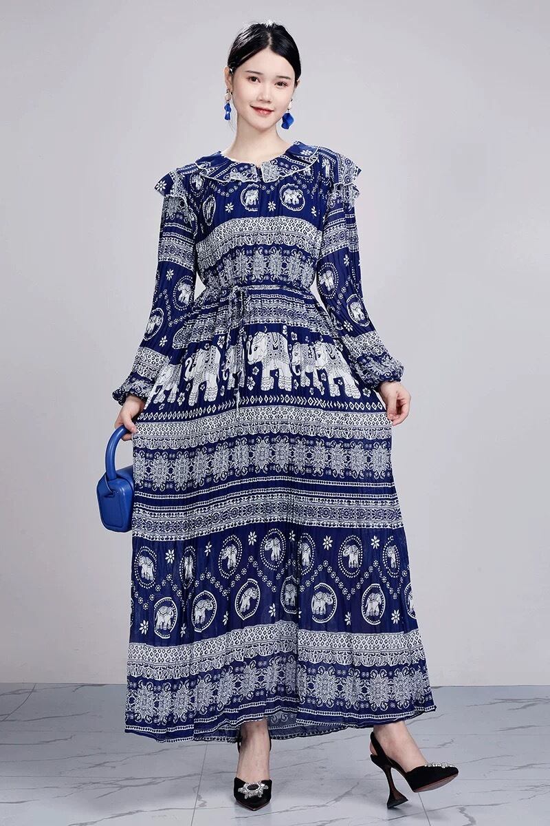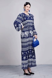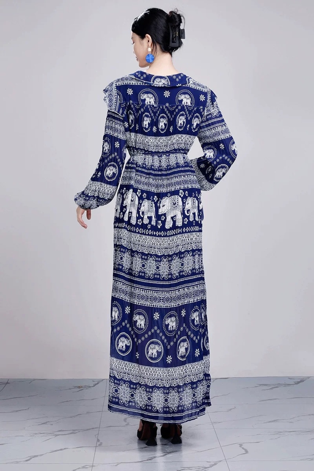 赤 ネイビー アジアン エスニック ワンピース ゆったり ブラウス ぞう 花柄 フラワー