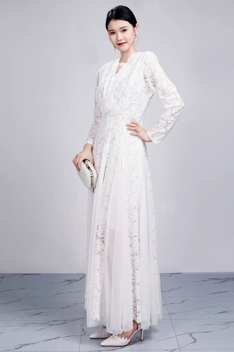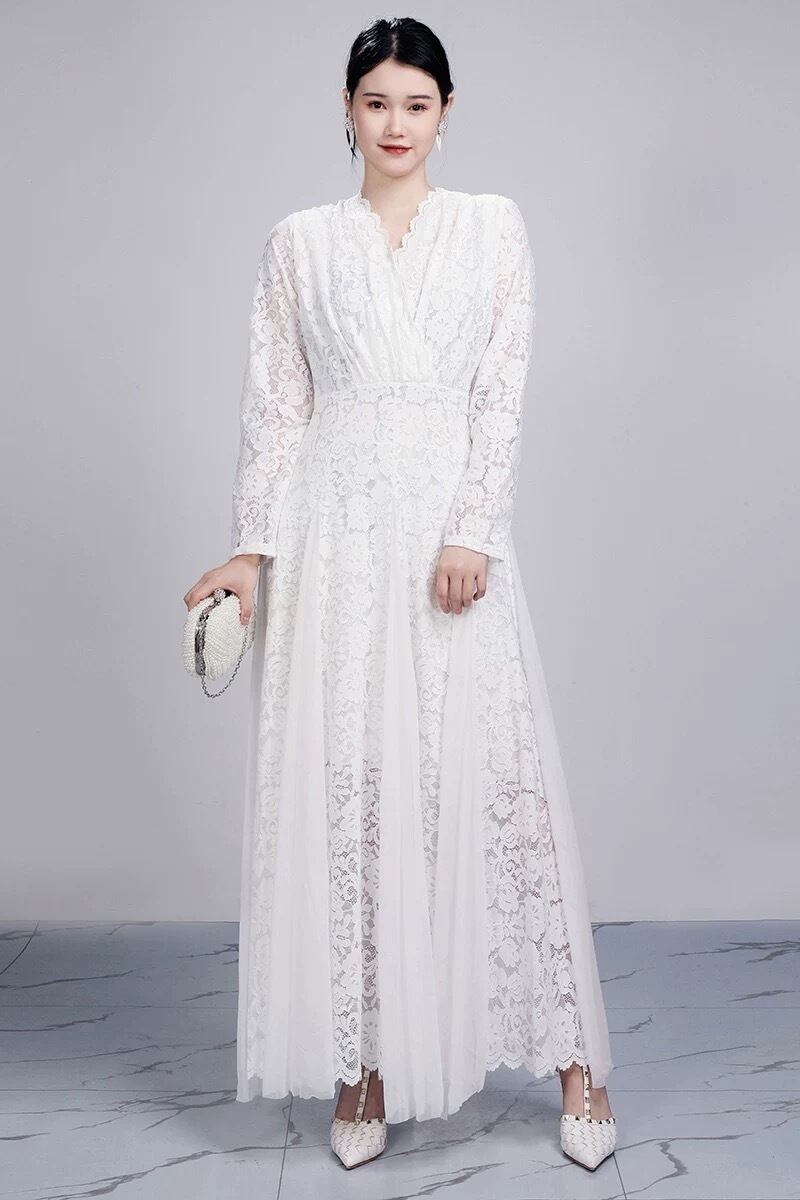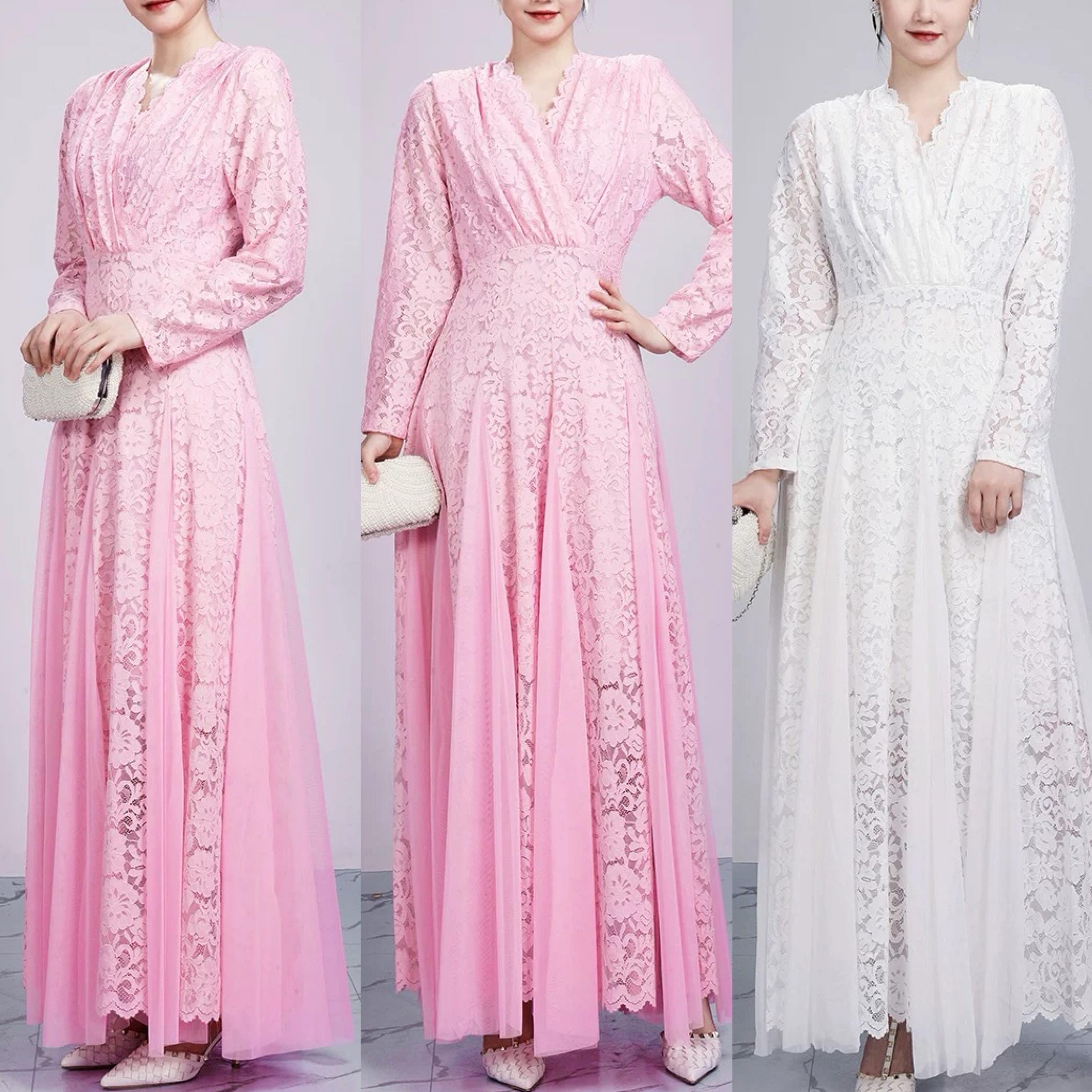 白 ピンク マキシ エレガント ドレス ワンピース ブラウス レース 花柄