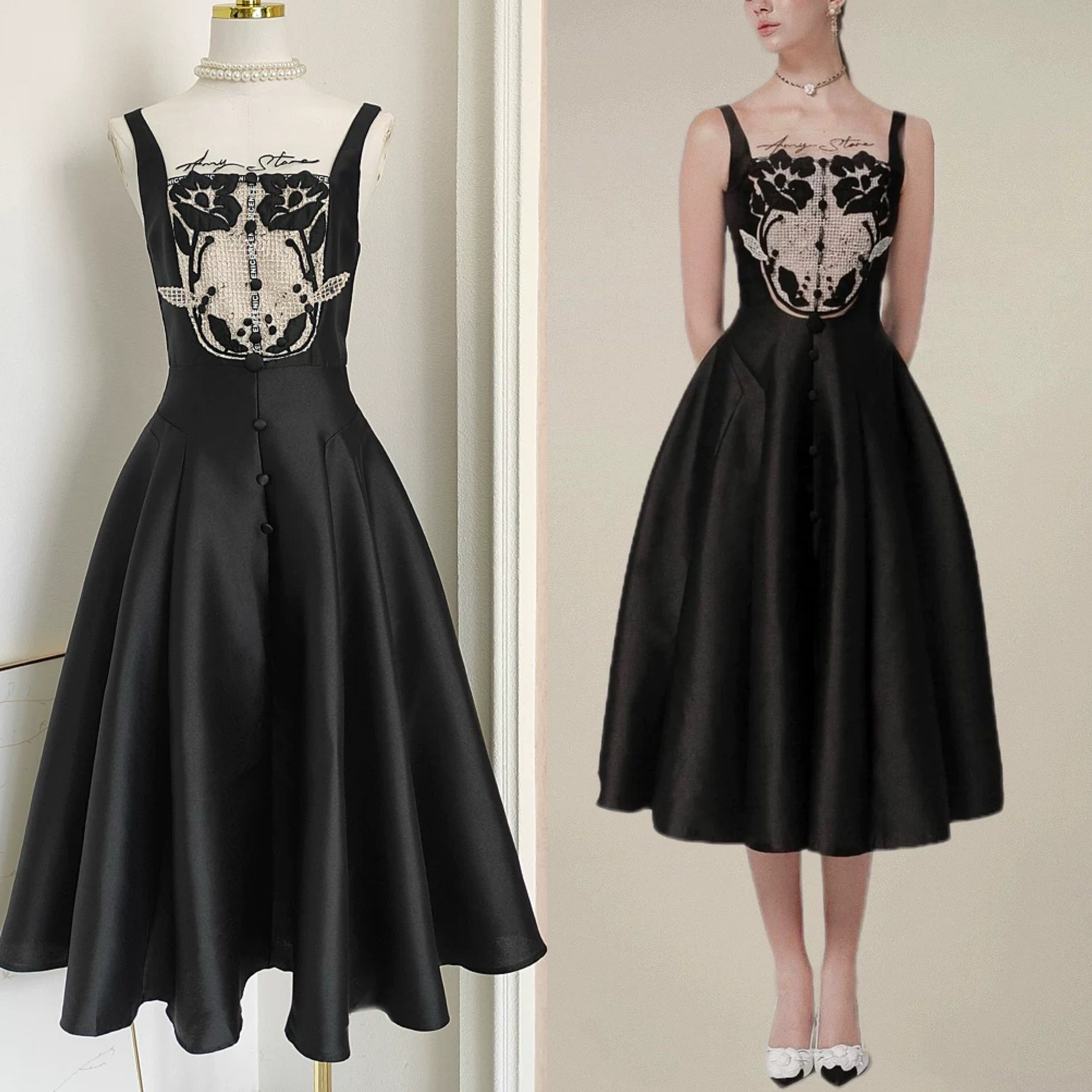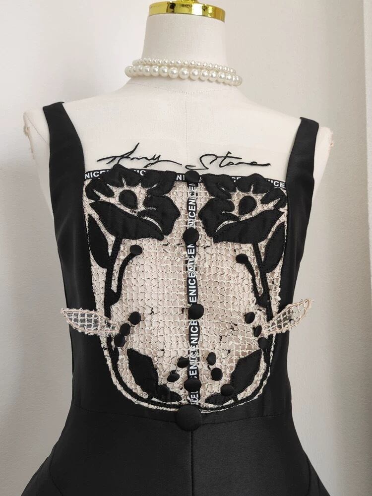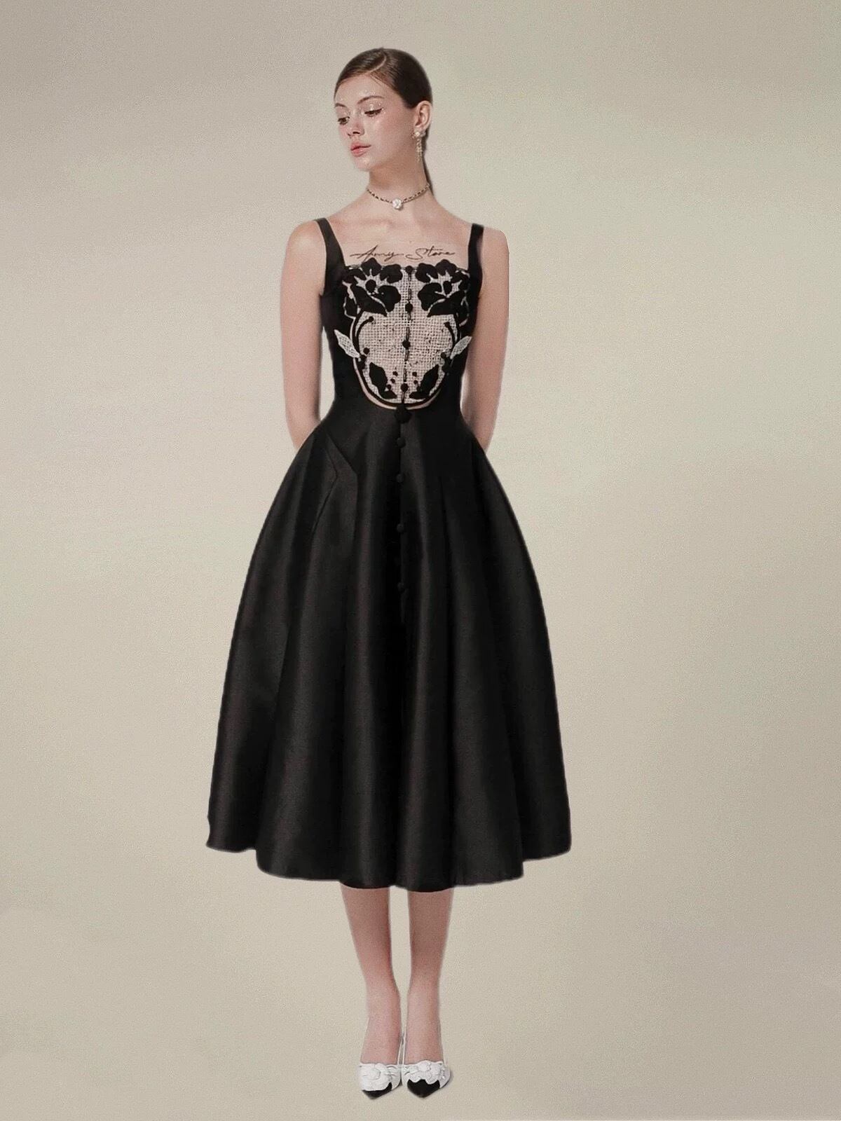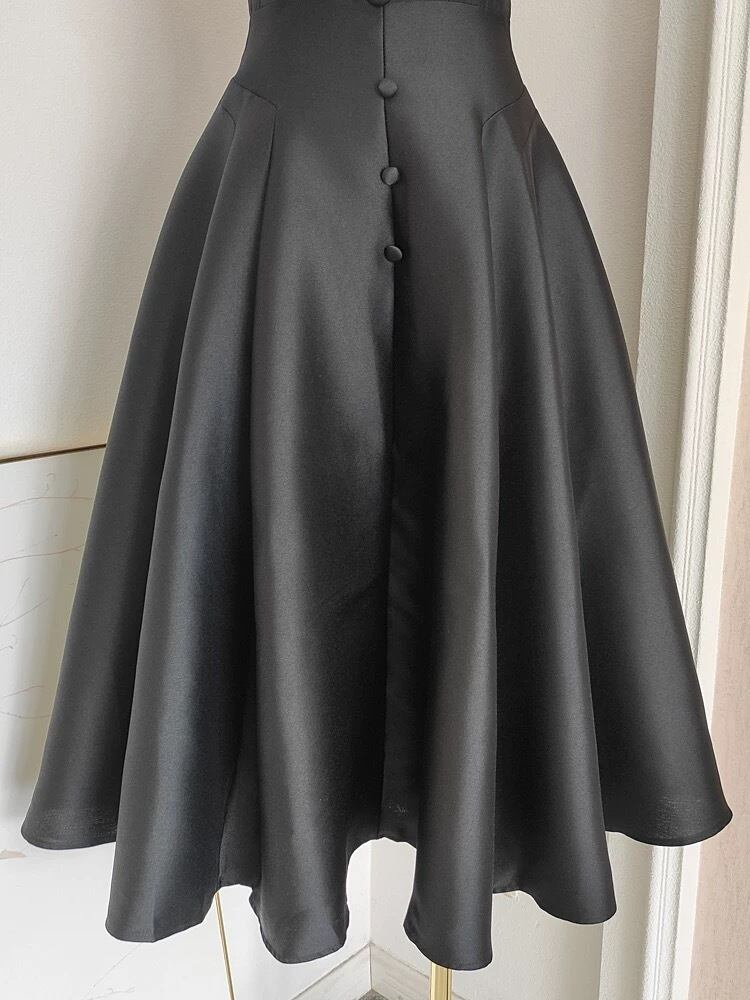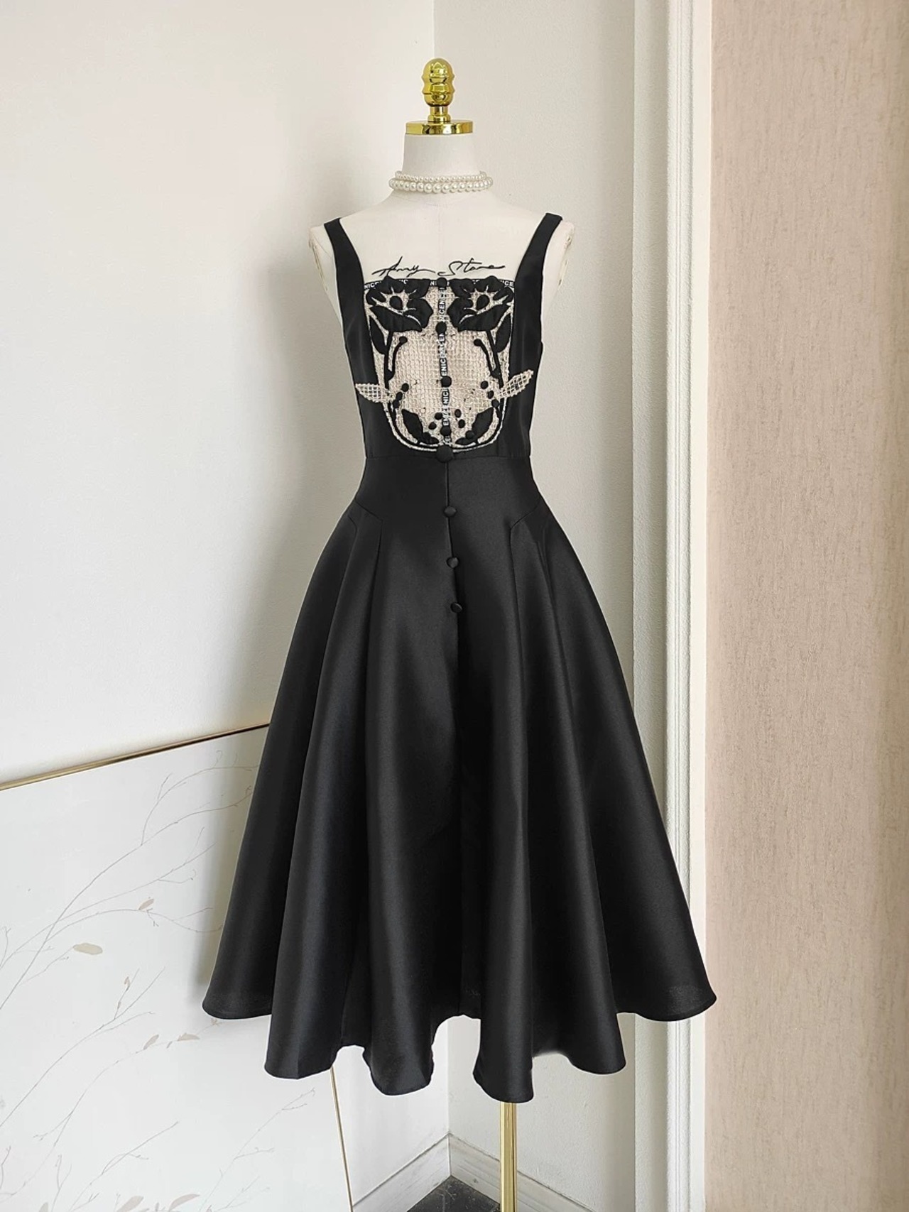 黒 ブラック エレガント ワンピース リボン 可愛い フレア お嬢様