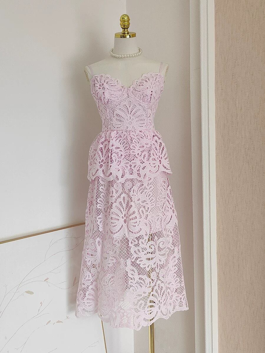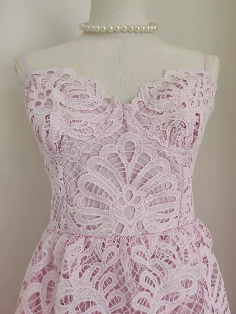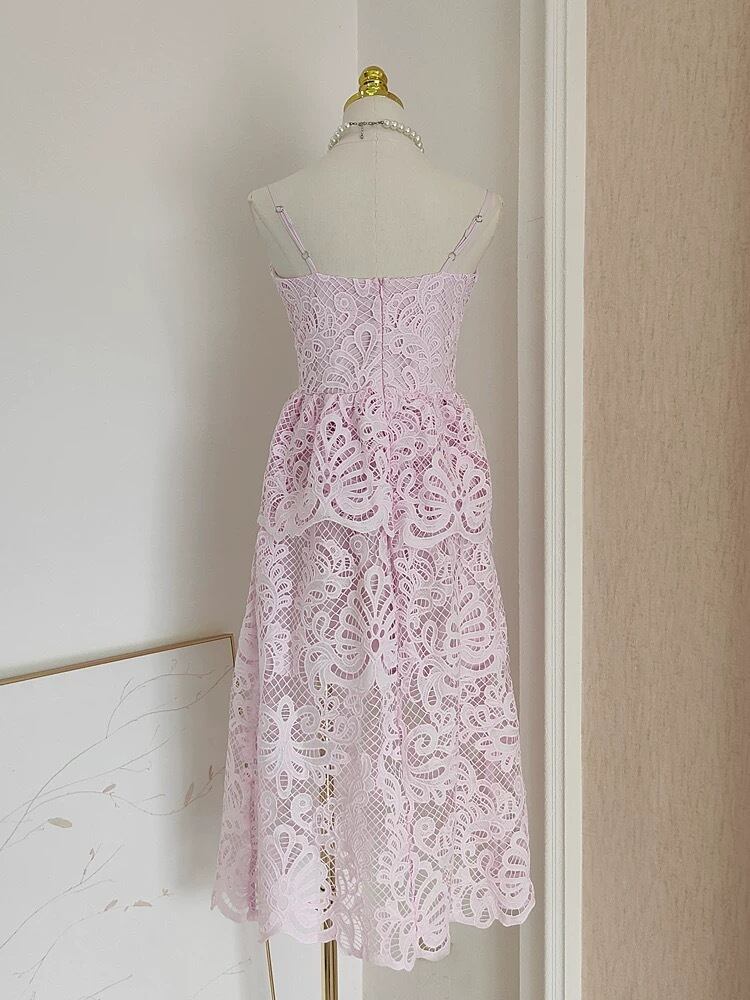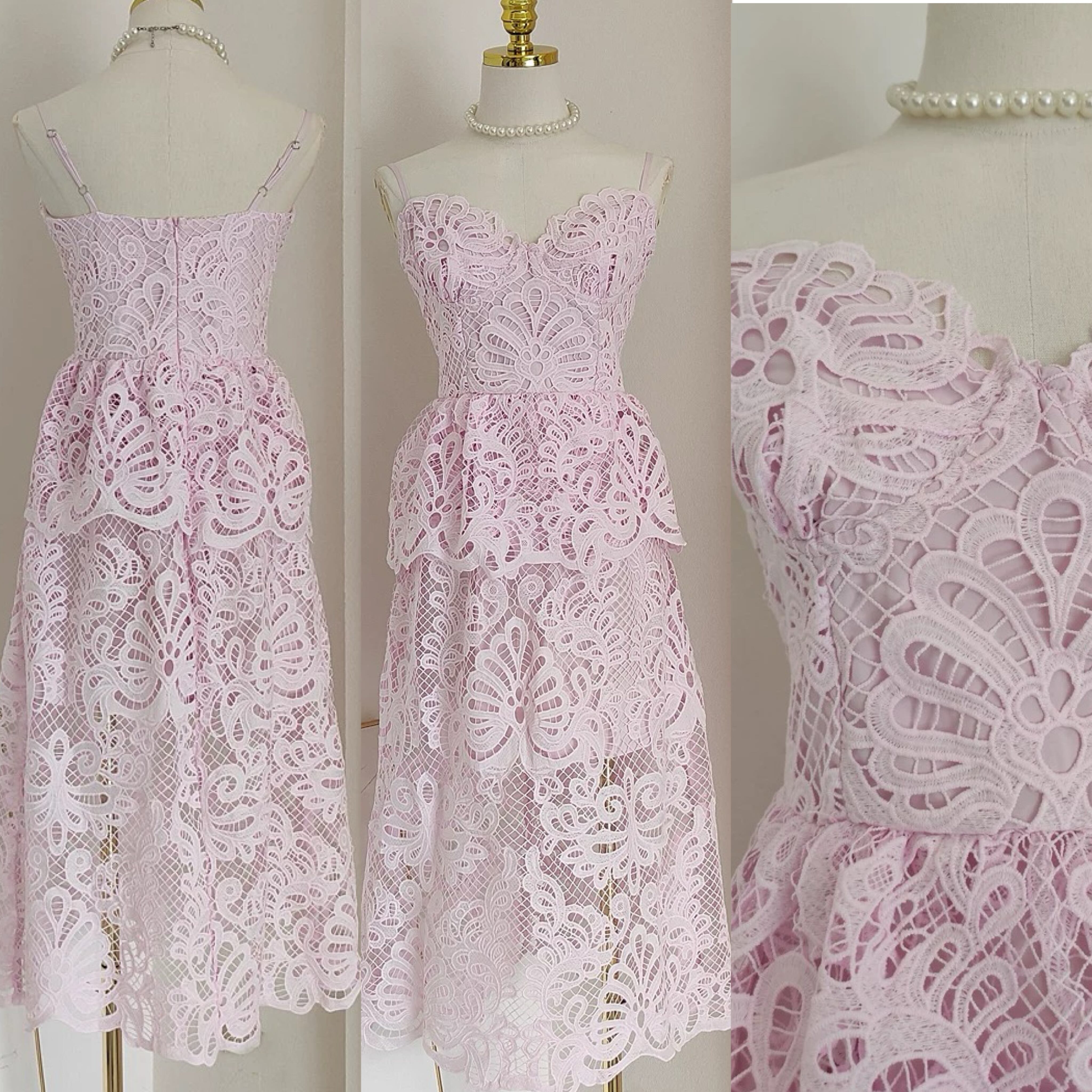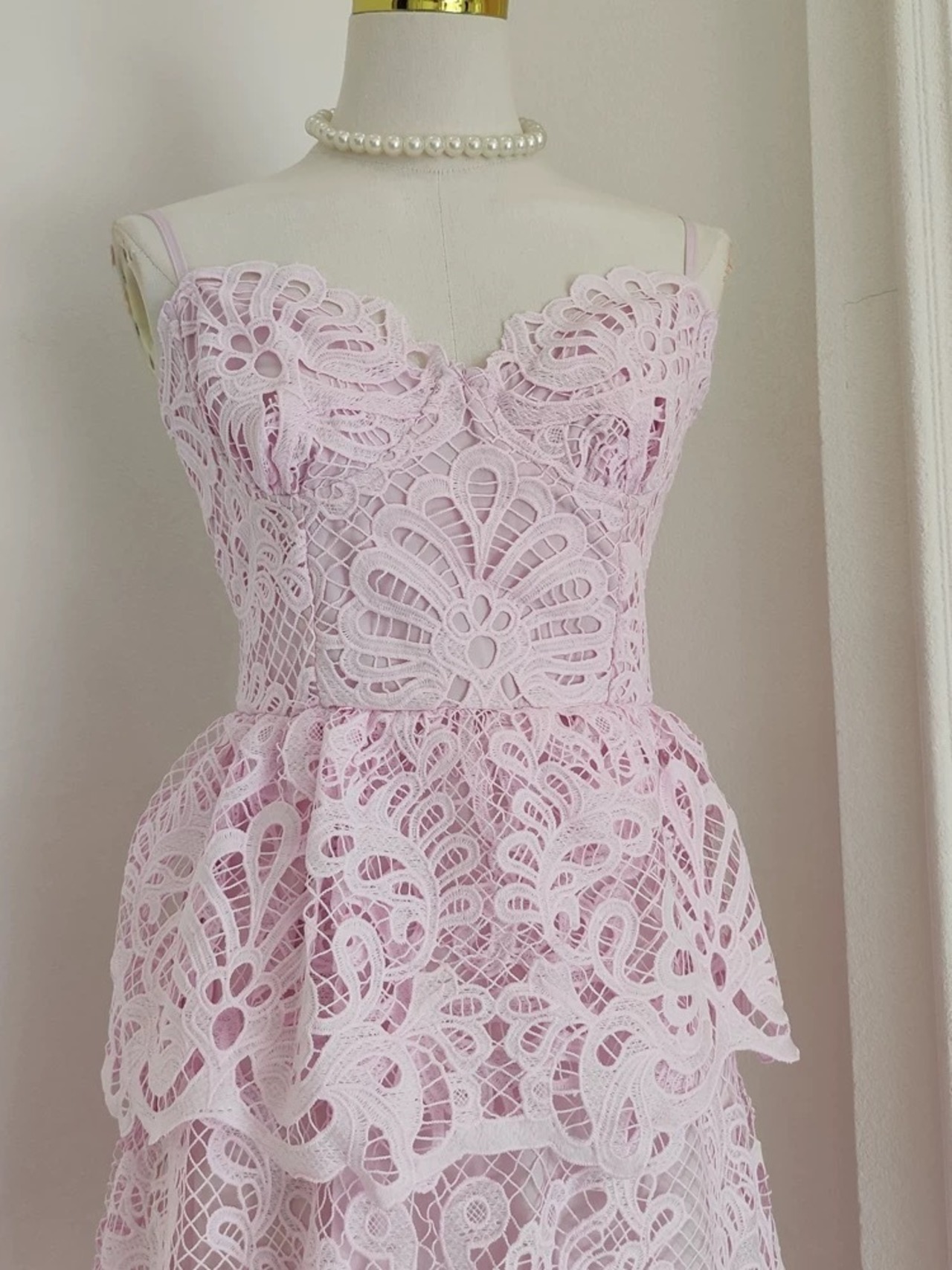 ピンク レース キャミソール 花柄 ワンピース エレガント