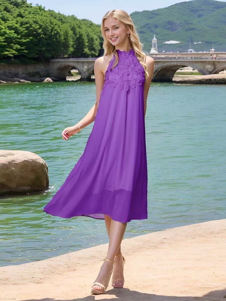 【2XLまで】花柄 黒 ら フラワー ブラウス リボン 赤 エレガント ドレス ワ 花柄 フラワー 紫 カメリア ホルダーネック ワンピース
