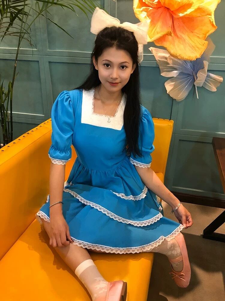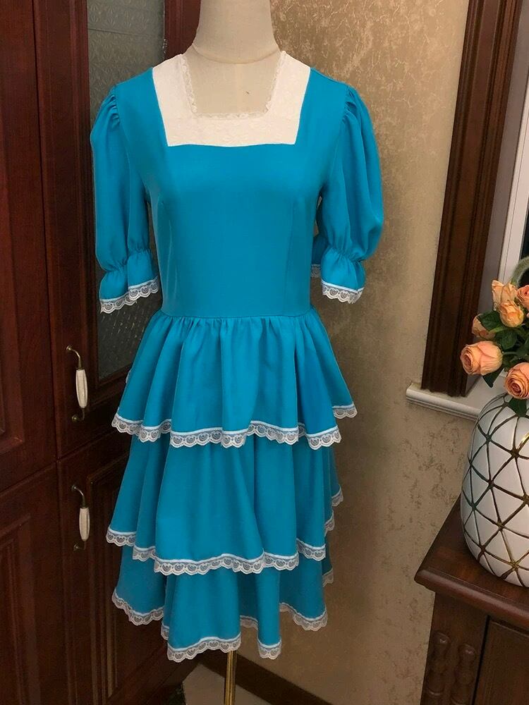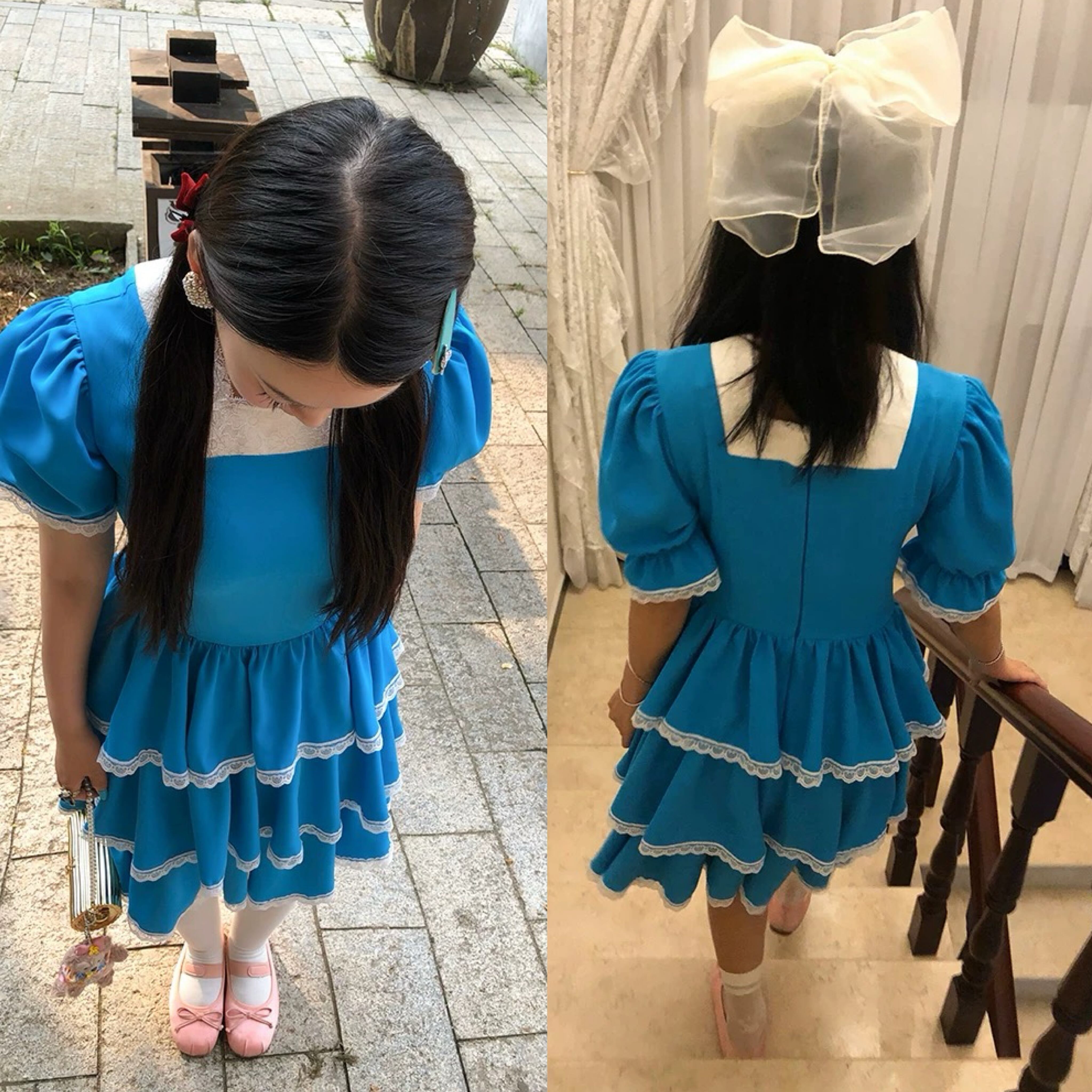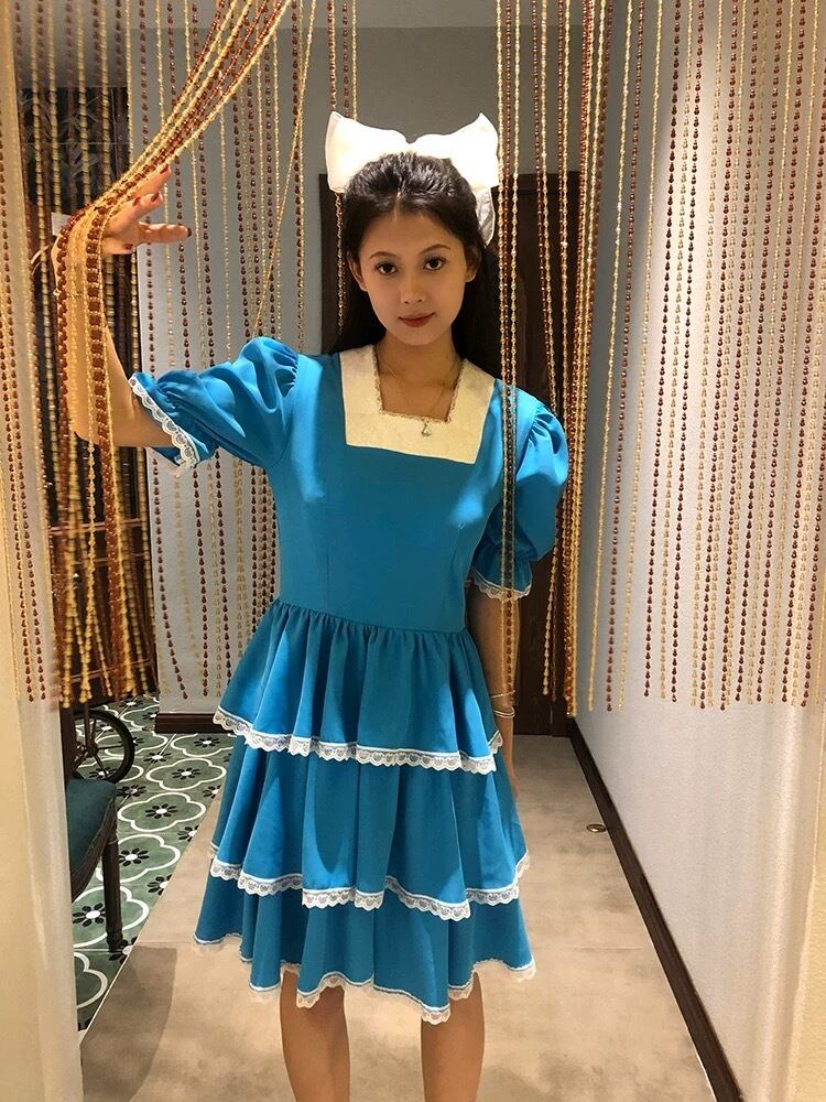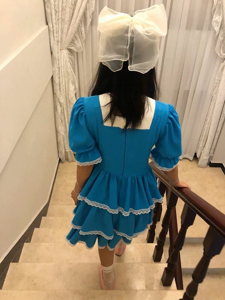 フリル 水色 クラシック レトロ ワンピース xl 原宿 可愛い