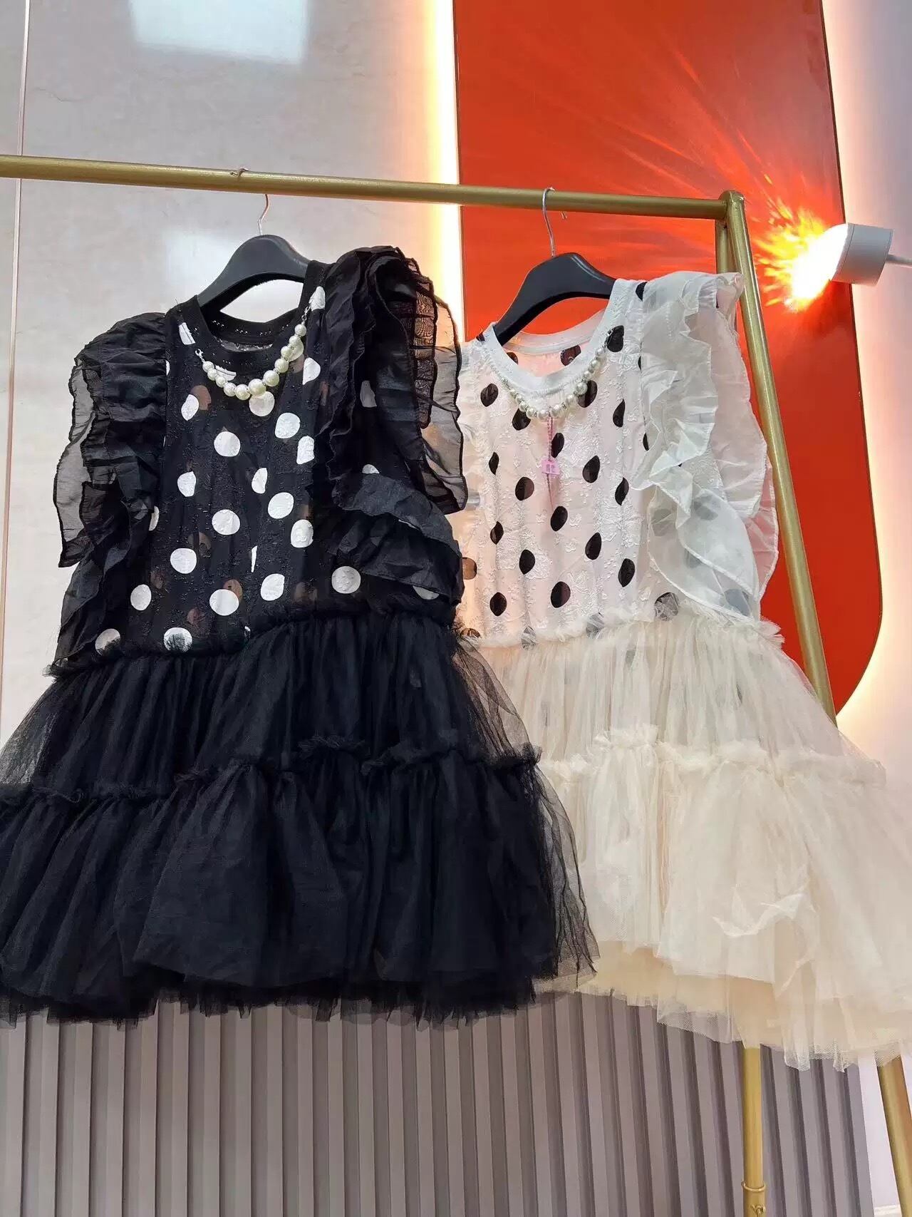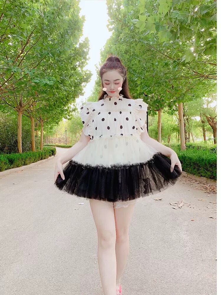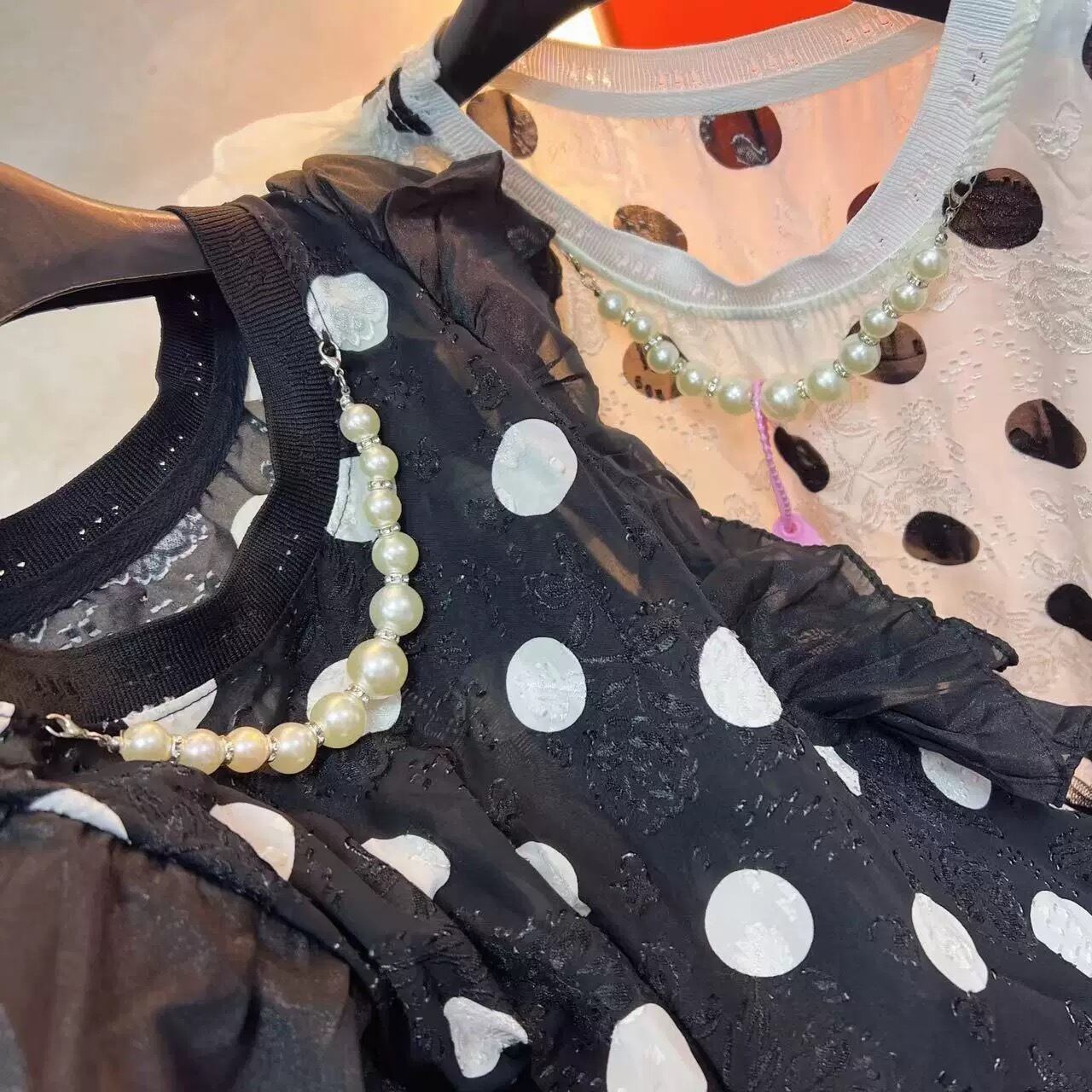 黒 白 ブラウス パールネックレス 水玉 ドット ゆったり ブラウス ワンピース チュニック