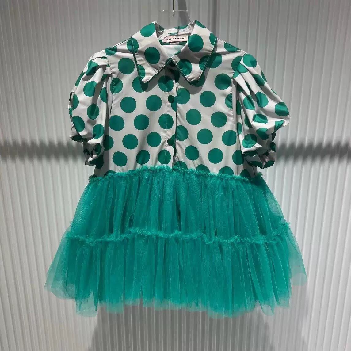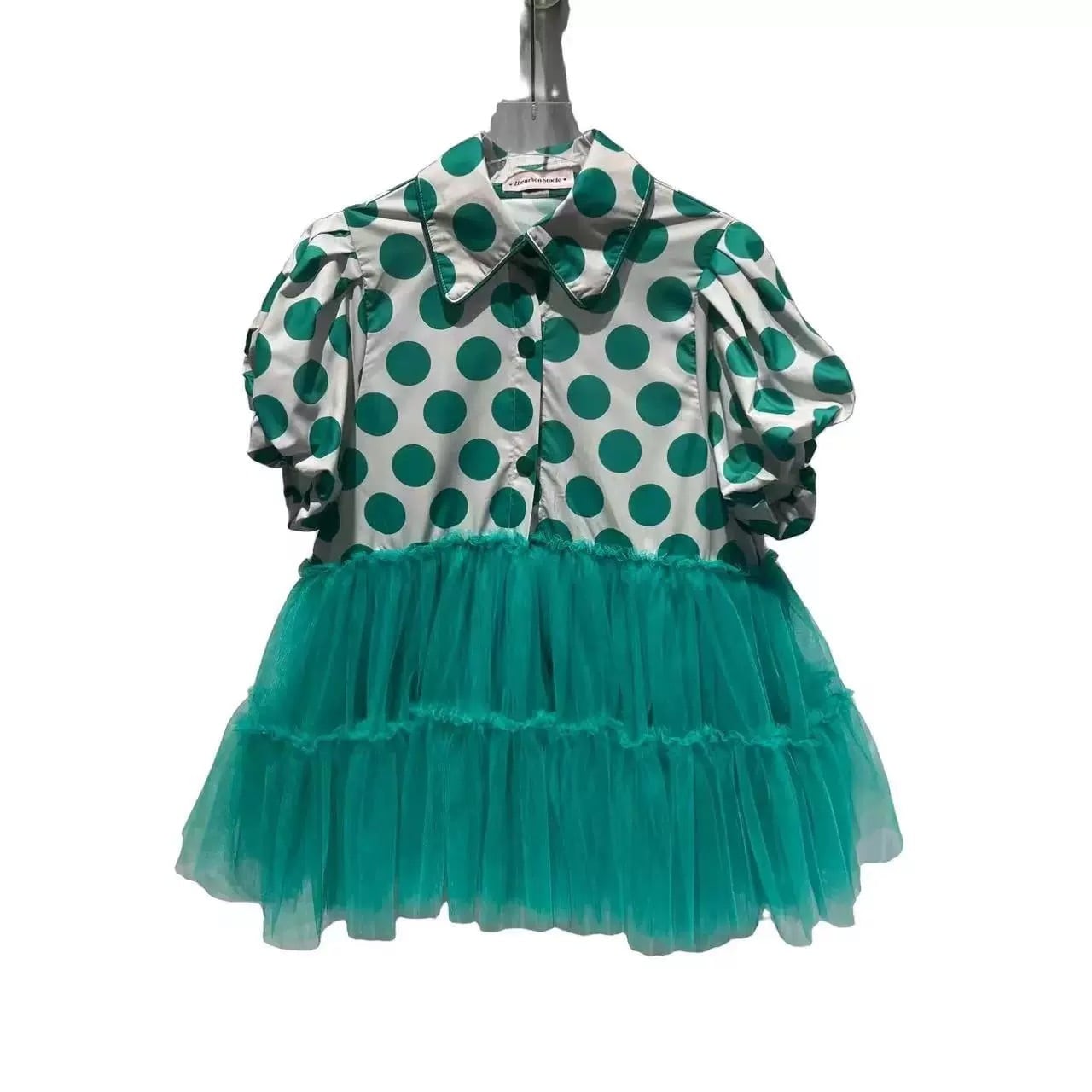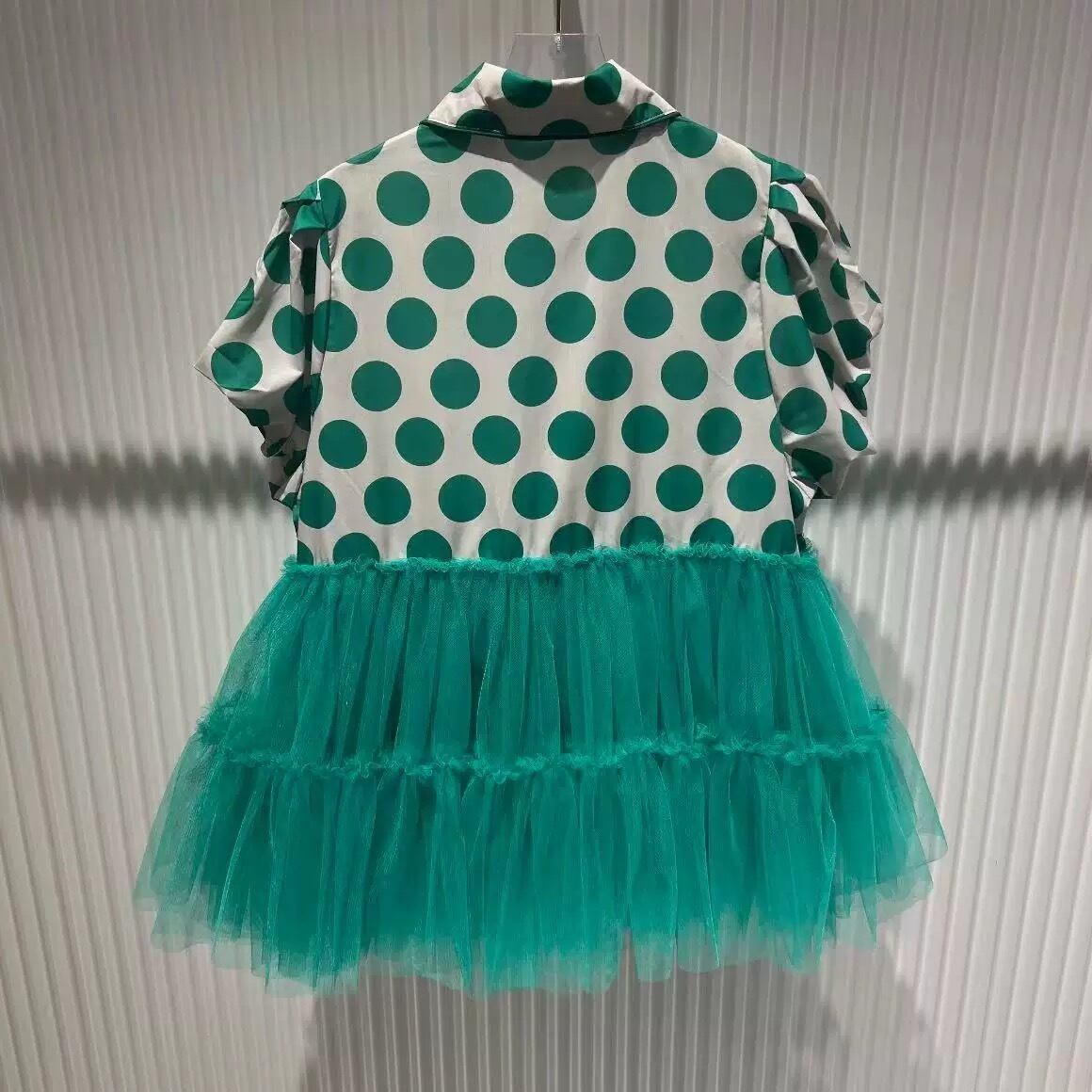 緑 ブラウス 水玉 ワンピース ガーリー 黒 白 ブラウス パールネックレス 水玉 ドット ゆったり ブラウス ワンピース チュニック グリーン ドット シャツ チュニック