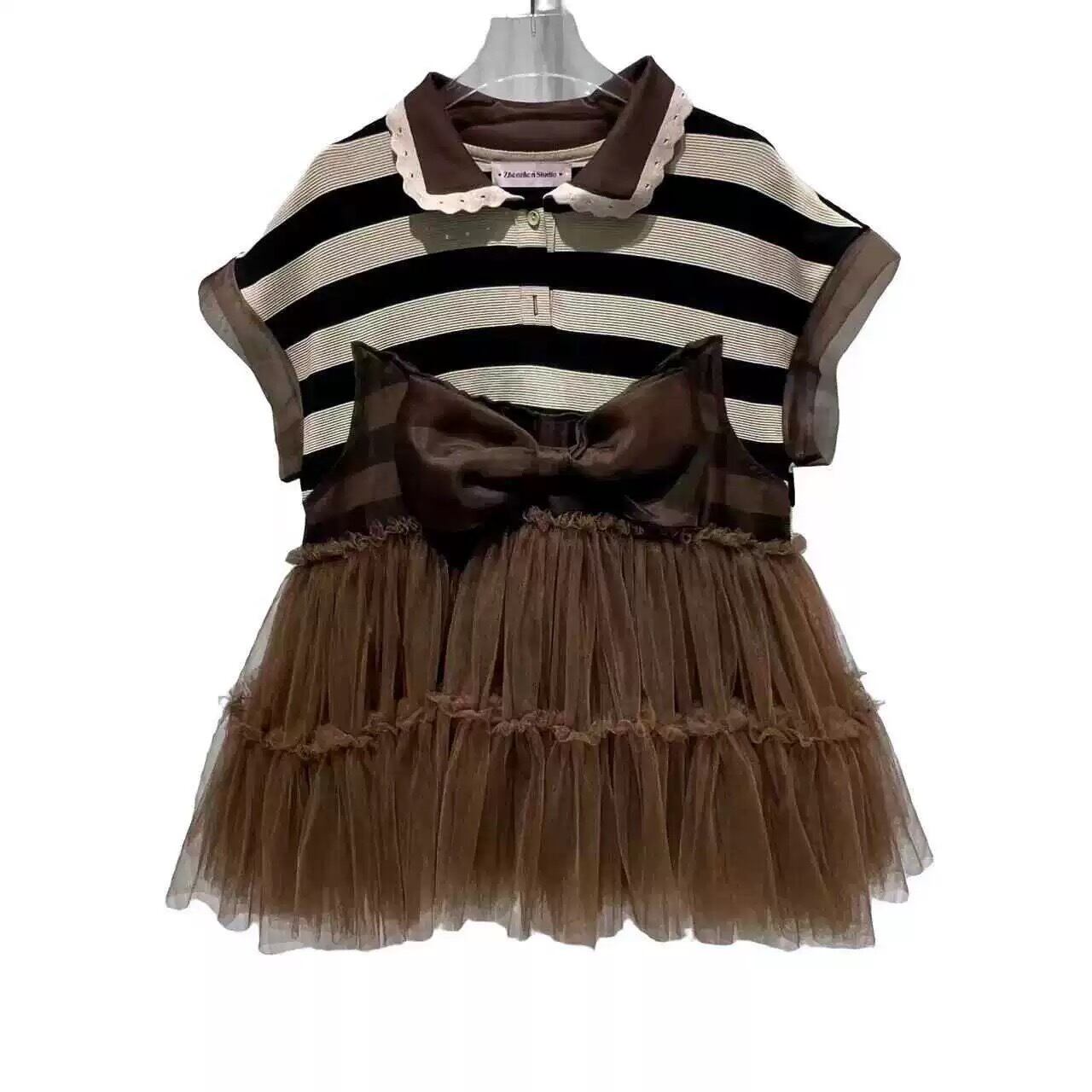 黒 白 ブラウス パールネックレス 水玉 ドット ゆったり ブラウス ワンピース チュニック ボーダー 茶色 リボン 紫 キャラメル