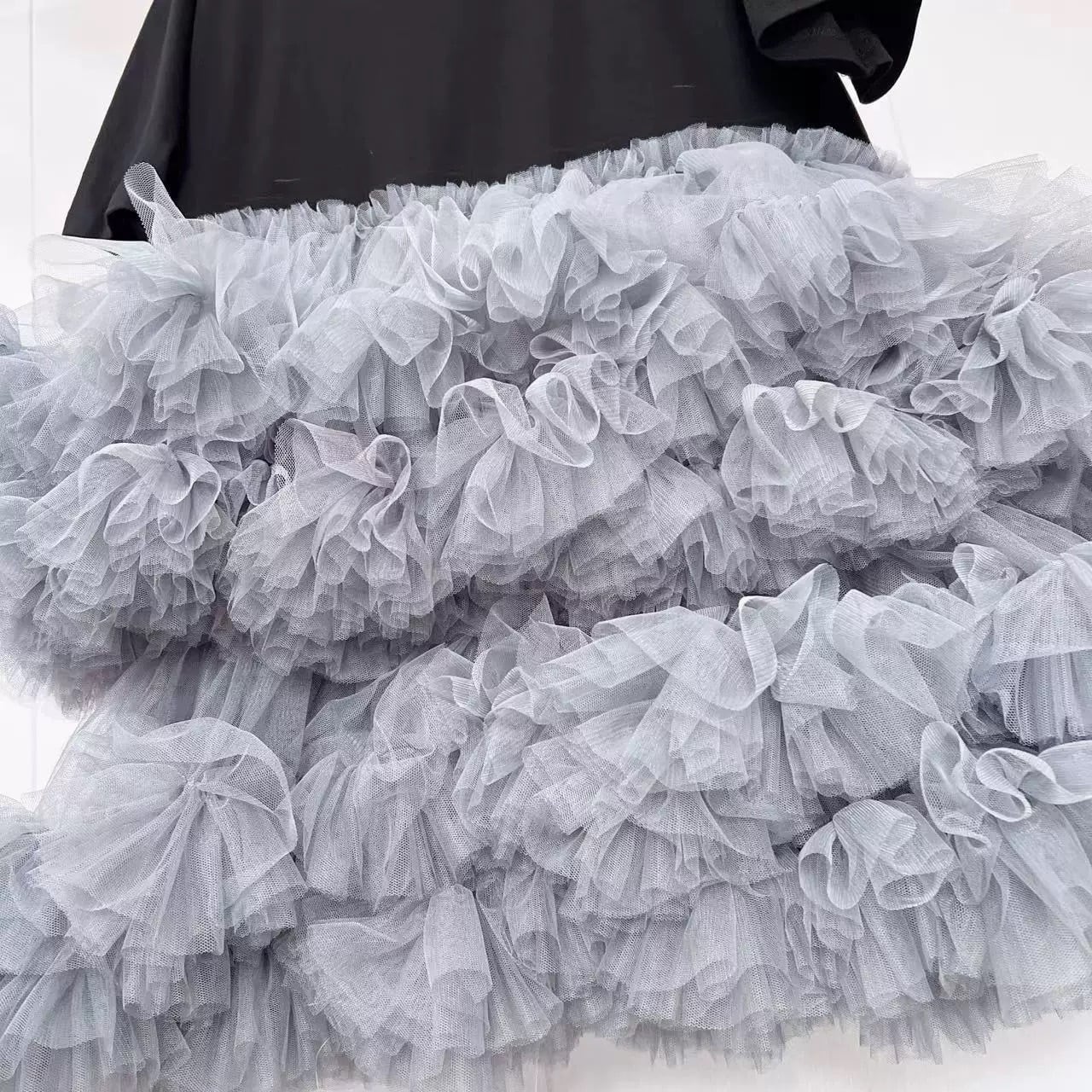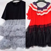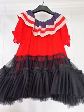 黒 フリル 赤 ボーダー 黒 白 ブラウス パールネックレス 水玉 ドット ゆったり ブラウス ワンピース チュニック