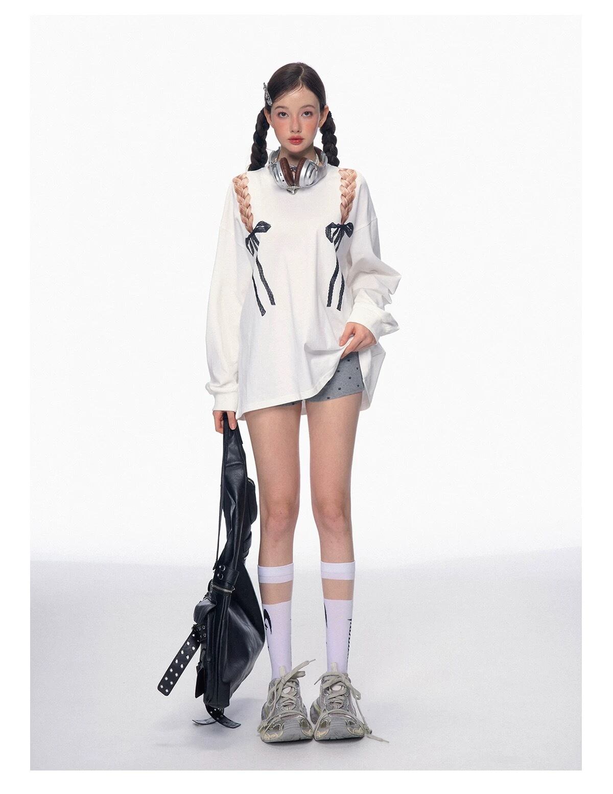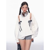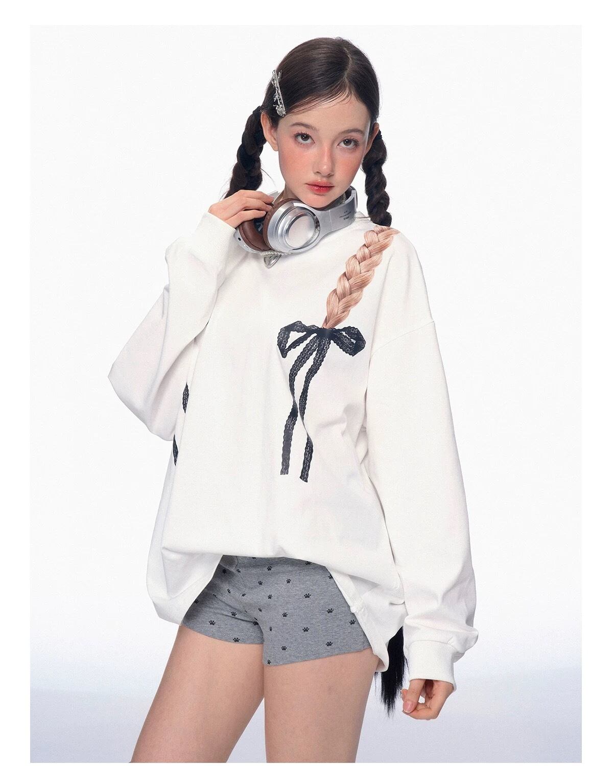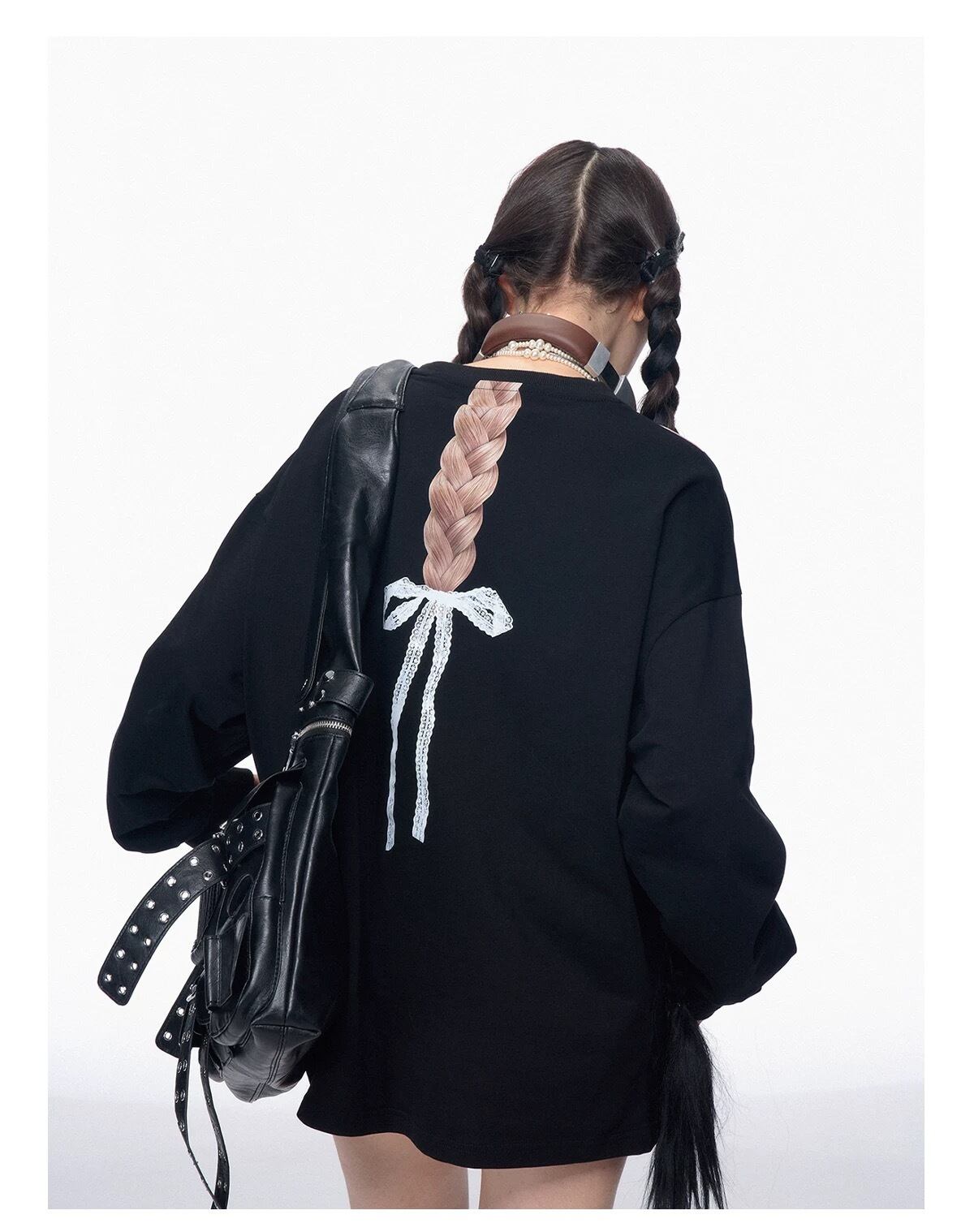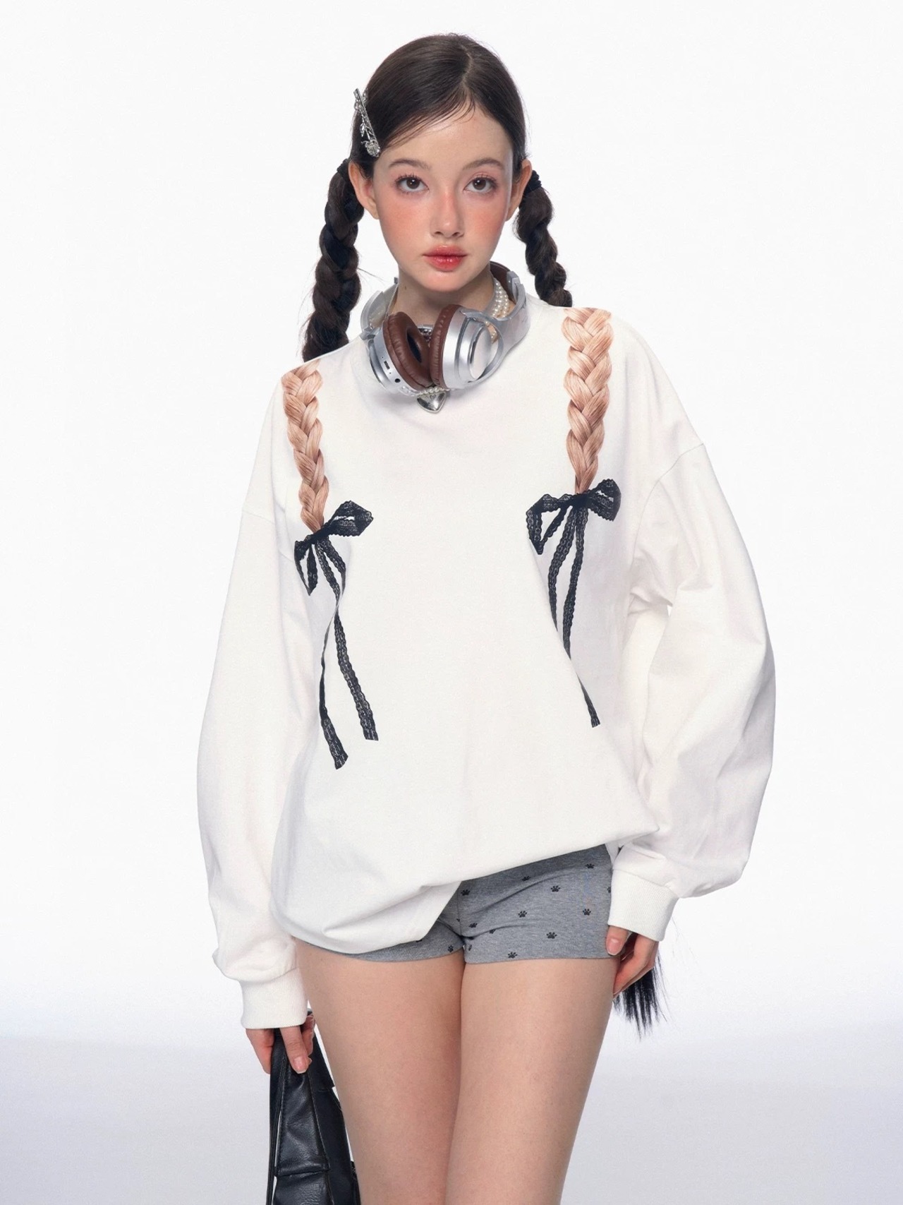 【2XLまで】トレーナー 三つ編み スウェット カジュアル 白 黒 原宿 ガーリー リボン XL