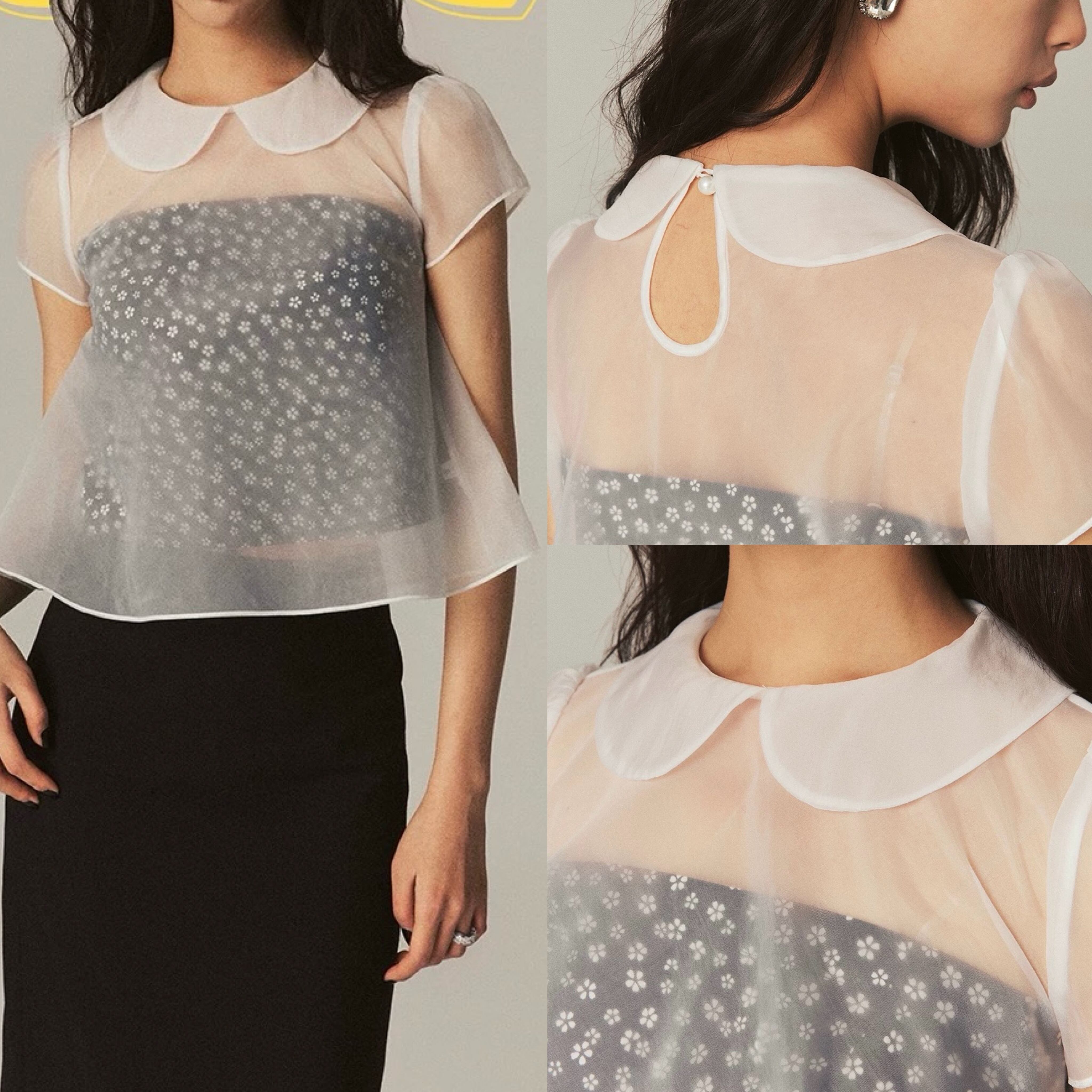【トップスセット】丸襟 ブラウス ガーリ可愛い クリア シースルー シャツ 原宿