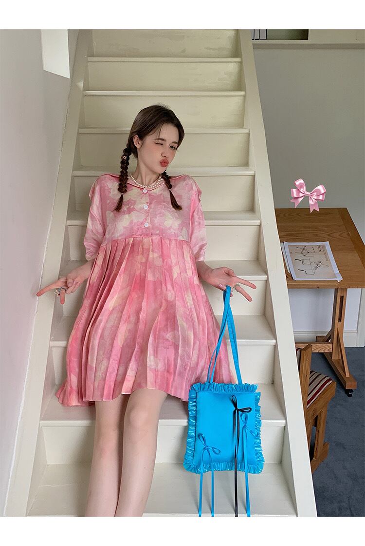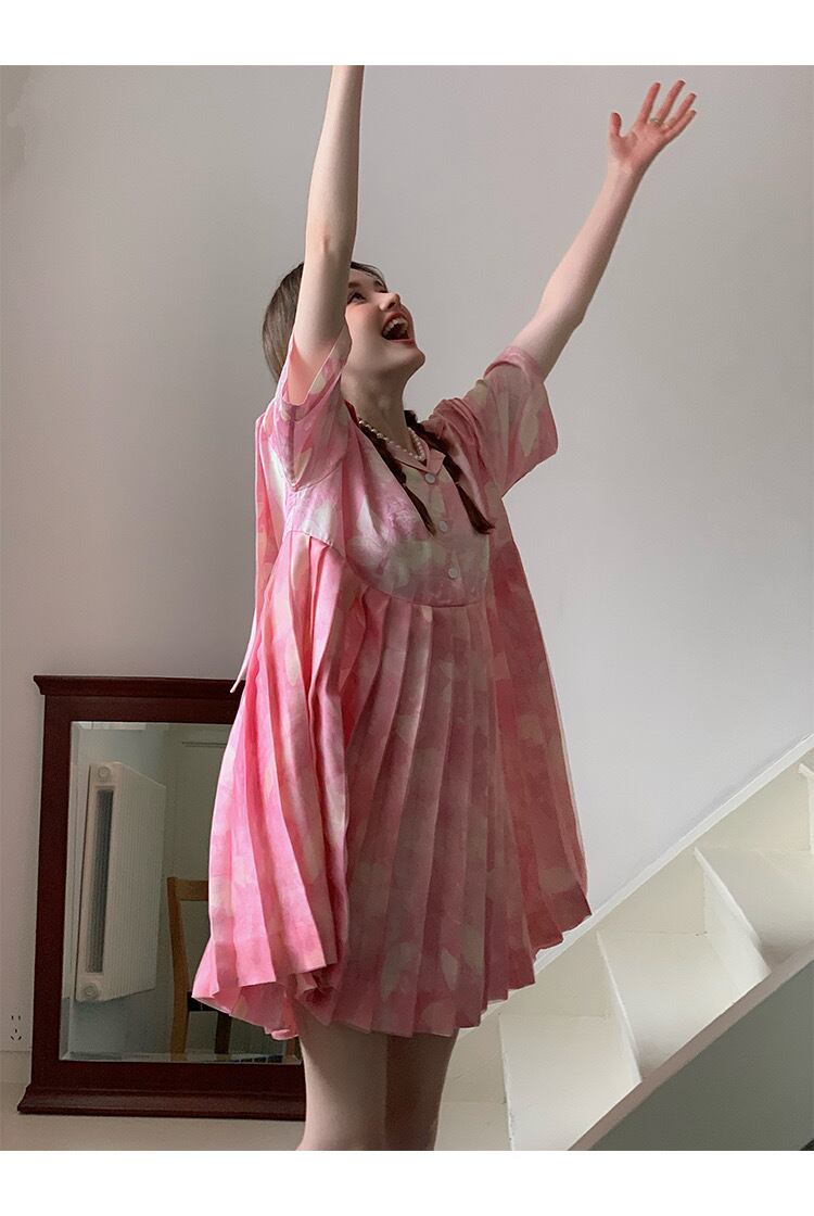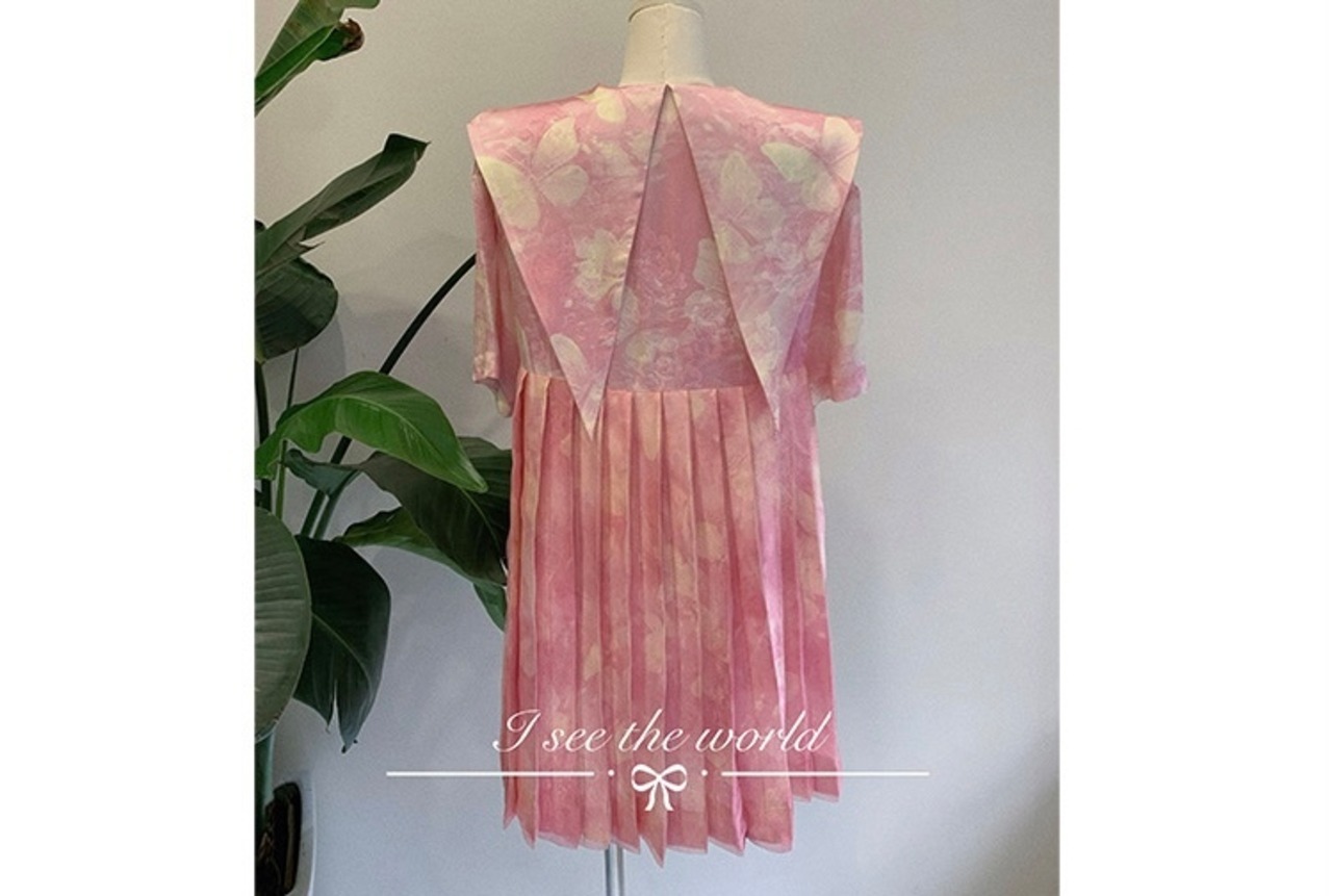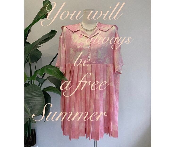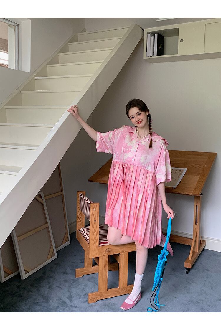 ピンク シャツ ブラウス プリーツスカート トップス ガーリー 可愛い