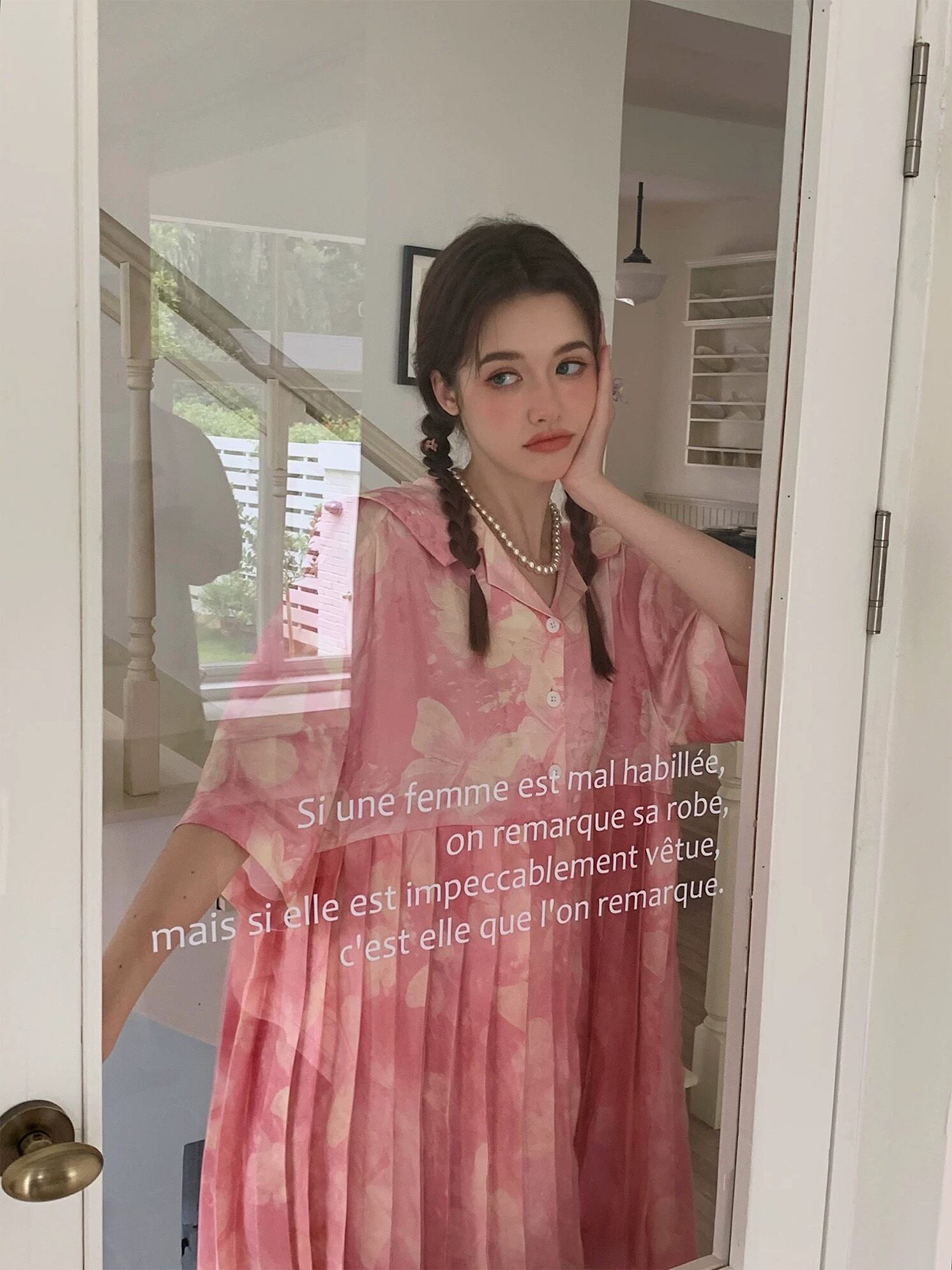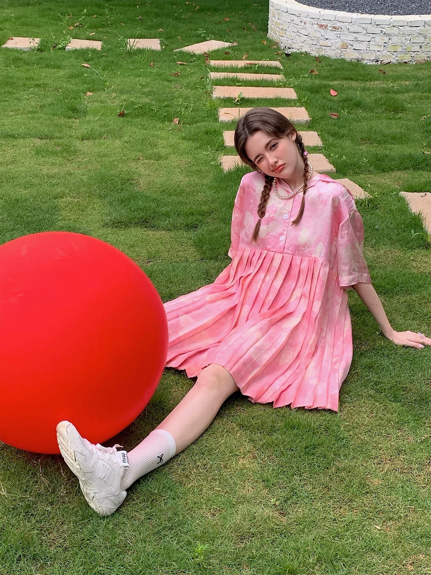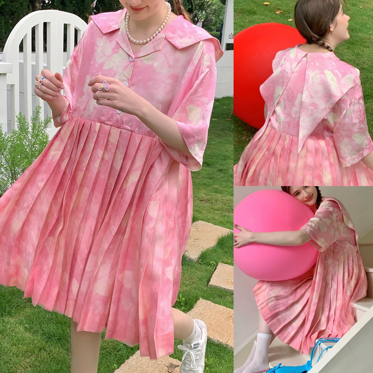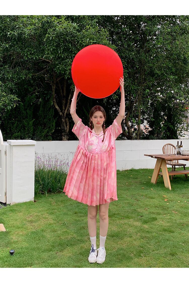 ピンク シャツ ブラウス プリーツスカート トップス ガーリー 可愛い