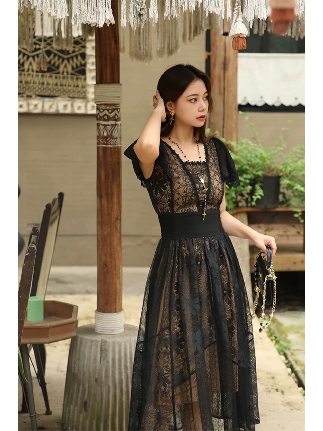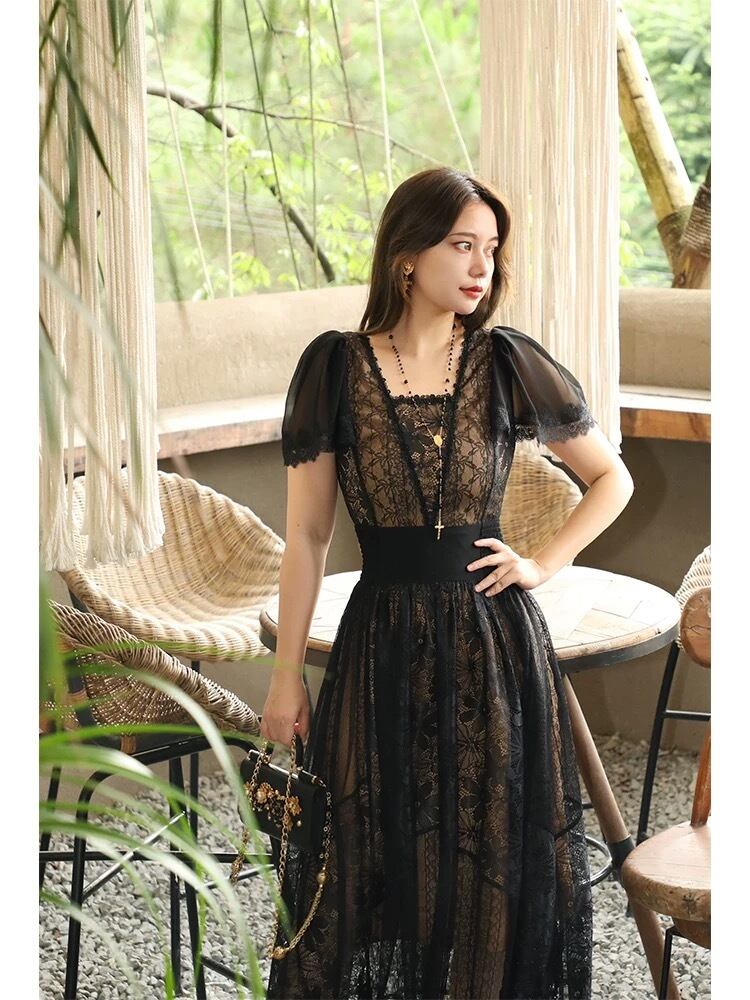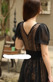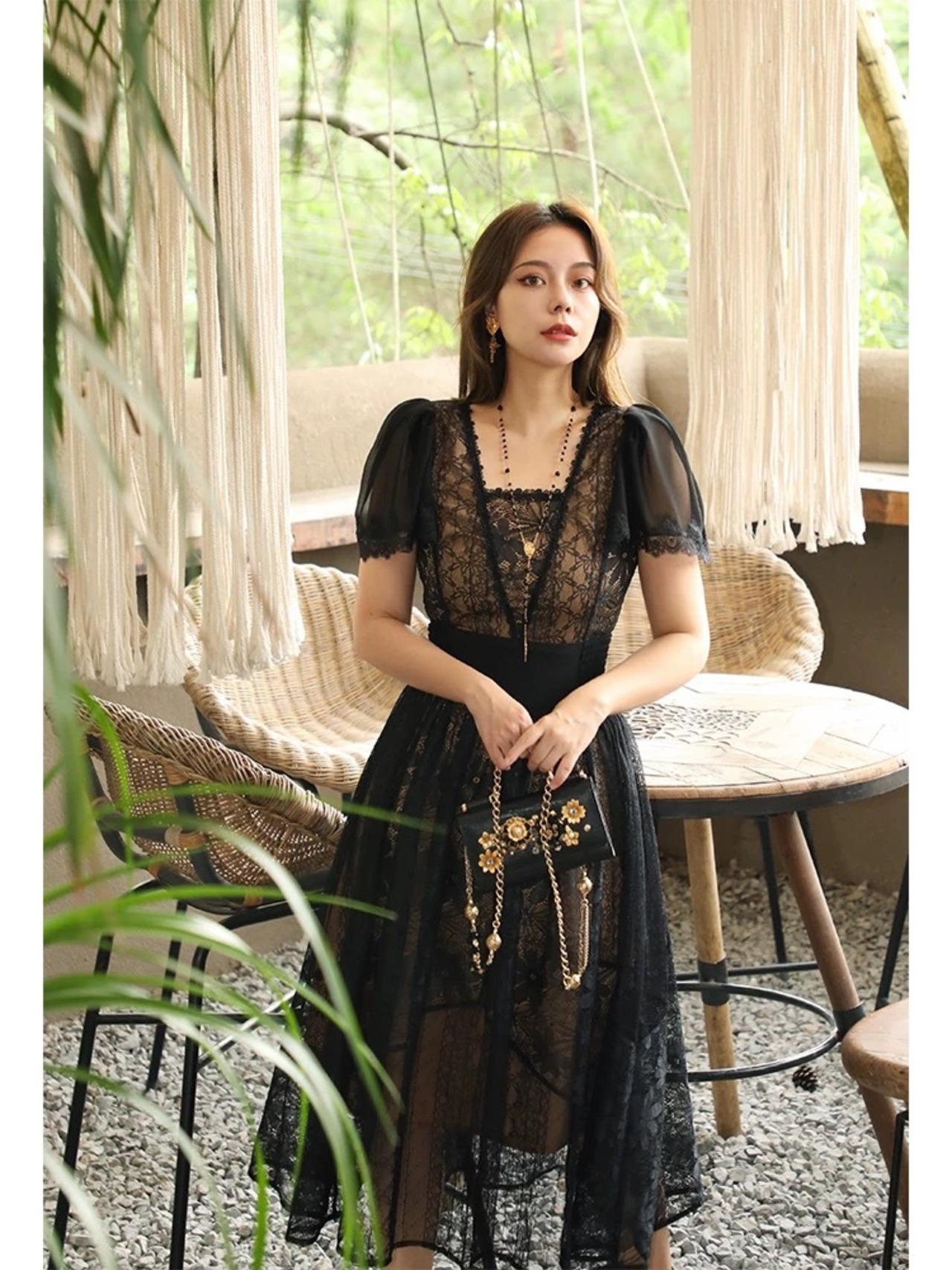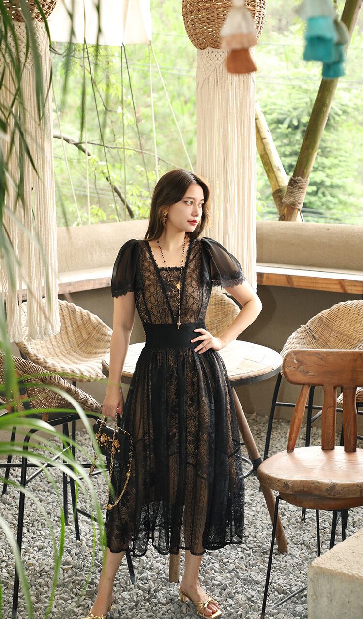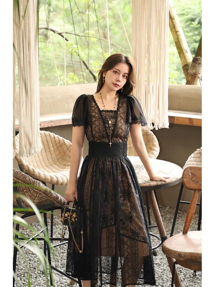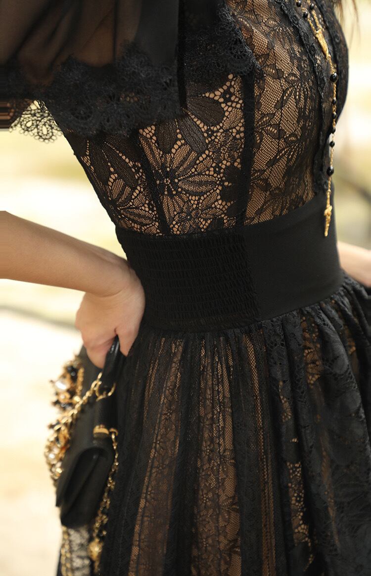 黒 ブラック レース ワンピース ガーリー ブラウス 可愛い エレガント