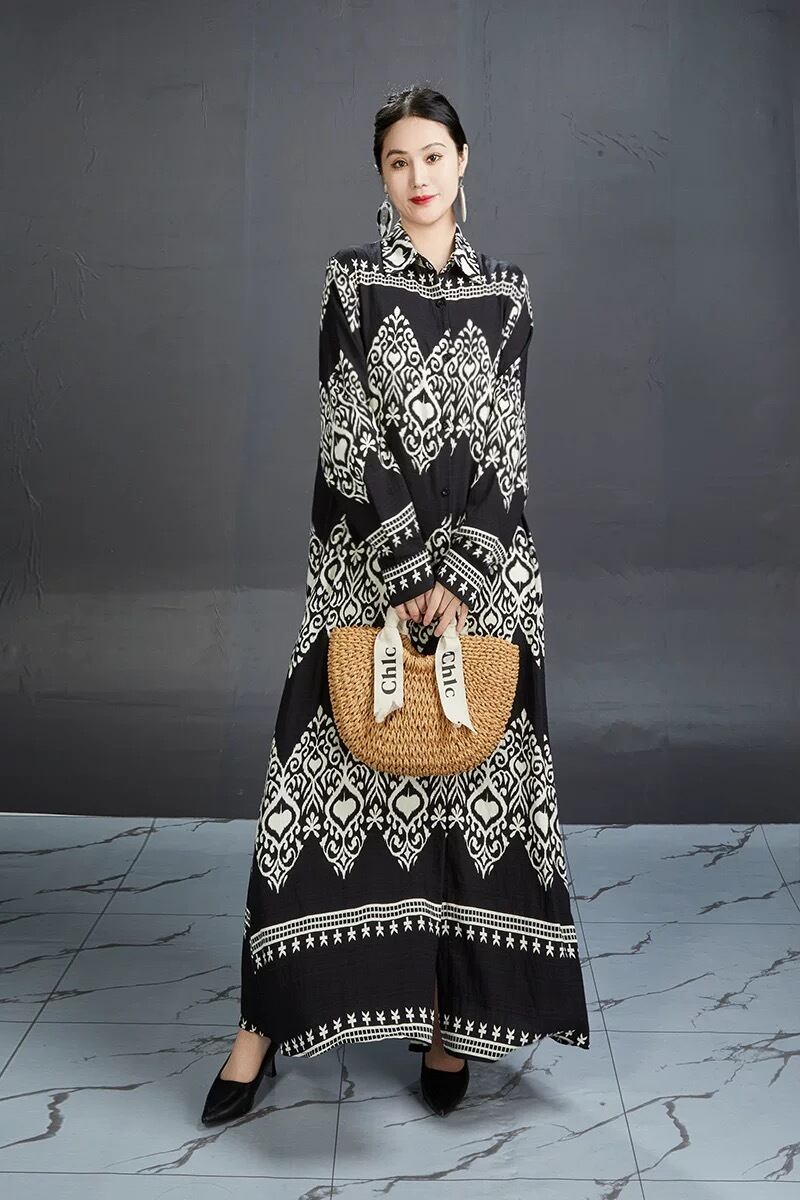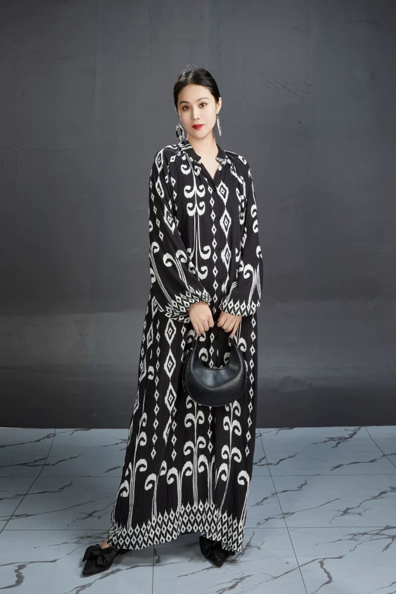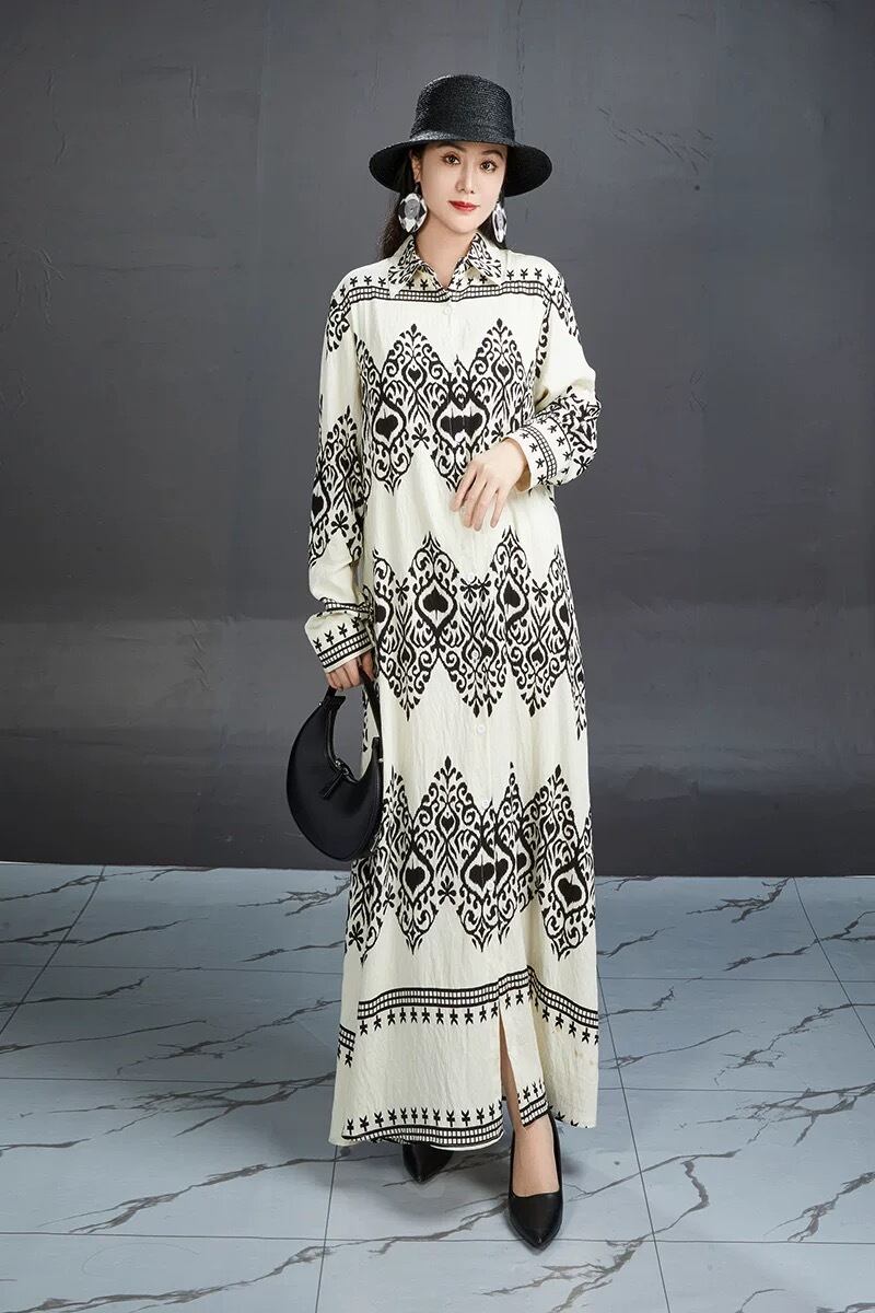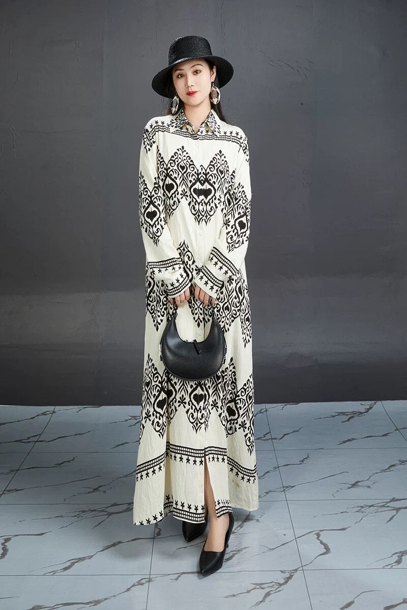 黒 白 ワンピース アジアン エスニック エレガント ブラウス